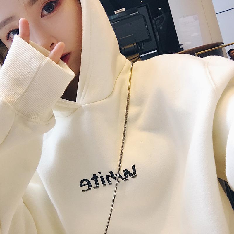 Suéter de mujer 2022 nuevo estilo coreano de primavera y otoño con capucha de forro polar pequeño estilo perezoso abrigo blanco de invierno para mujer fino