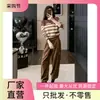 Traje de uso popular y hermoso de este año otoño e invierno Nuevo suéter de punto de cuello redondo a rayas de color en contraste de dos piezas ropa de mujer