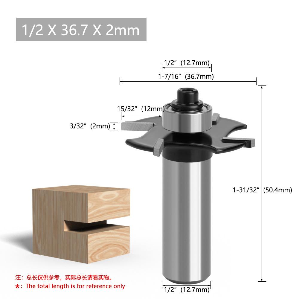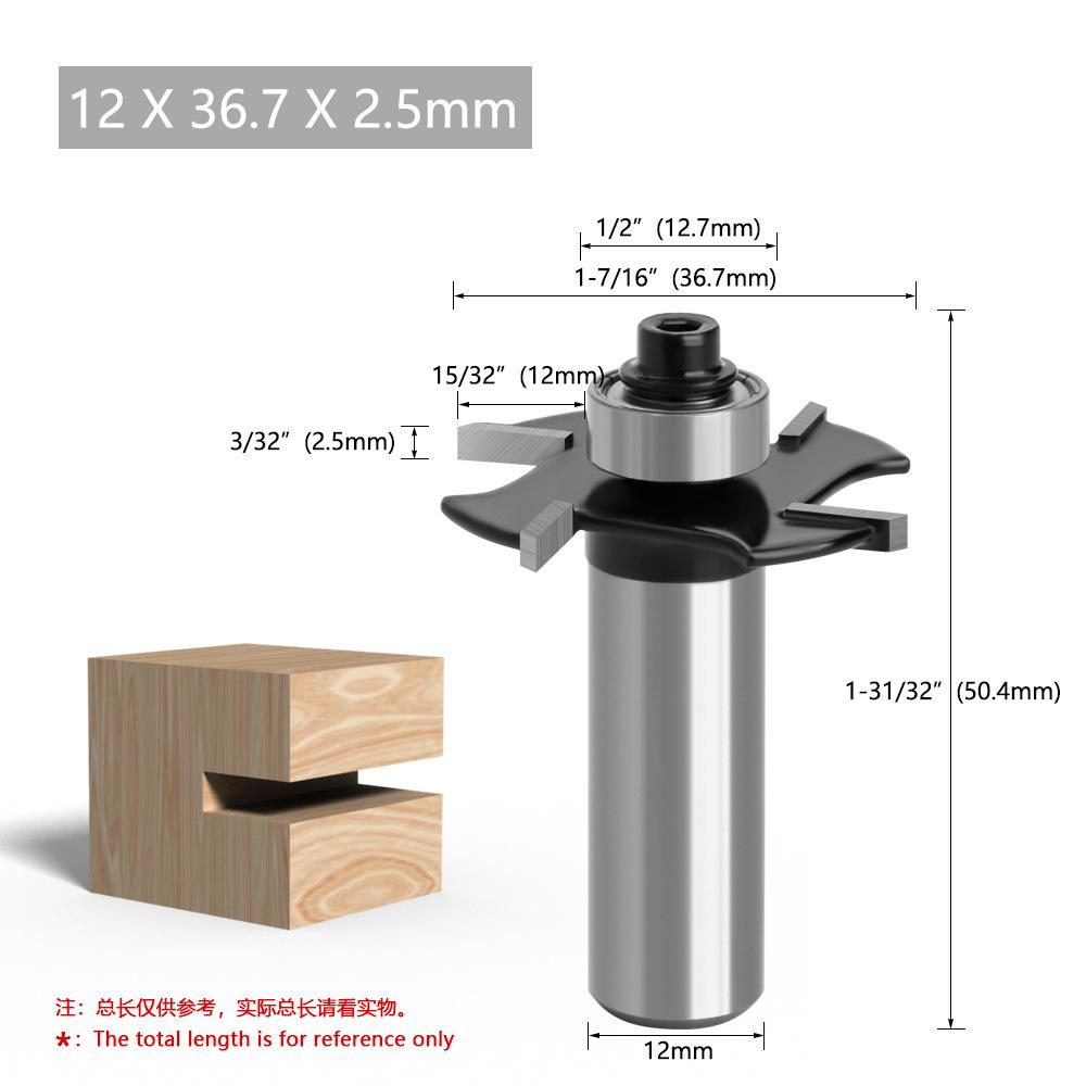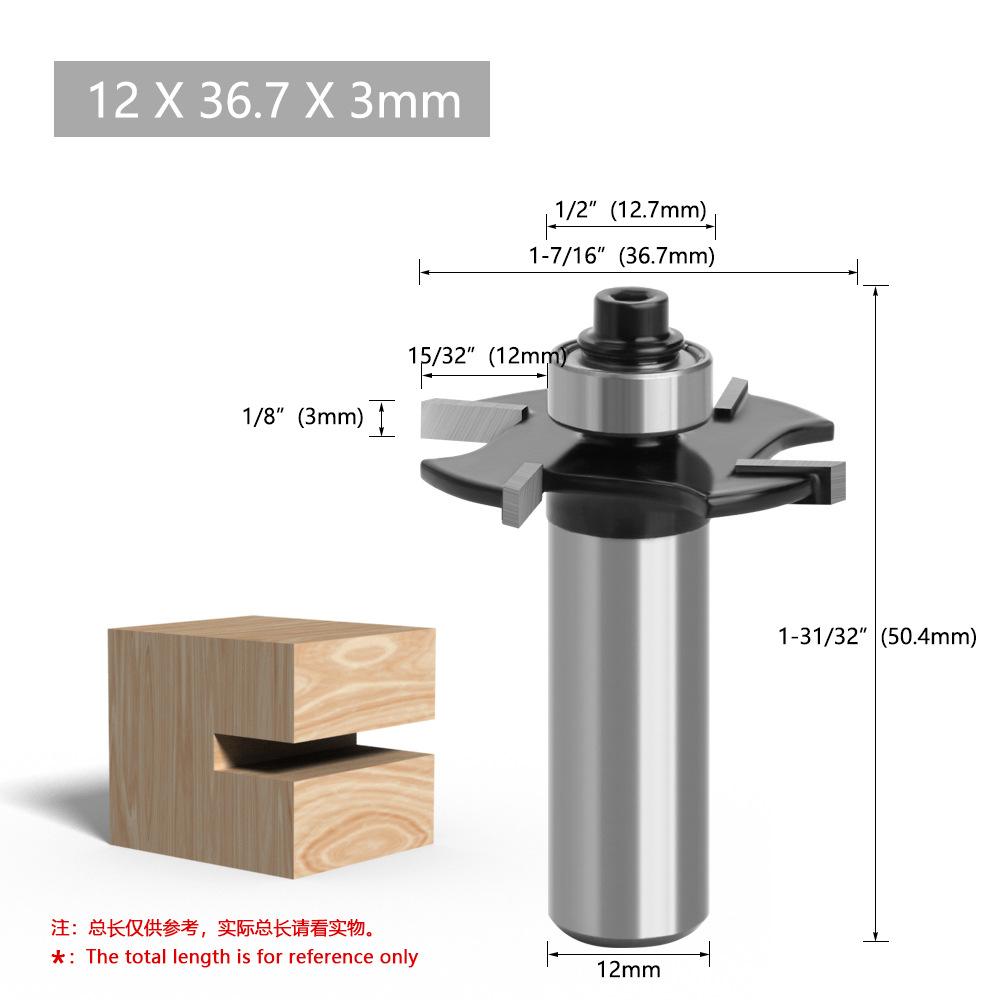 Los mangos de las fresas para carpintería incluyen: 3 mm, 6 mm, 1/4" (6,35 mm), 8 mm, 12 mm, 1/2" (12,7 mm)