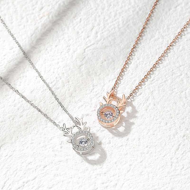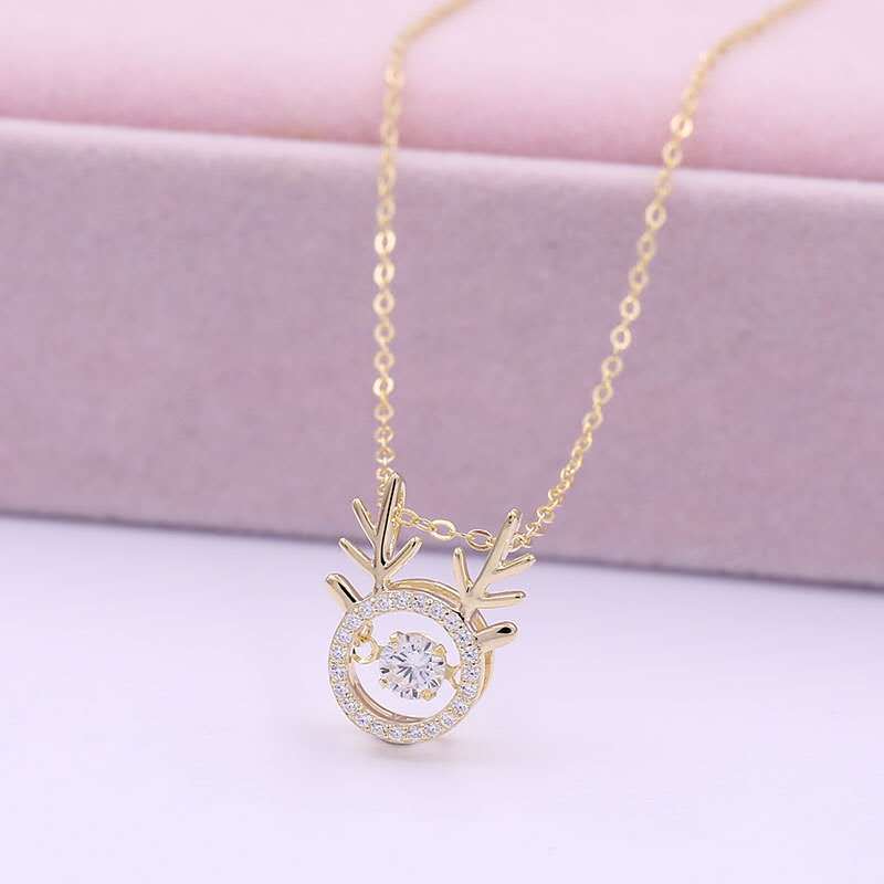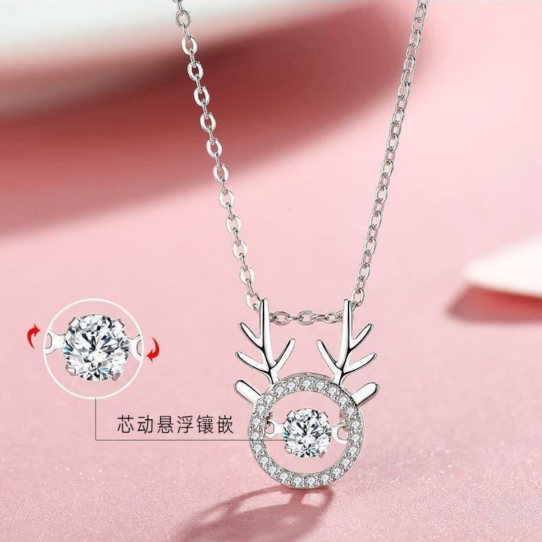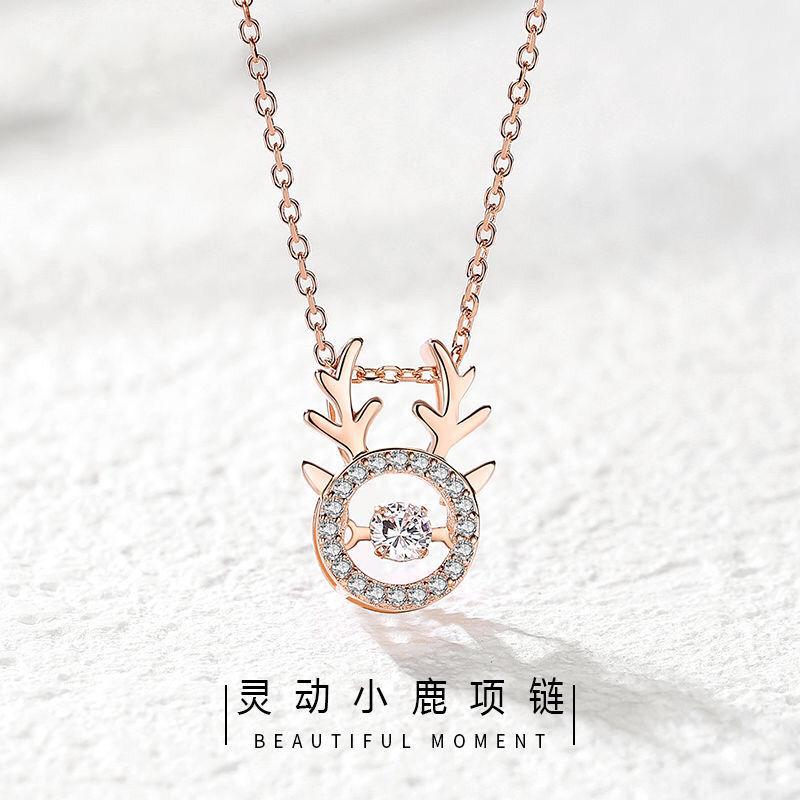 [Acero titanio] Nuevo collar con colgante de corazón palpitante de ciervo para mujer, cadena de clavícula de celebridades de Internet, regalo de cumpleaños para novia.