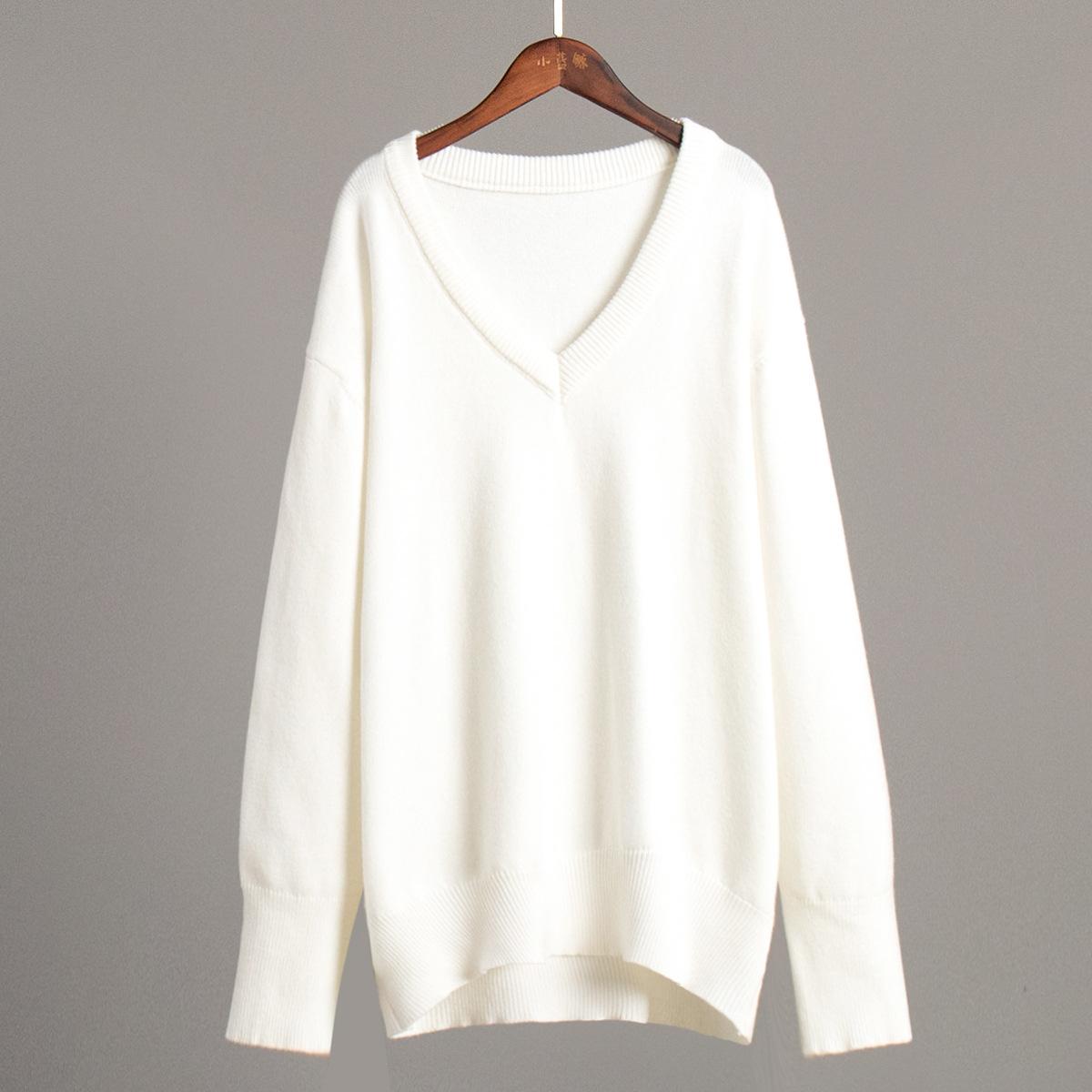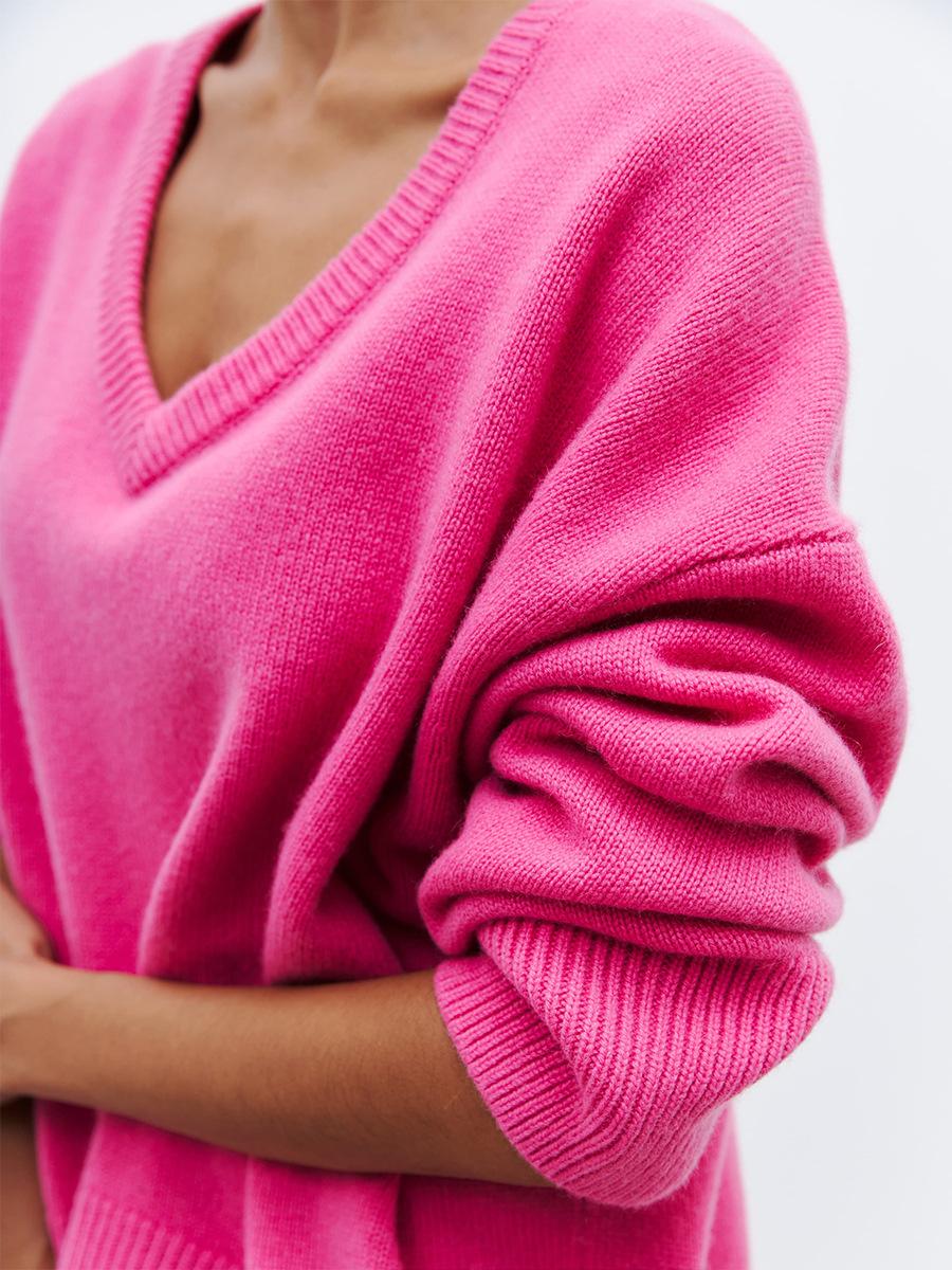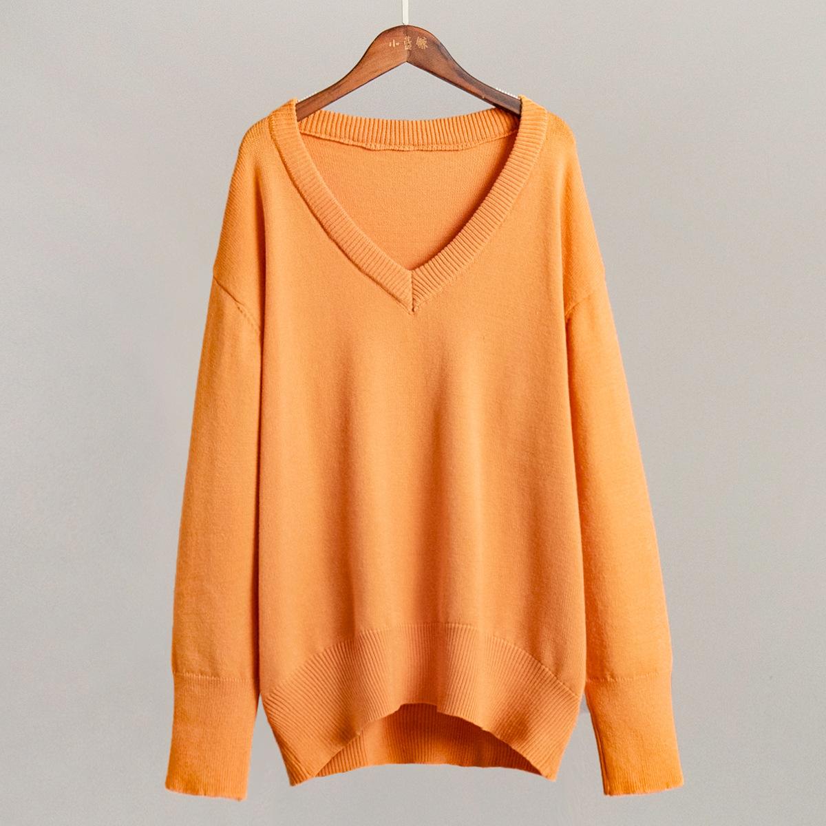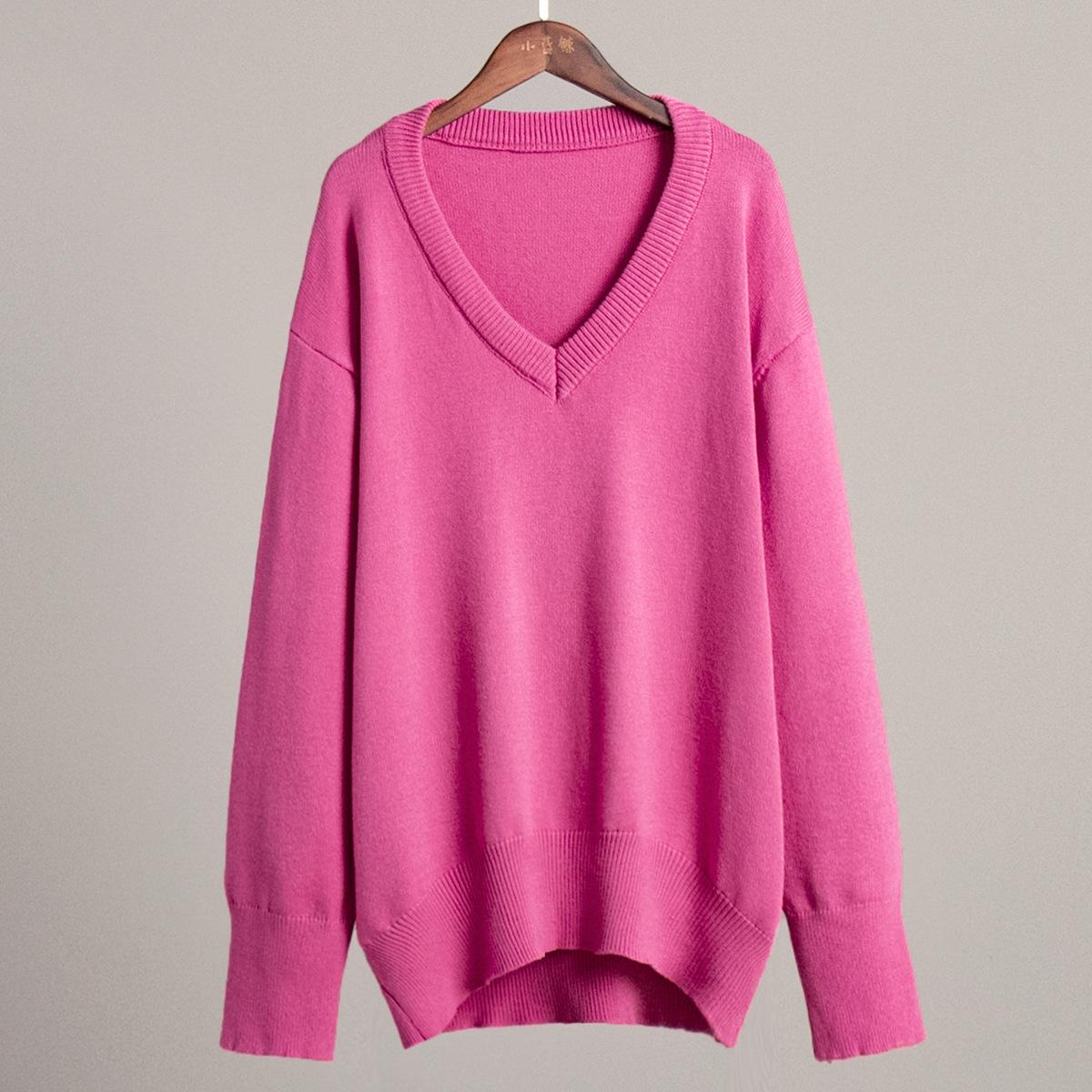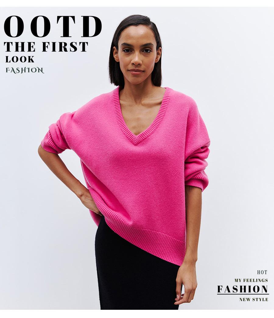 Suéter de cuello en V transfronterizo para mujer, otoño e invierno 2025, Europa y Estados Unidos, suéter de punto suelto de color sólido para todo tipo de combinaciones, Amazon