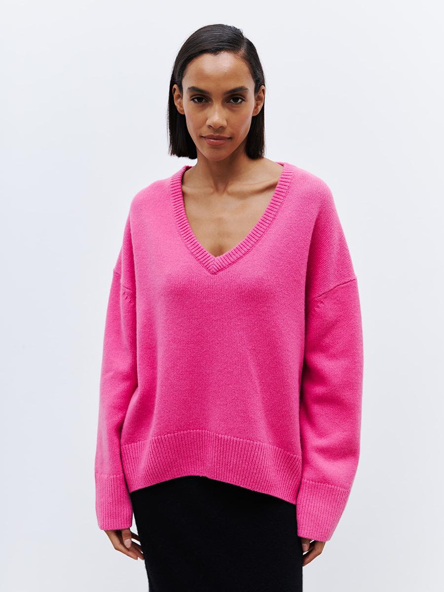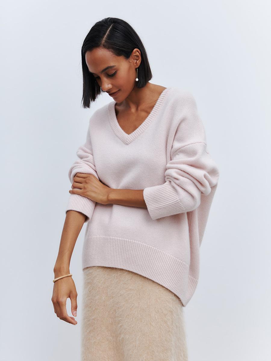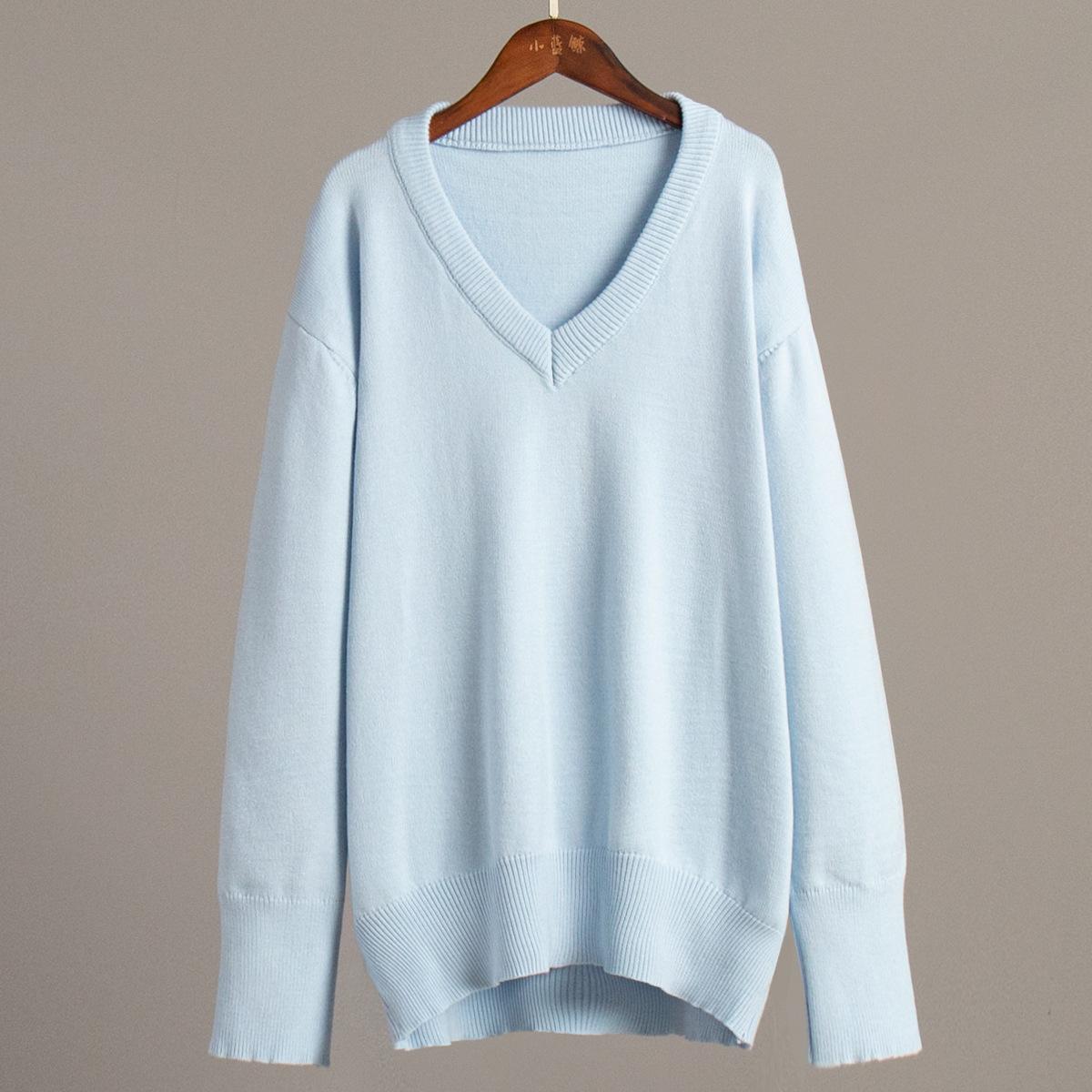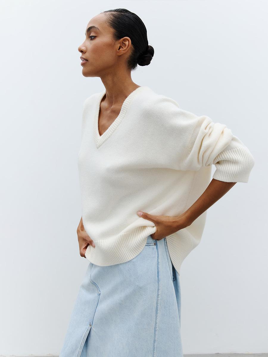 Suéter de cuello en V transfronterizo para mujer, otoño e invierno 2025, Europa y Estados Unidos, suéter de punto suelto de color sólido para todo tipo de combinaciones, Amazon