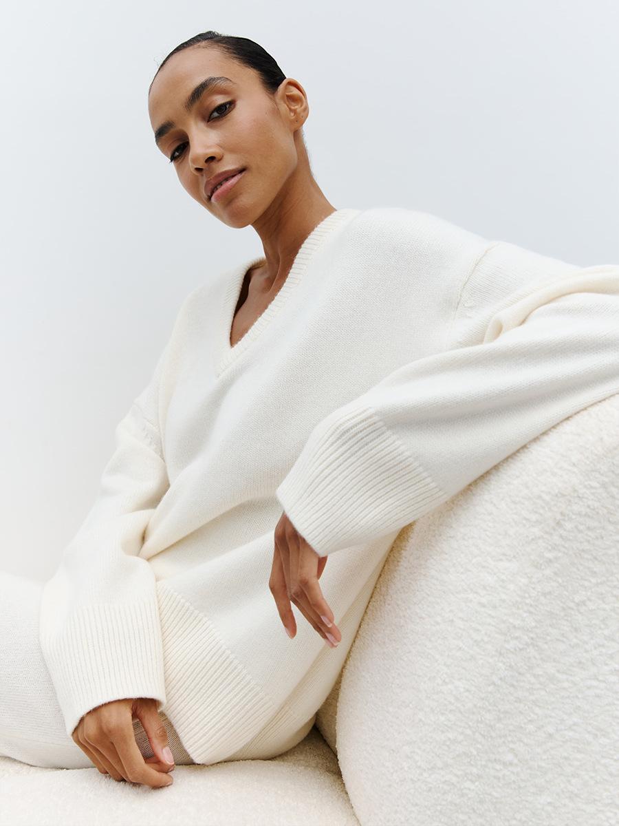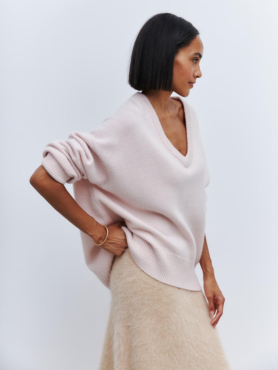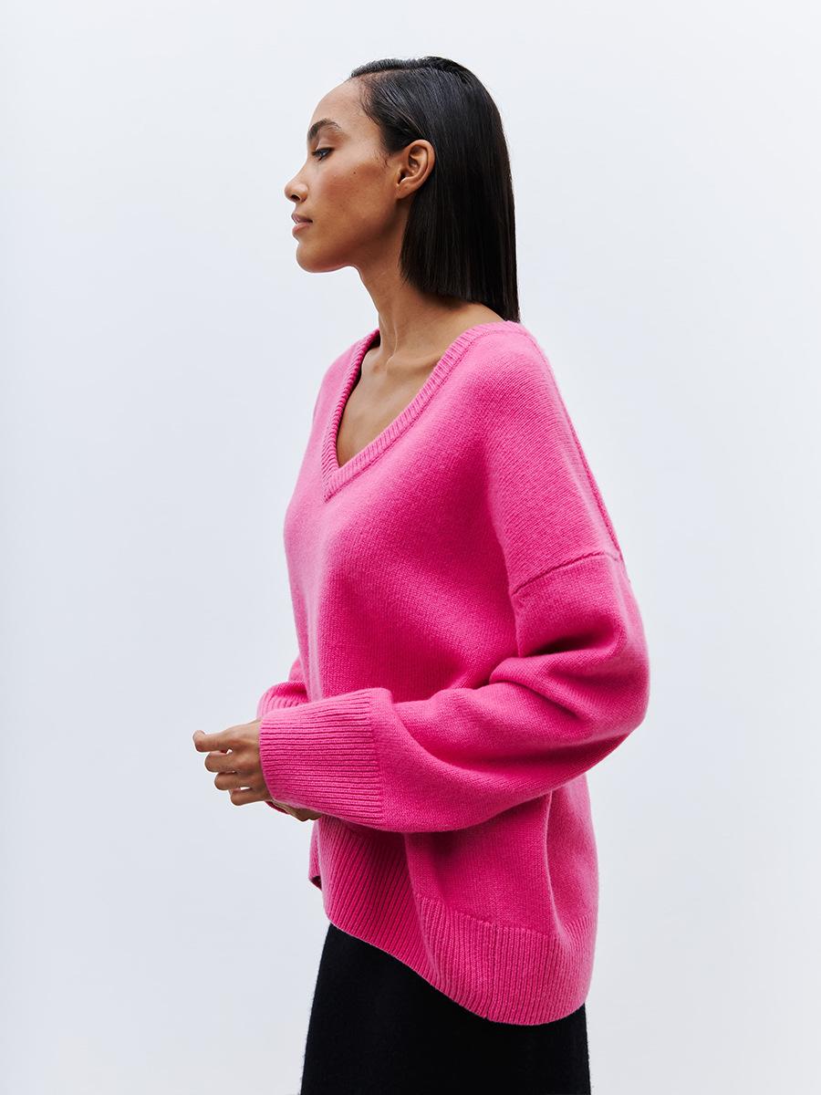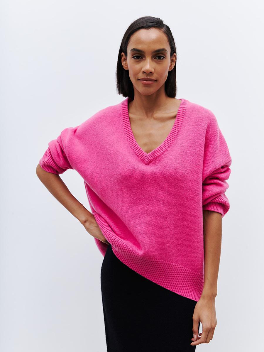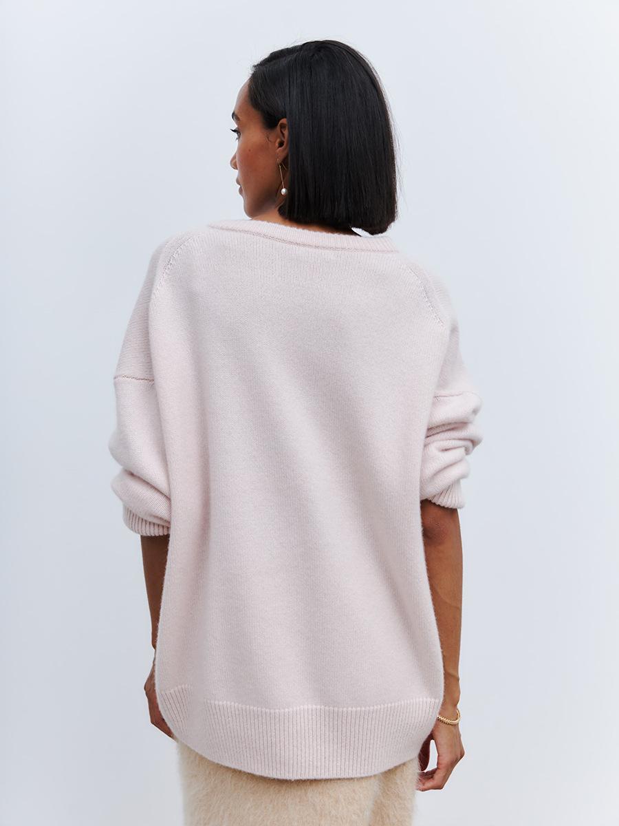 Suéter de cuello en V transfronterizo para mujer, otoño e invierno 2025, Europa y Estados Unidos, suéter de punto suelto de color sólido para todo tipo de combinaciones, Amazon
