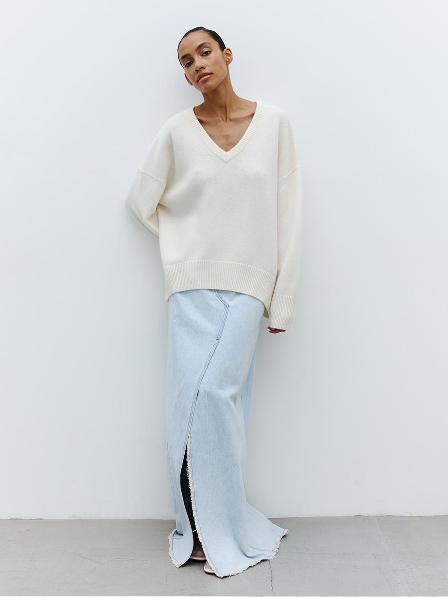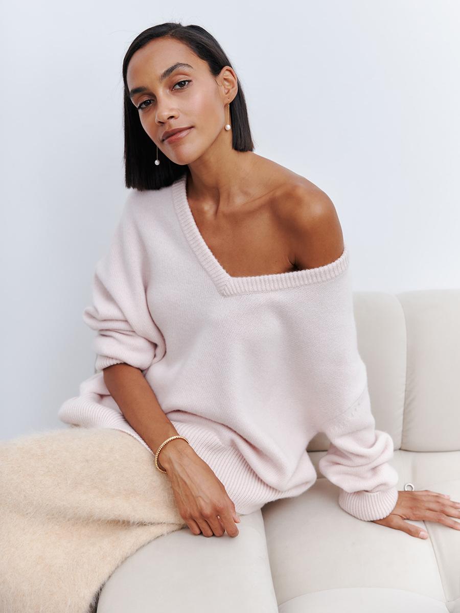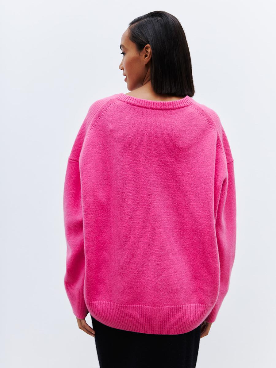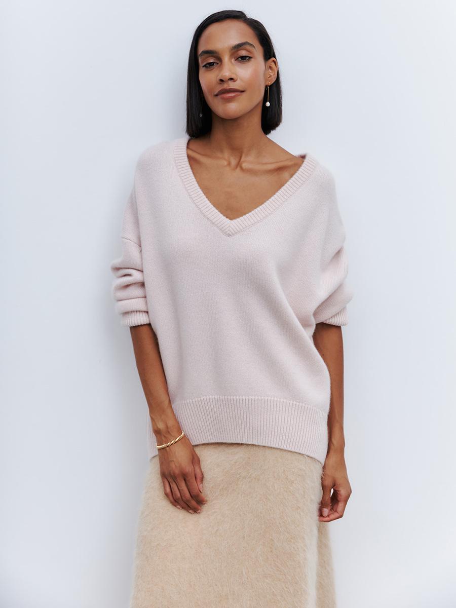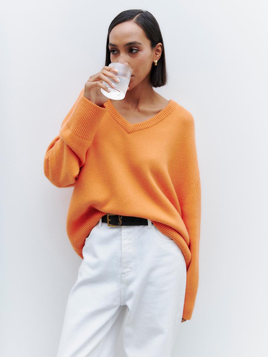 Suéter de cuello en V transfronterizo para mujer, otoño e invierno 2025, Europa y Estados Unidos, suéter de punto suelto de color sólido para todo tipo de combinaciones, Amazon