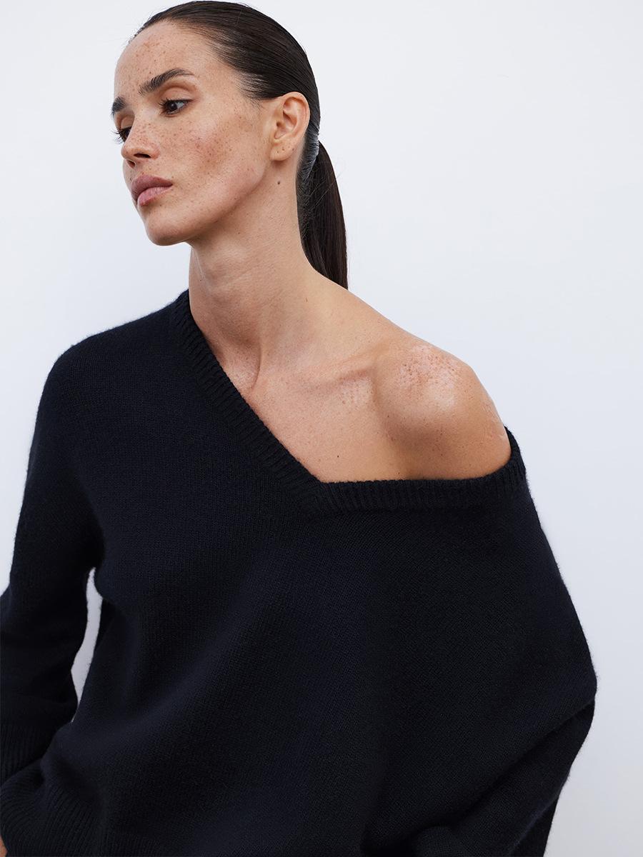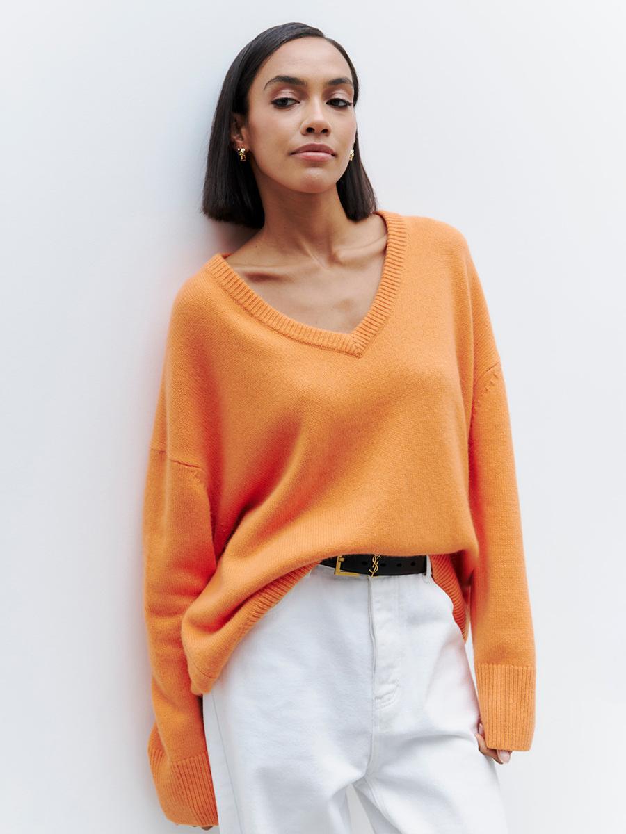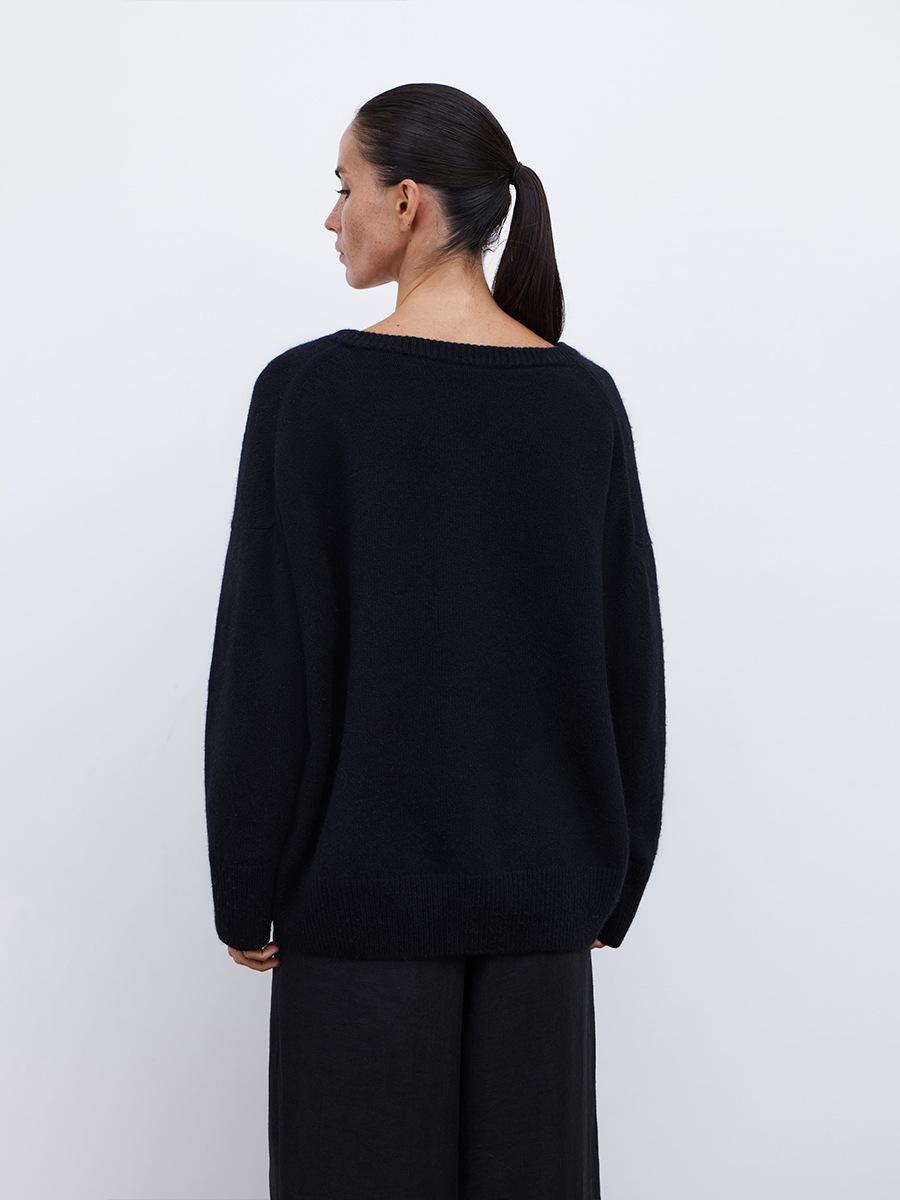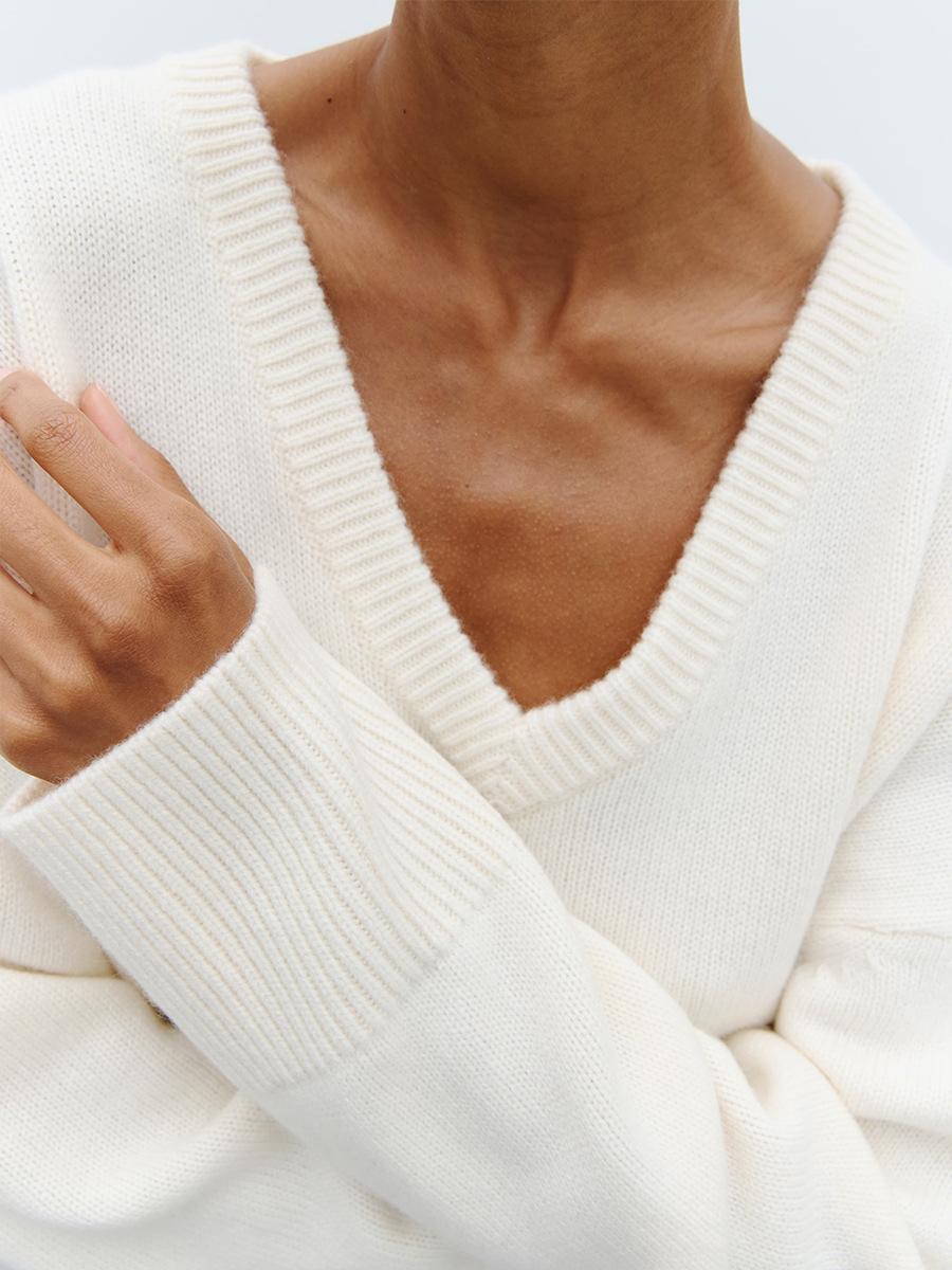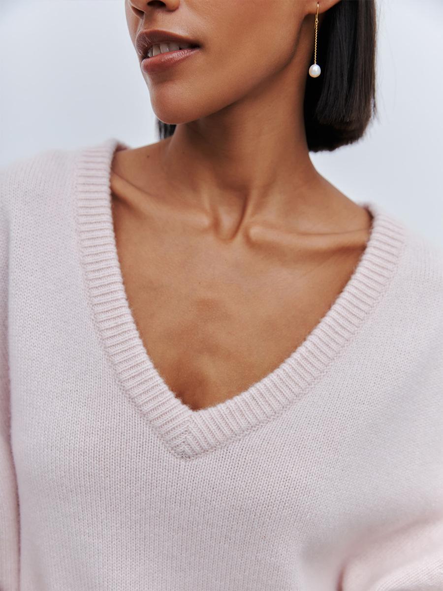 Suéter de cuello en V transfronterizo para mujer, otoño e invierno 2025, Europa y Estados Unidos, suéter de punto suelto de color sólido para todo tipo de combinaciones, Amazon
