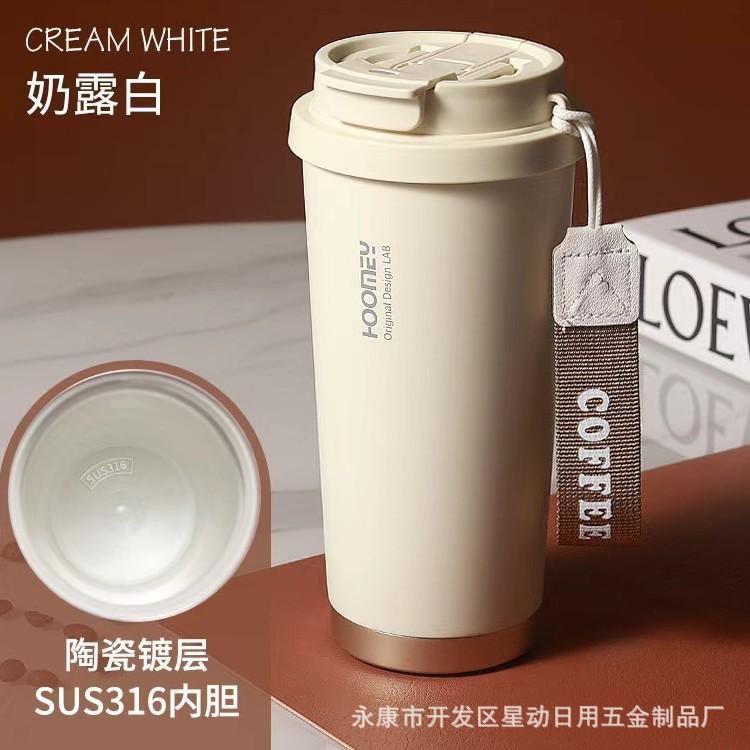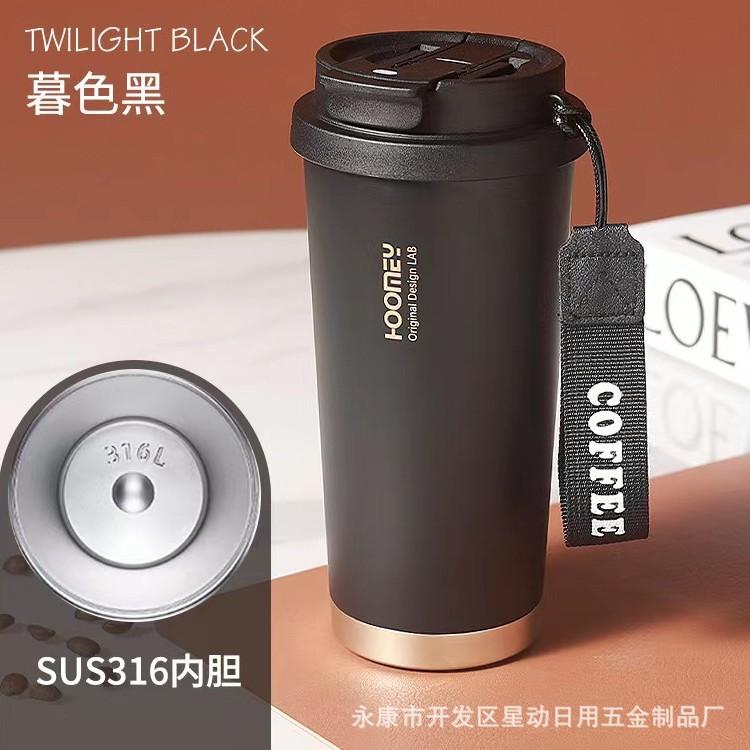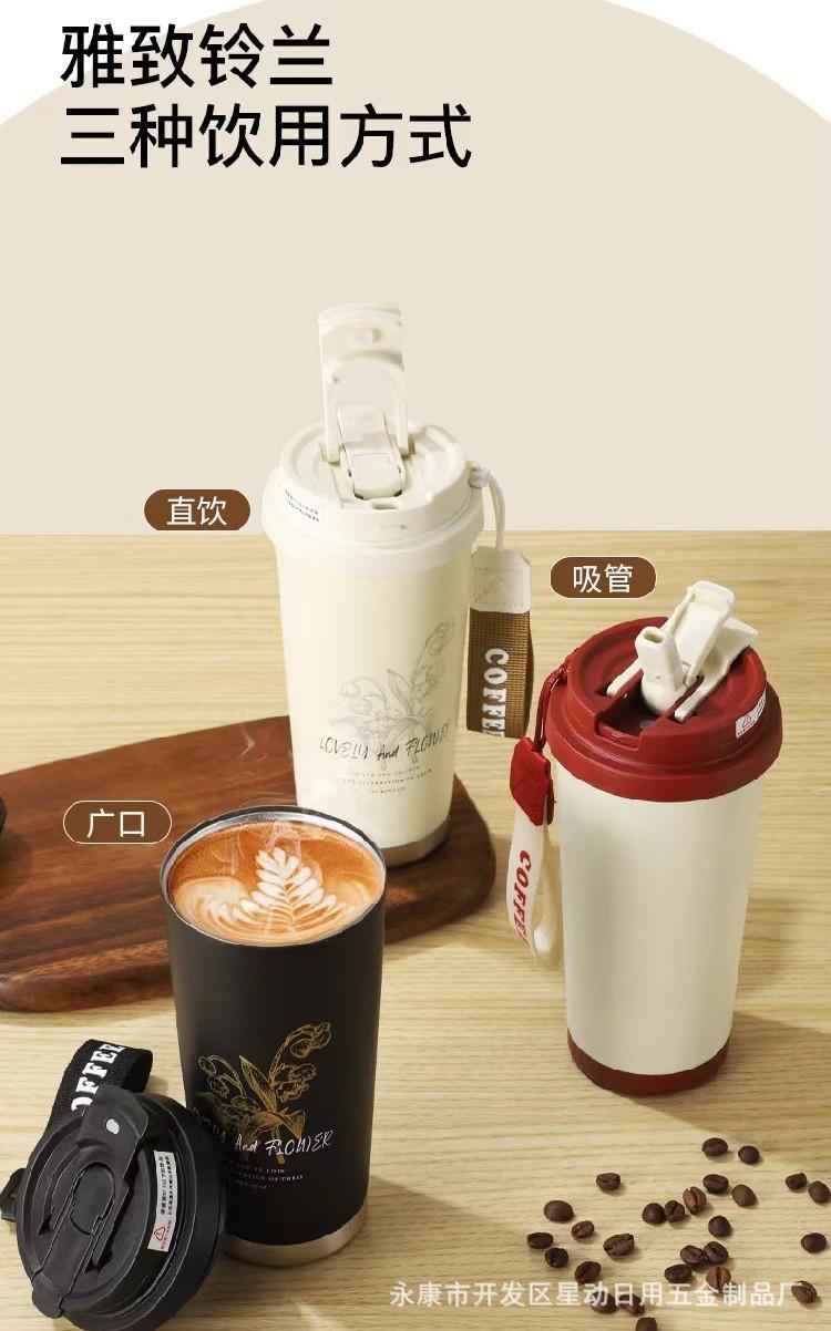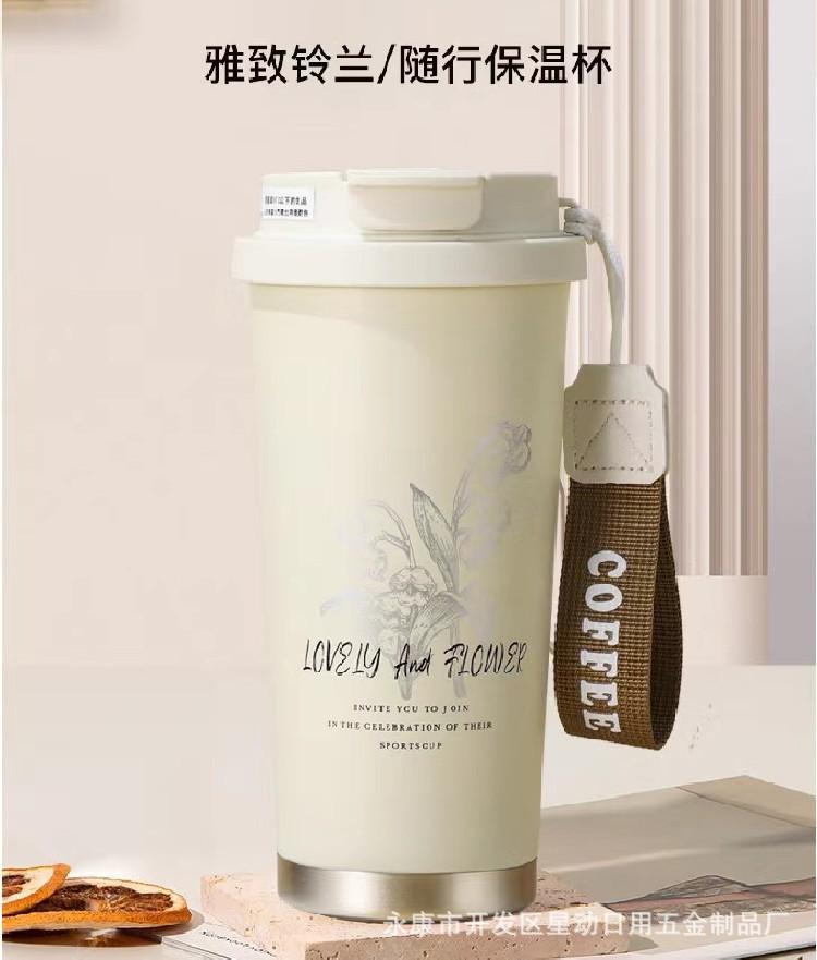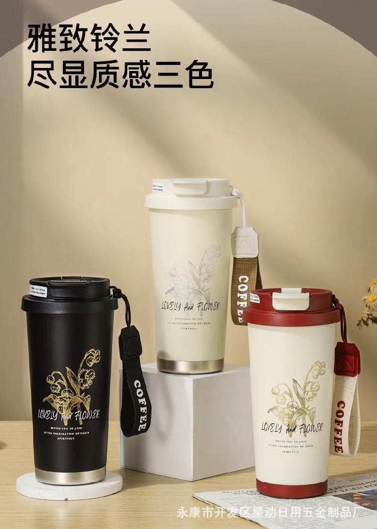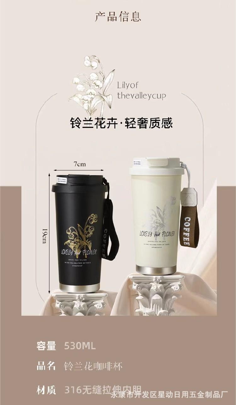 Taza Termo de Acero Inoxidable 316 Oficina Taza de Café Lirio de los Valles de Aspecto Elegante con Correa Vaso Portátil para Exterior