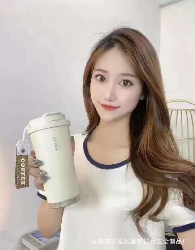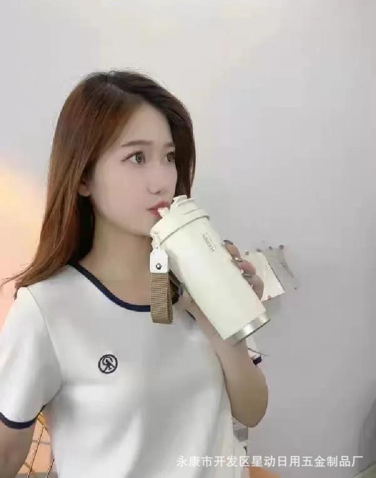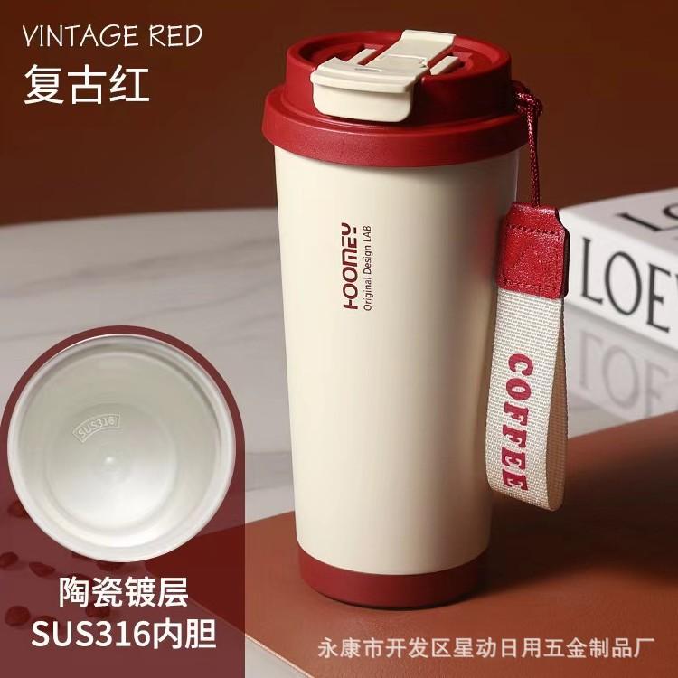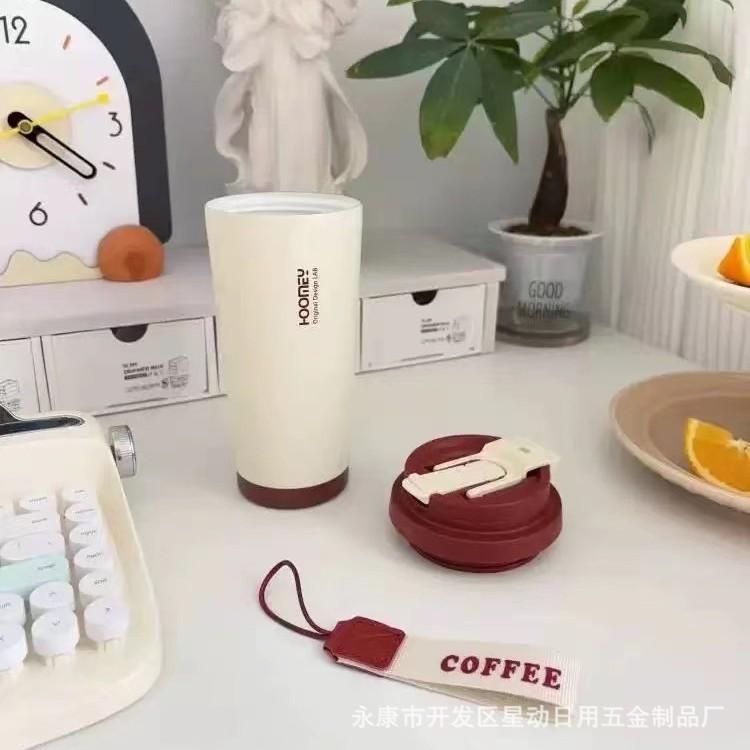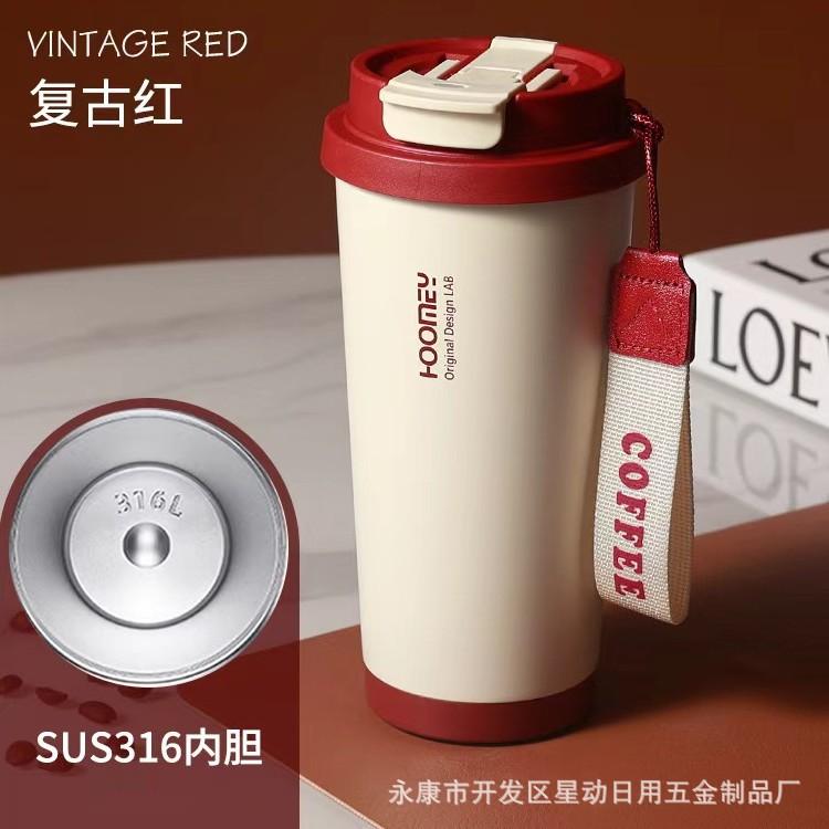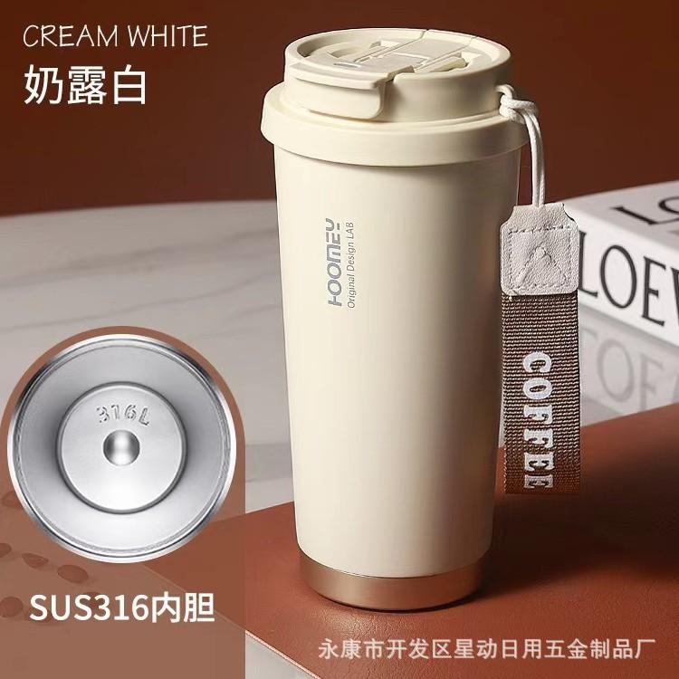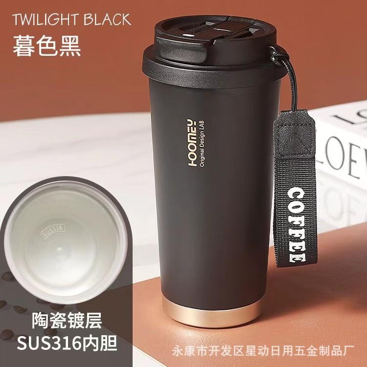 Taza Termo de Acero Inoxidable 316 Oficina Taza de Café Lirio de los Valles de Aspecto Elegante con Correa Vaso Portátil para Exterior
