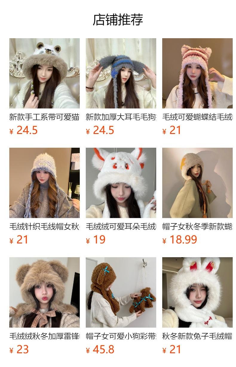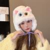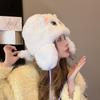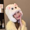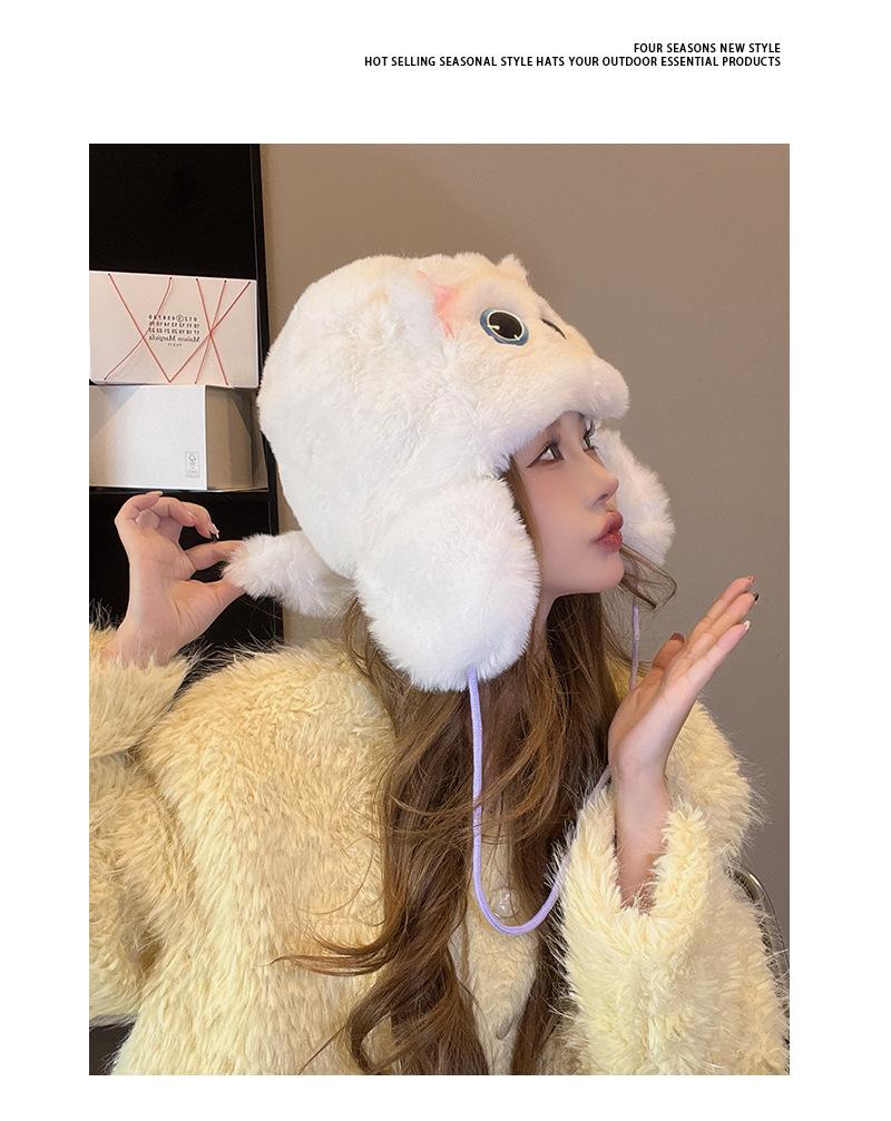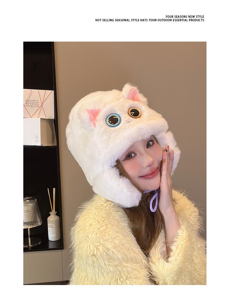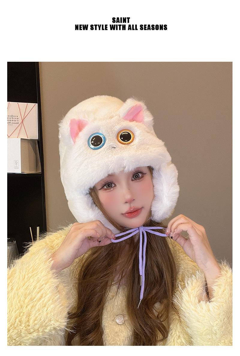Gorro de peluche de gato Lei Feng para mujer, cálido, con correa gruesa y protección para las orejas, para otoño e invierno, con bonitos y dulces ojos grandes.