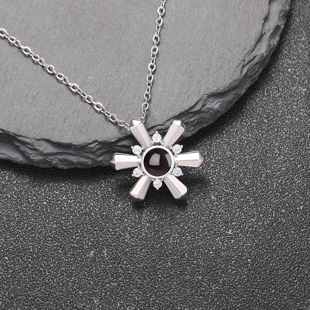 Collar con proyección de "Te amo" en 100 idiomas, nuevo, transfronterizo europeo y americano, colgante con foto personalizado de copo de nieve simple, venta al por mayor