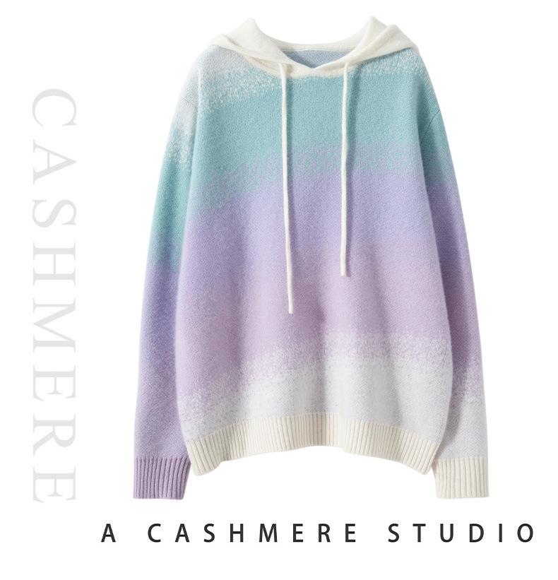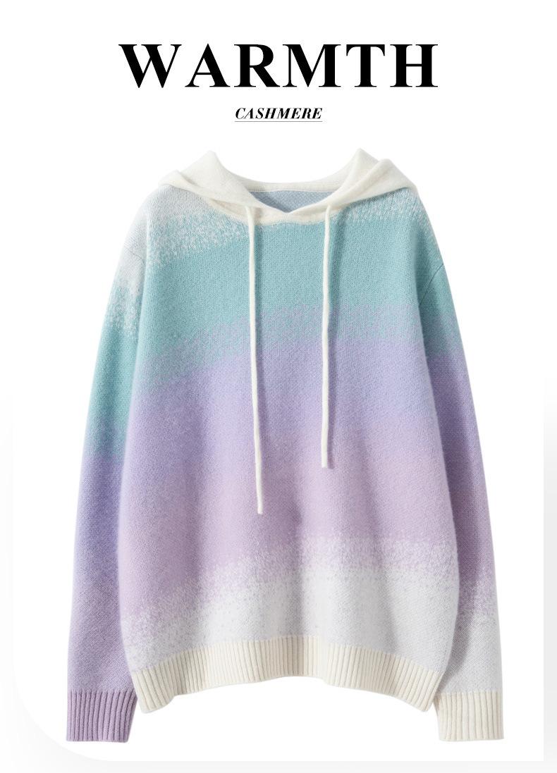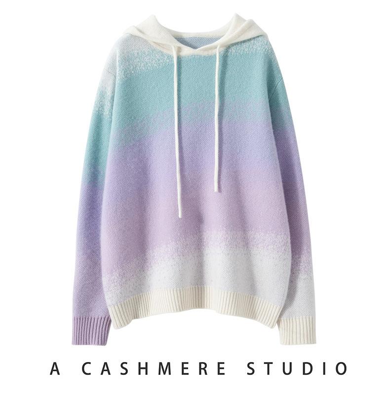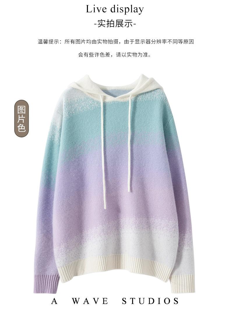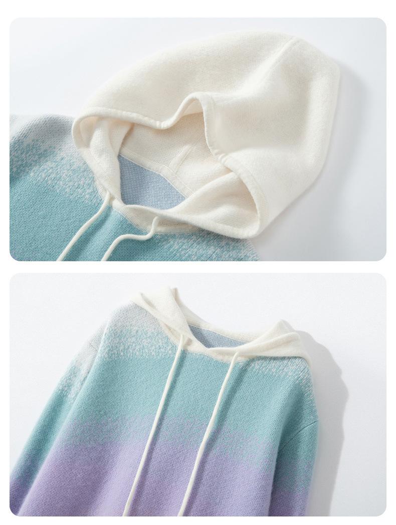 Chaqueta cálida de manga larga para mujer, suéter de cachemira de otoño e invierno, suelto, con degradado, informal, con capucha, combina con todo.