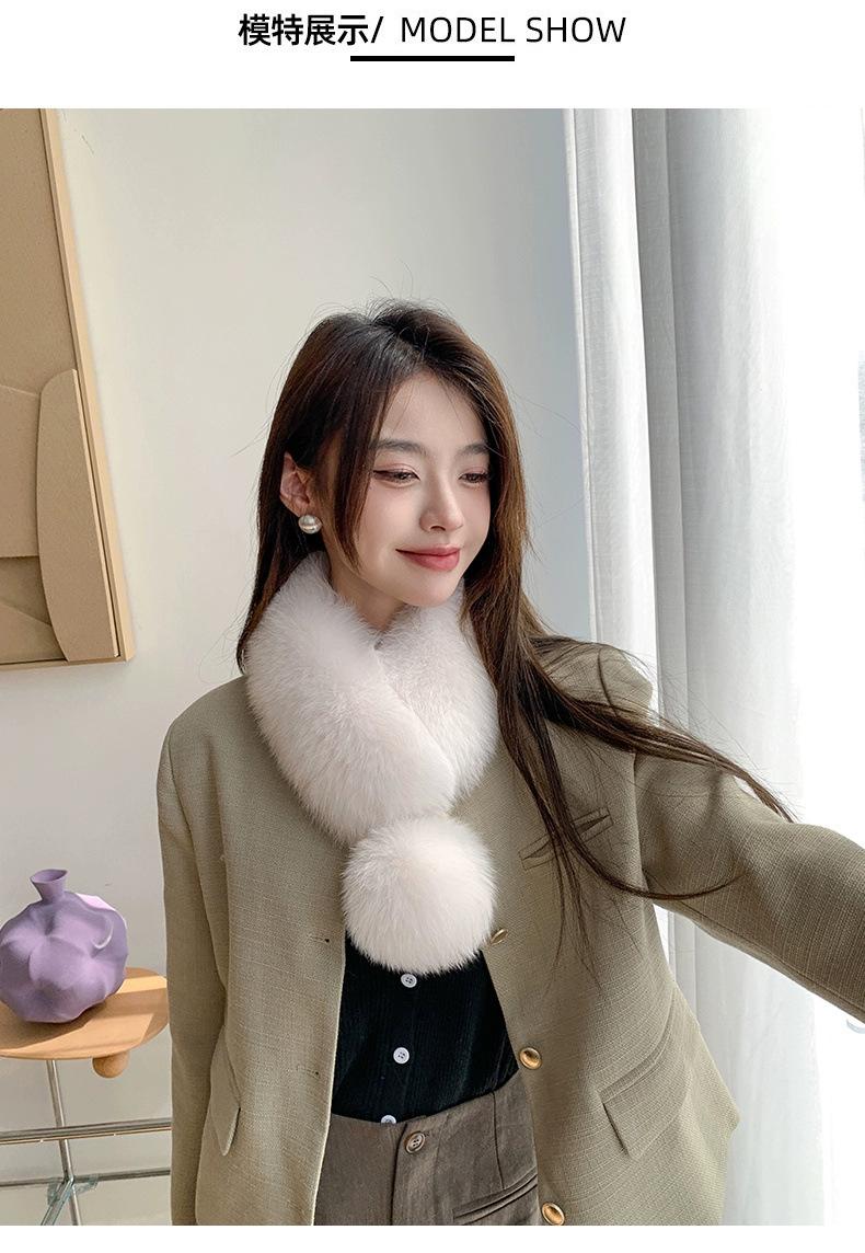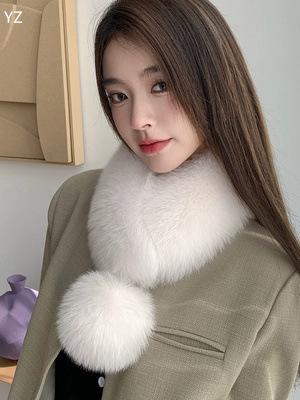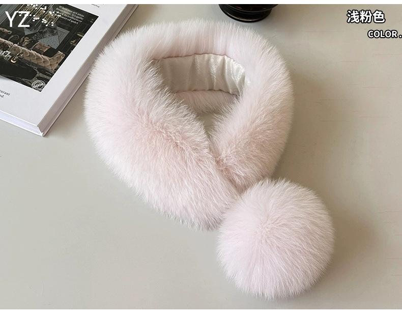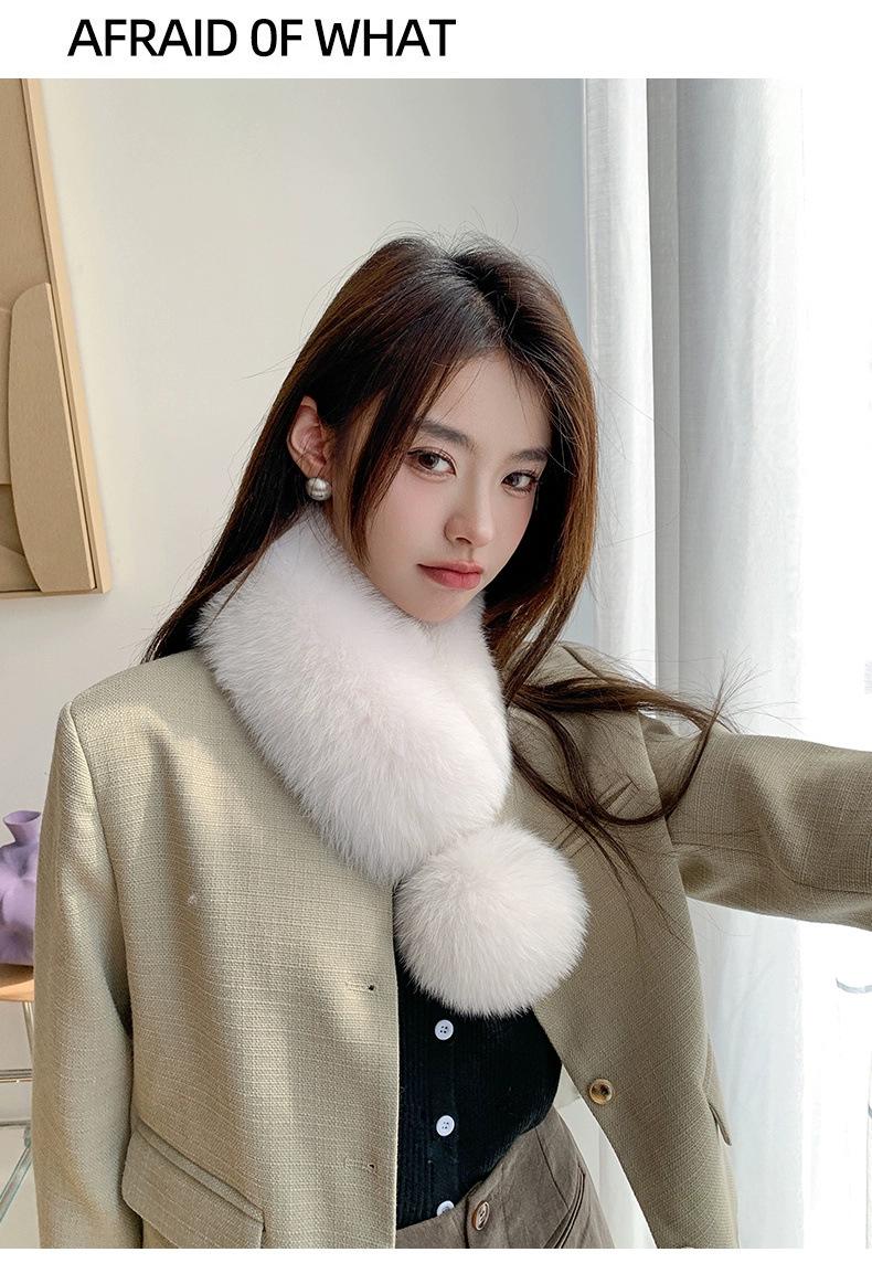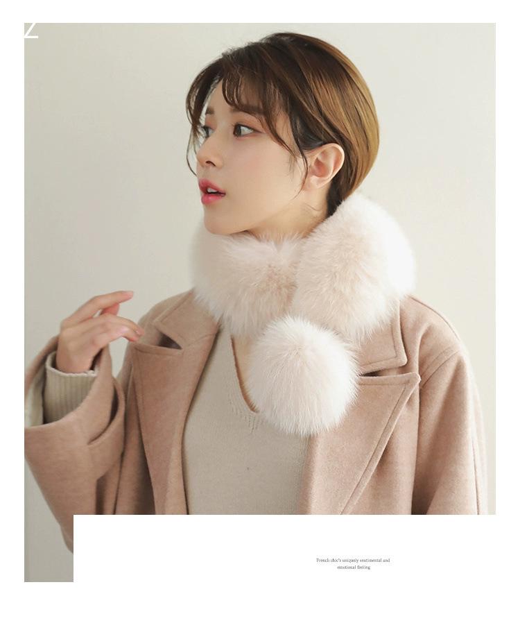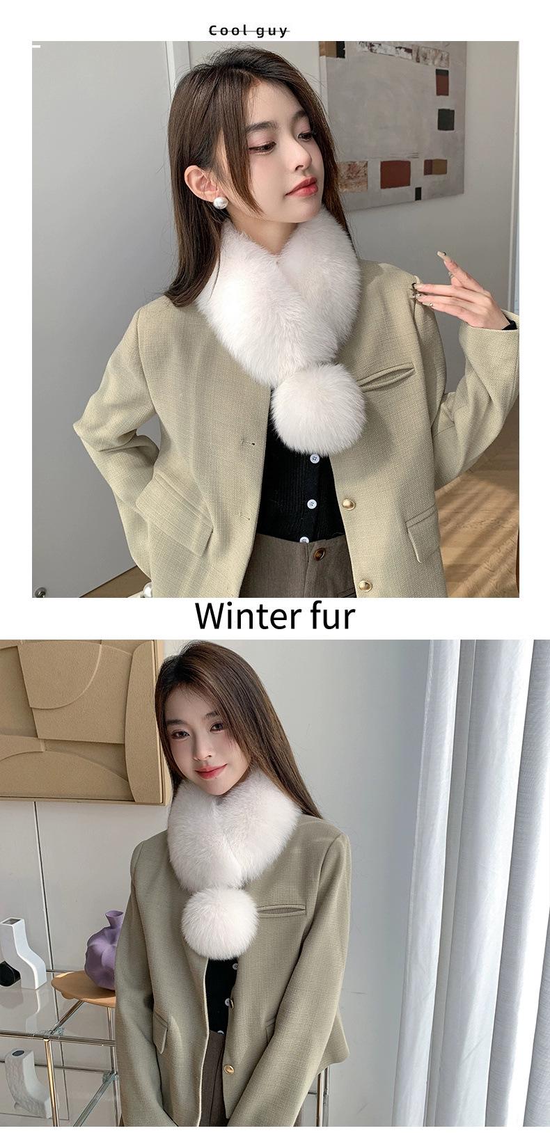 Suministro del Fabricante de Bufandas de Piel de Zorro Real, Moda Coreana para Mujer con Pompones, Versátil Piel Real Hecha a Mano