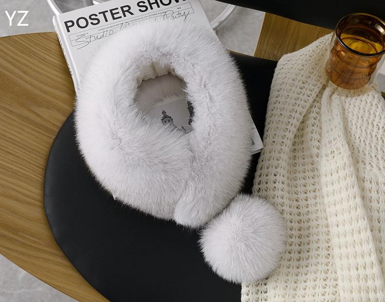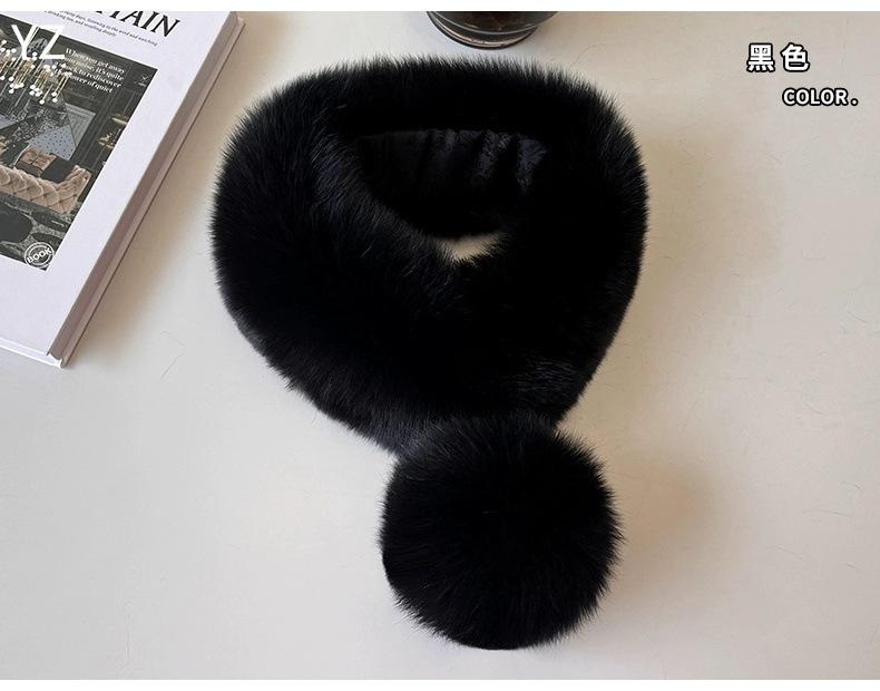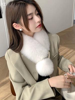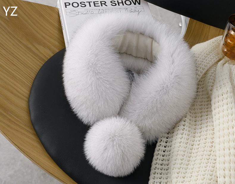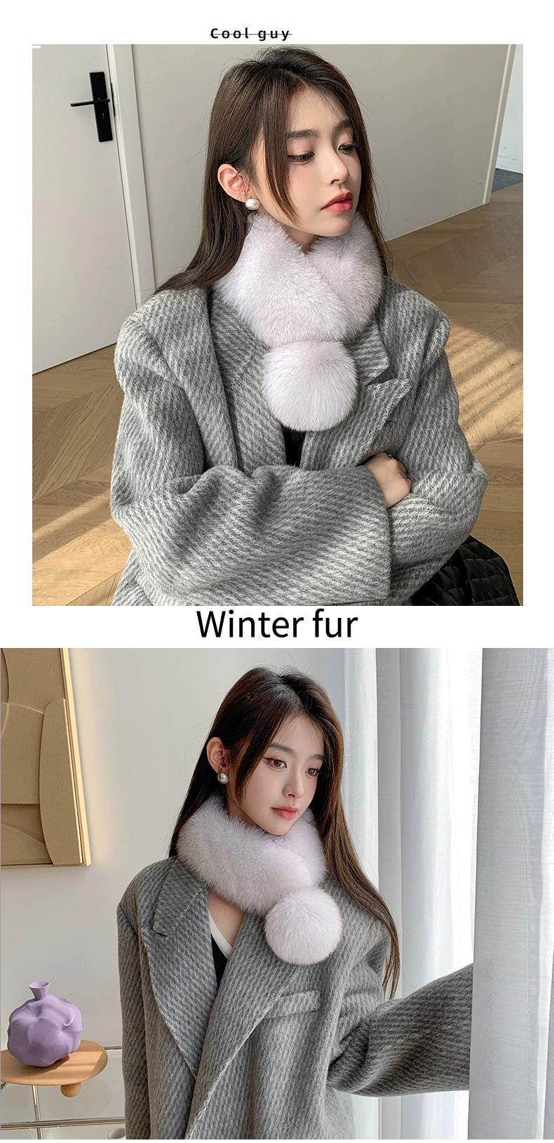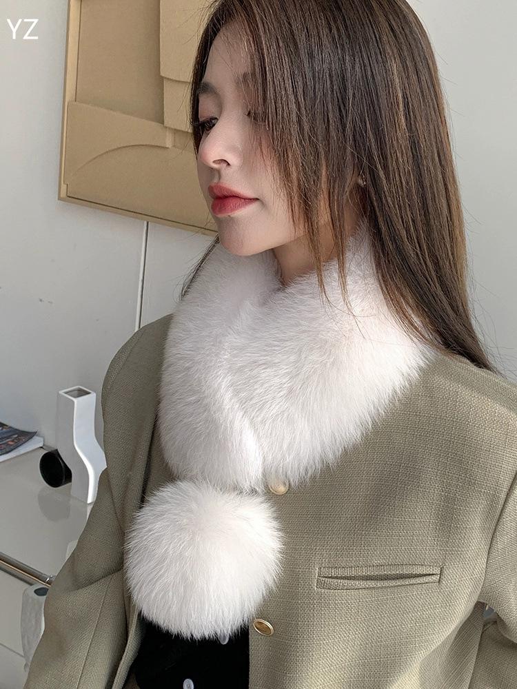 Suministro del Fabricante de Bufandas de Piel de Zorro Real, Moda Coreana para Mujer con Pompones, Versátil Piel Real Hecha a Mano