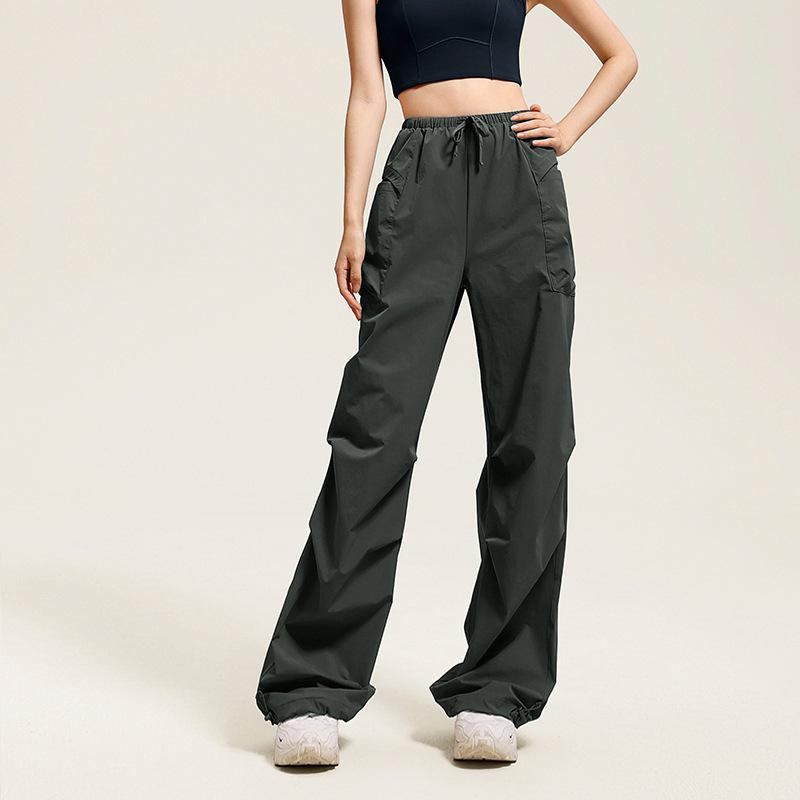 Pantalones Crock con Cordón Estilo Americano Pantalones Deportivos Casuales Mujer 2024 Otoño Nuevo Holgados para Senderismo al Aire Libre