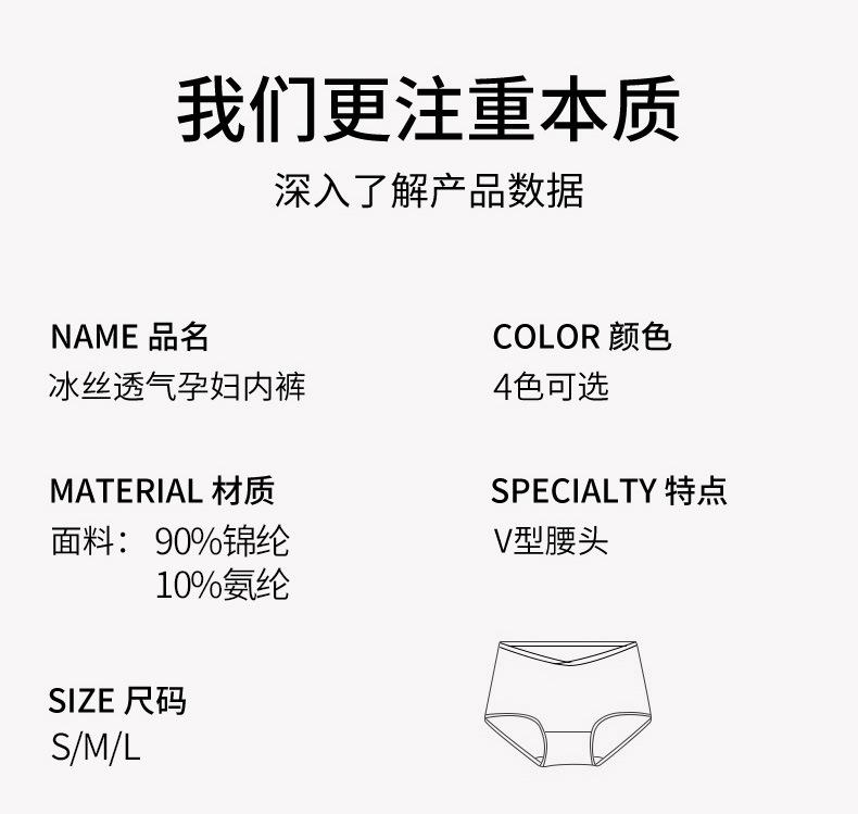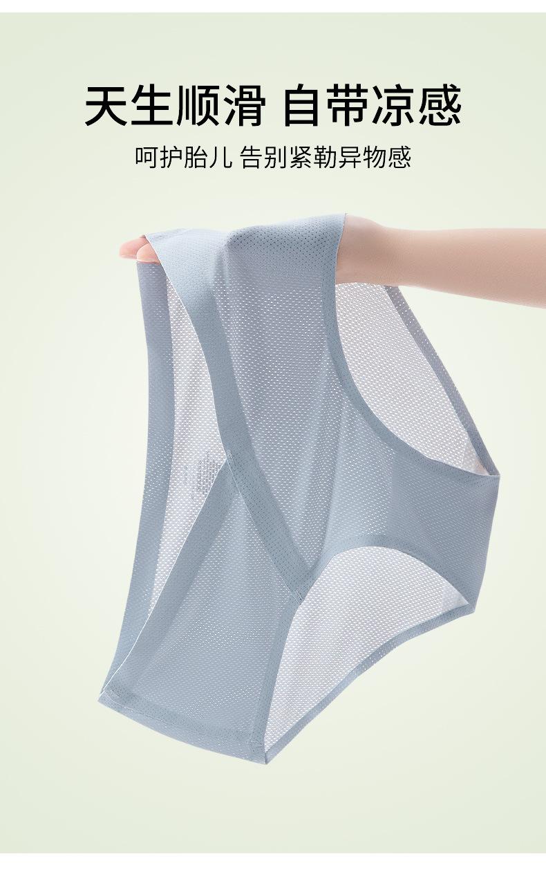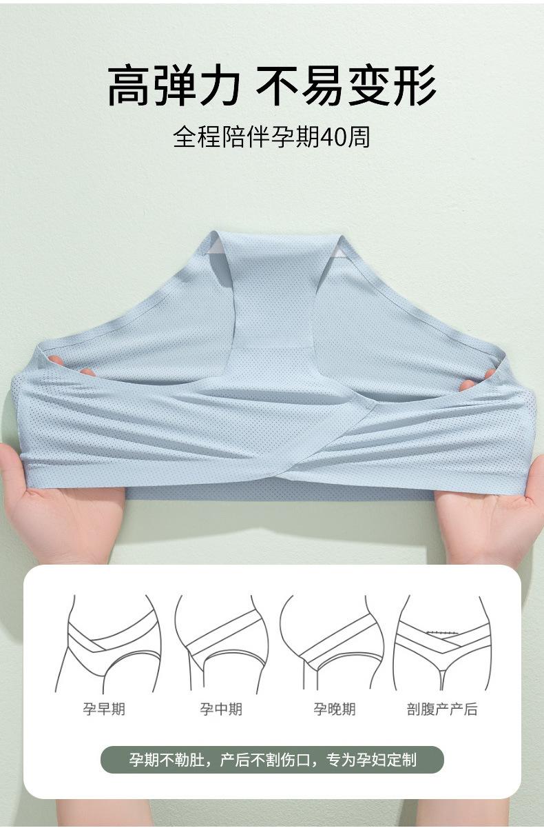(Tres piezas) Ropa interior de cintura baja transpirable con agujeros de seda de hielo para mujeres embarazadas, sin costuras, en forma de V, antes y después del embarazo, ropa interior universal para mujeres embarazadas.