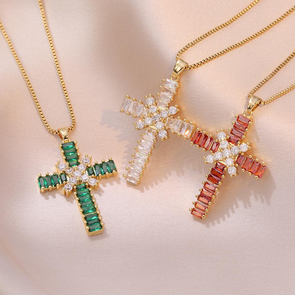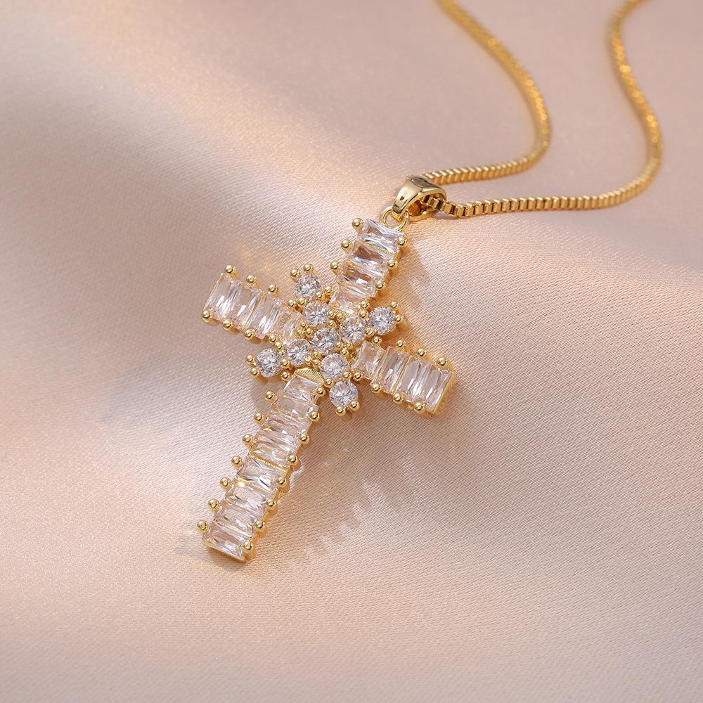 Collar para Mujer Joyería de Moda Transfronteriza Europea y Americana Colgante de Cruz de Circonita Completa Cadena Clavicular Clásica Simple