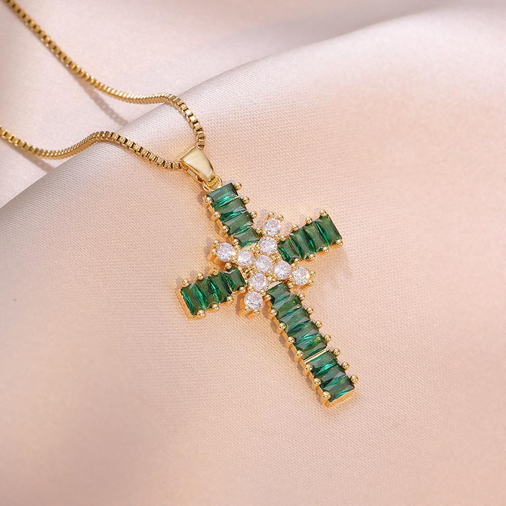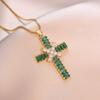 X2546 emerald color cross necklace {pendant together}