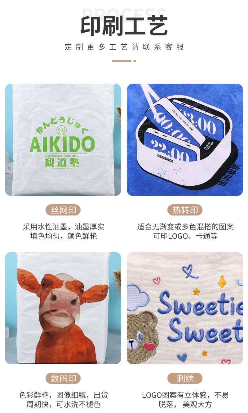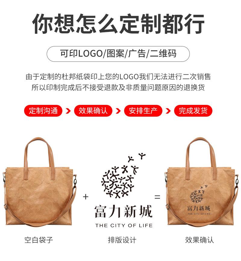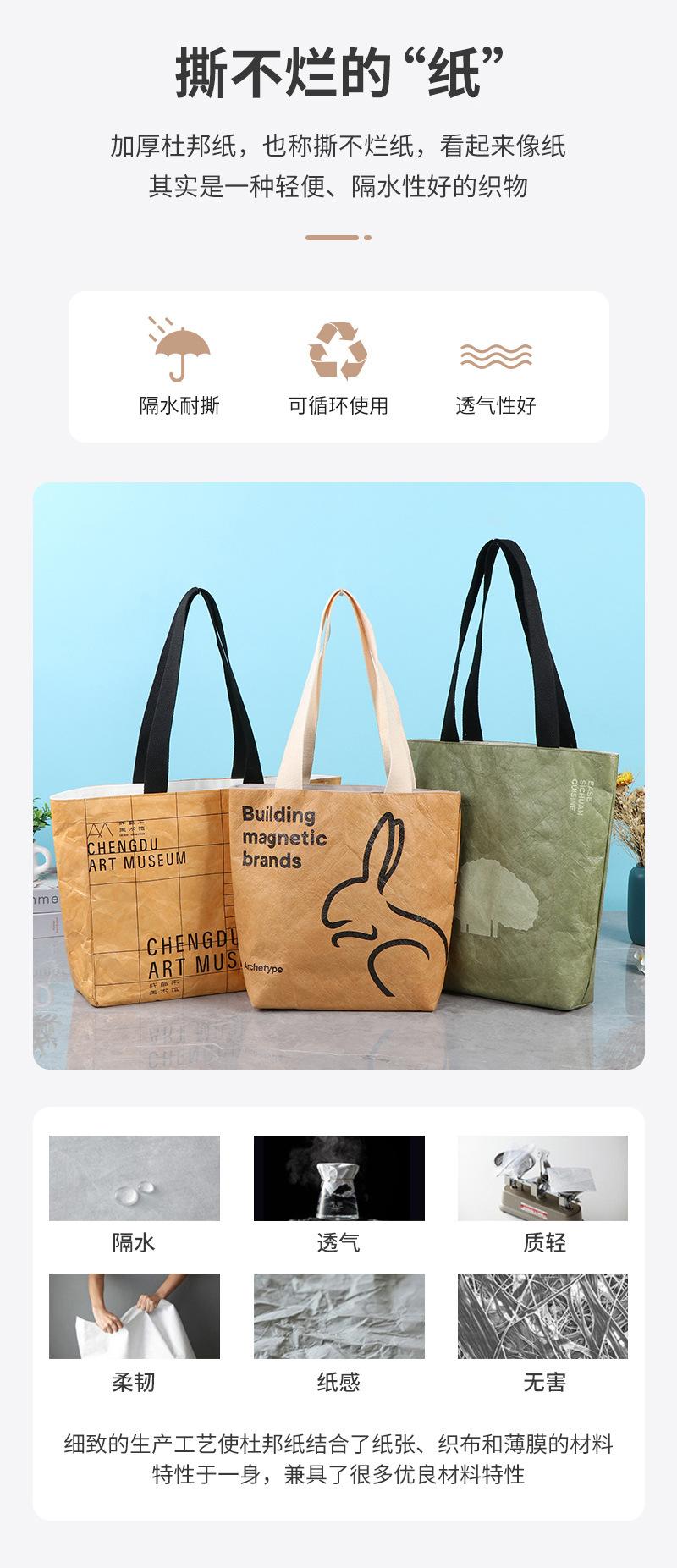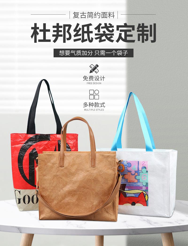 Suministro directo de fábrica bolsos creativos retro de papel DuPont lavado publicidad compras bolsas de papel DuPont bolsas de embalaje de gran capacidad