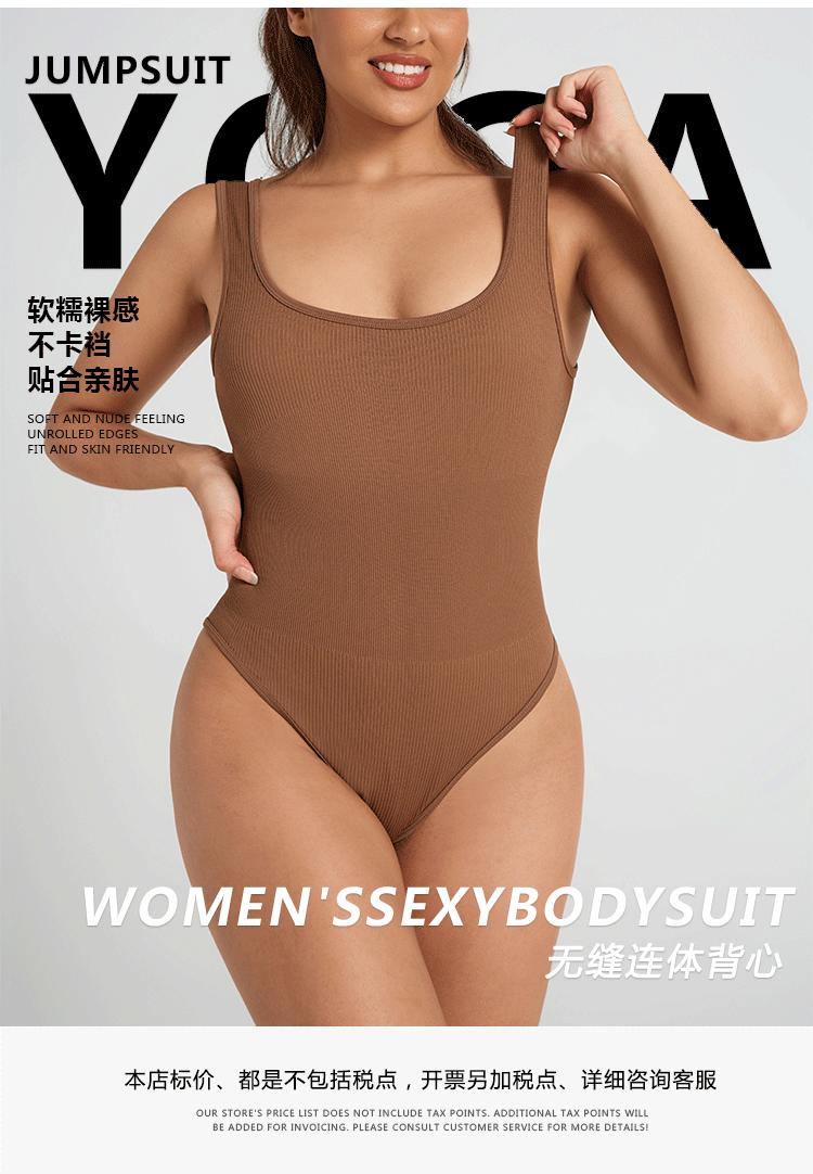 Ropa de Yoga Sexy de Una Pieza sin Costuras con Hilo Cruzado Europeo y Americano, Chaleco sin Mangas, Tanga Reveladora de Cadera para Mujer, Mono de Talla Grande