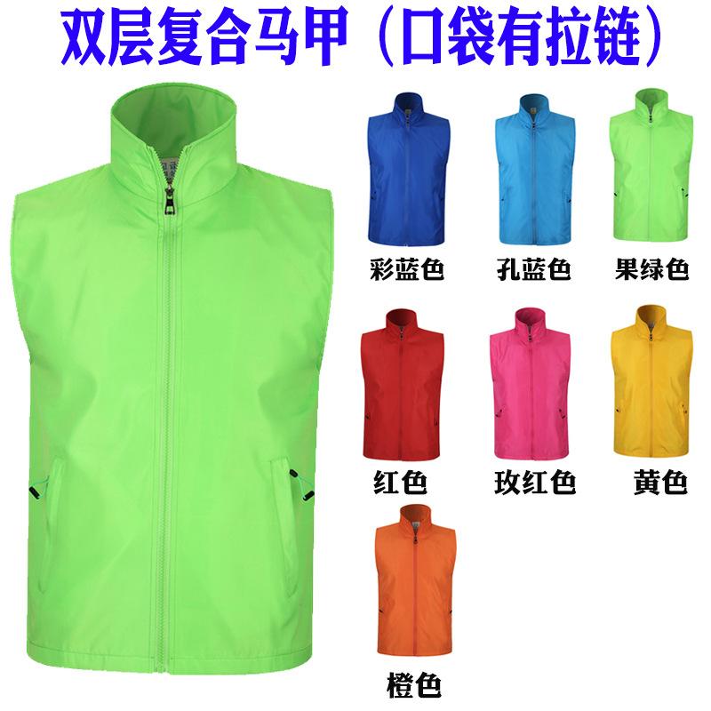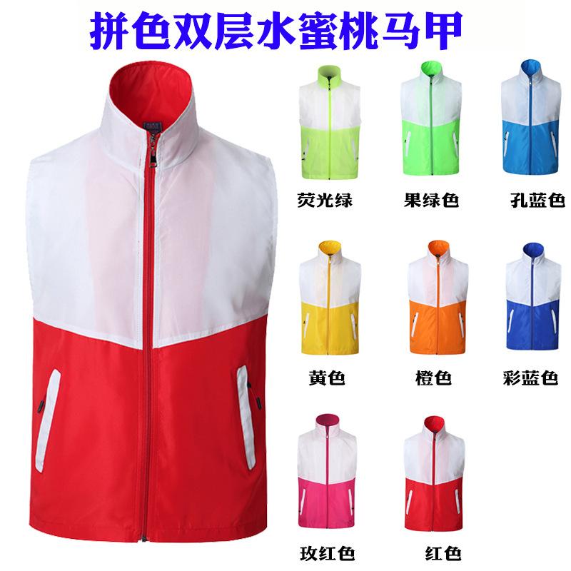 Chaleco melocotón de doble capa bicolor (bolsillos con cremallera) Ropa en blanco 18 yuanes Precio de impresión según la imagen