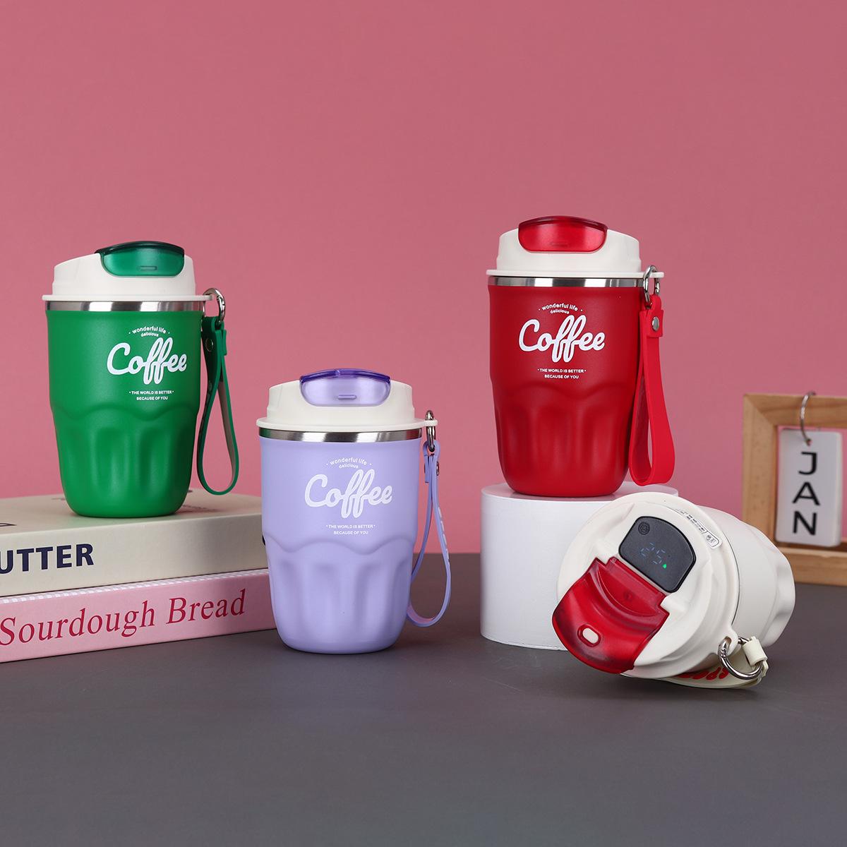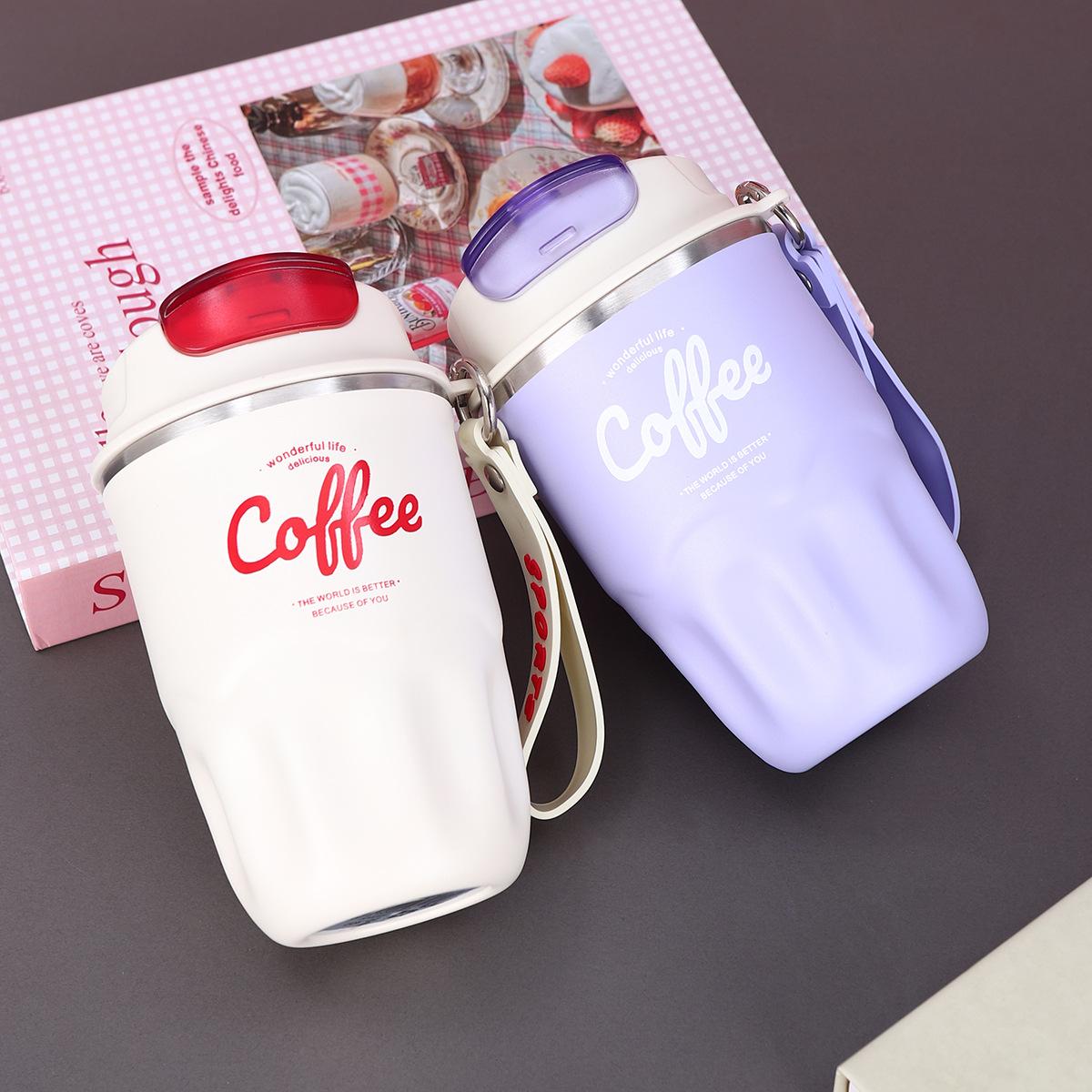 Verano Nuevo Mini Taza de Café Frío Portátil para Exterior Color Sólido Taza para Beber Directamente Simple Inteligente con Pantalla de Calor Vaso Termo