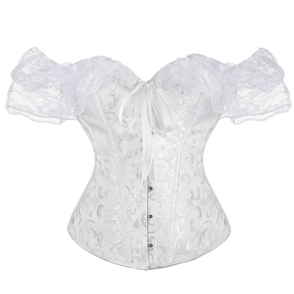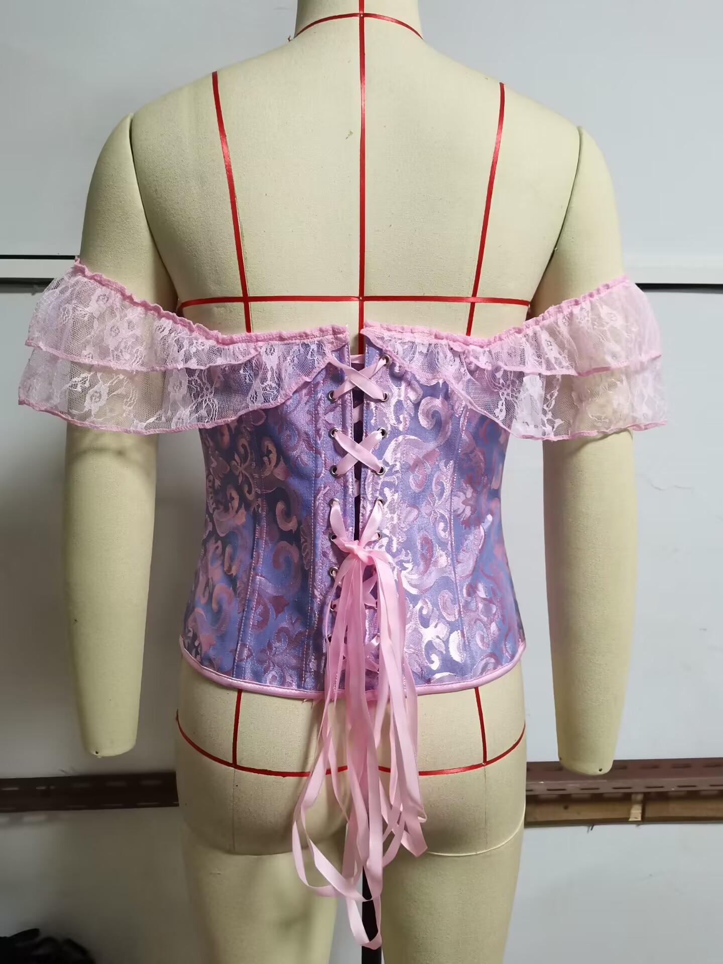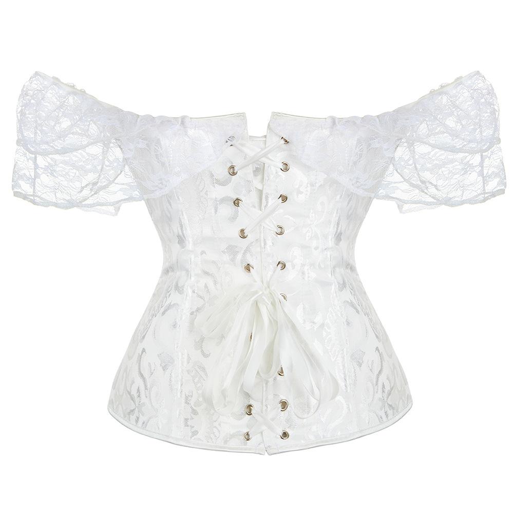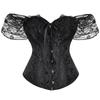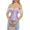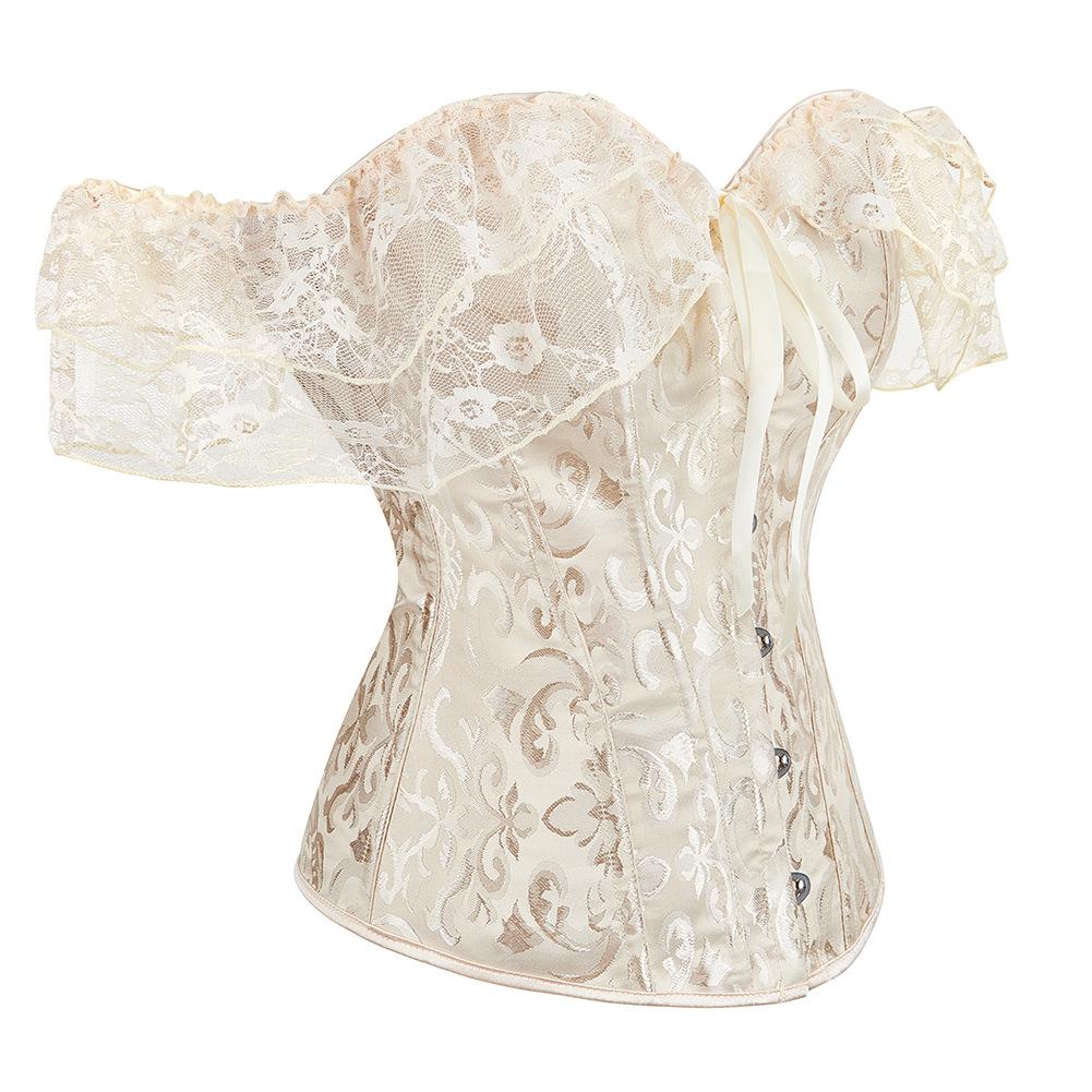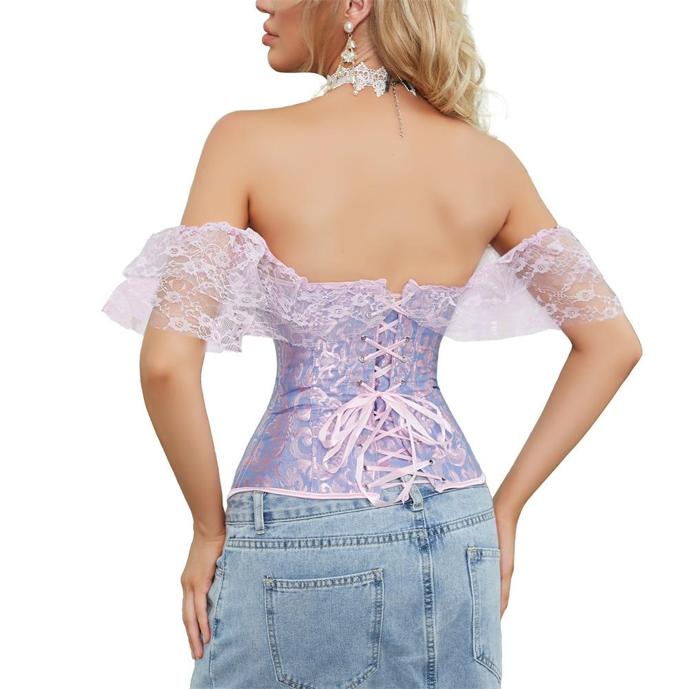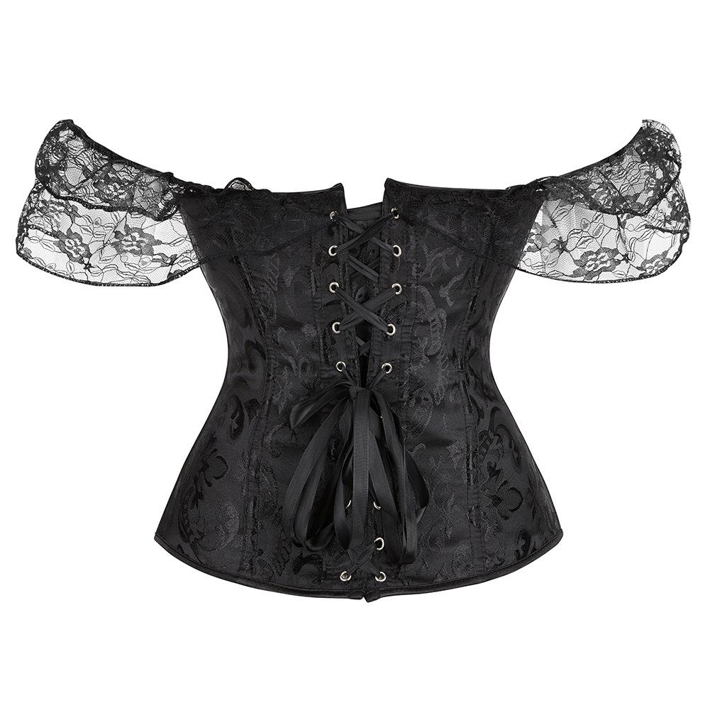 El corsé para mujer presenta mangas cortas con cordones, corsé fuera del hombro, espalda ajustable con cordones y panel de modestia ancho para expandir el corsé y proteger la piel de la espalda. Este corsé con cordones es una buena opción para moldear la figura.