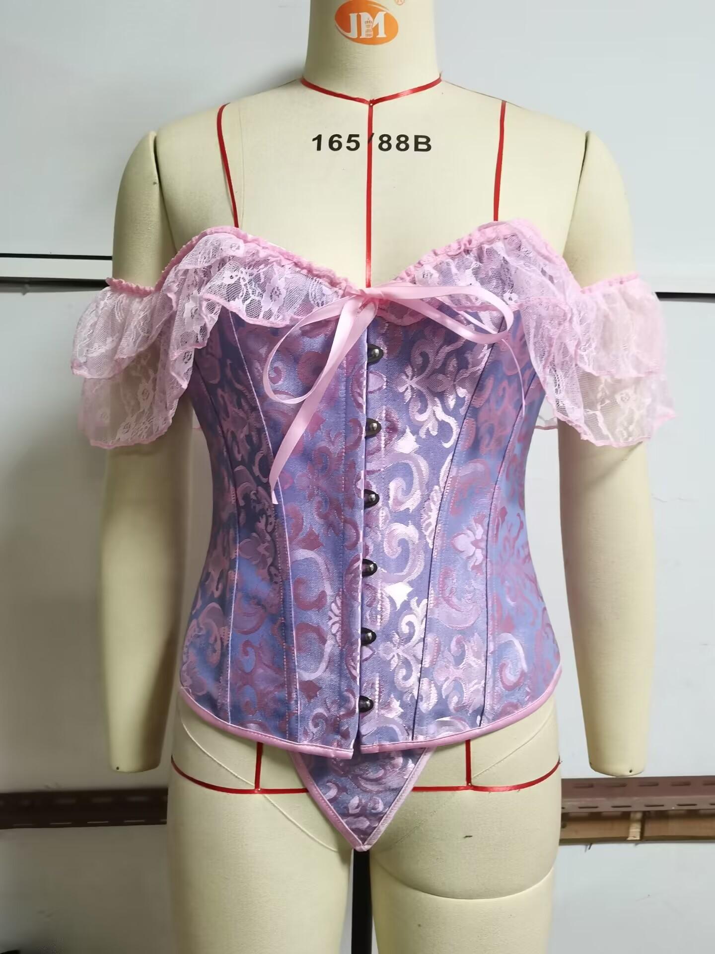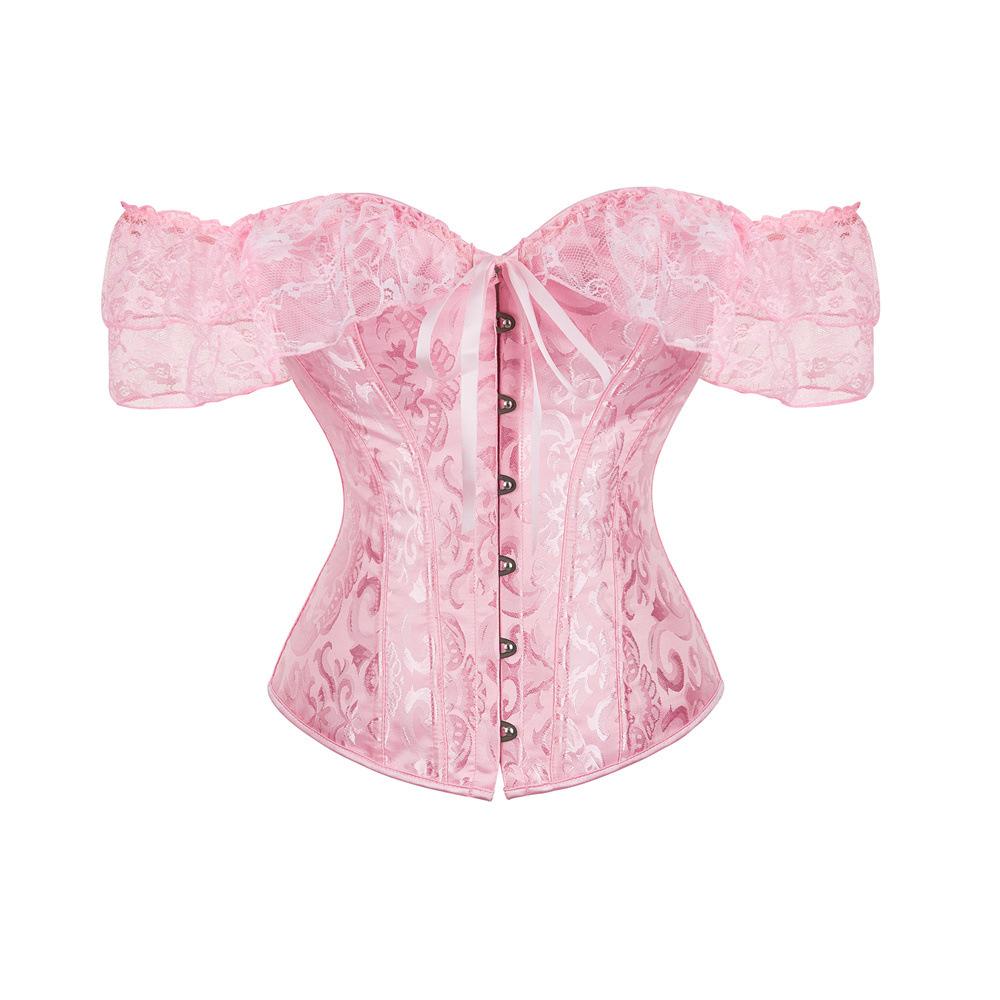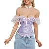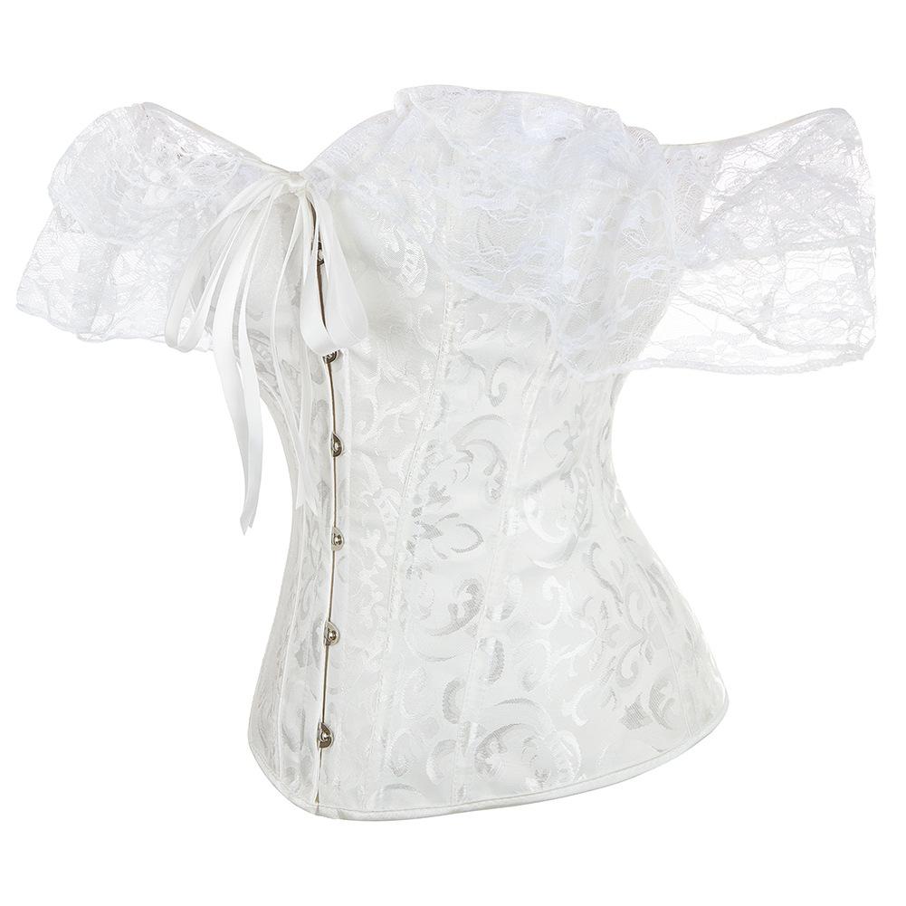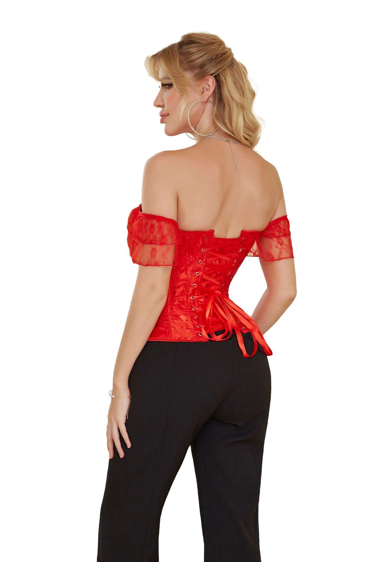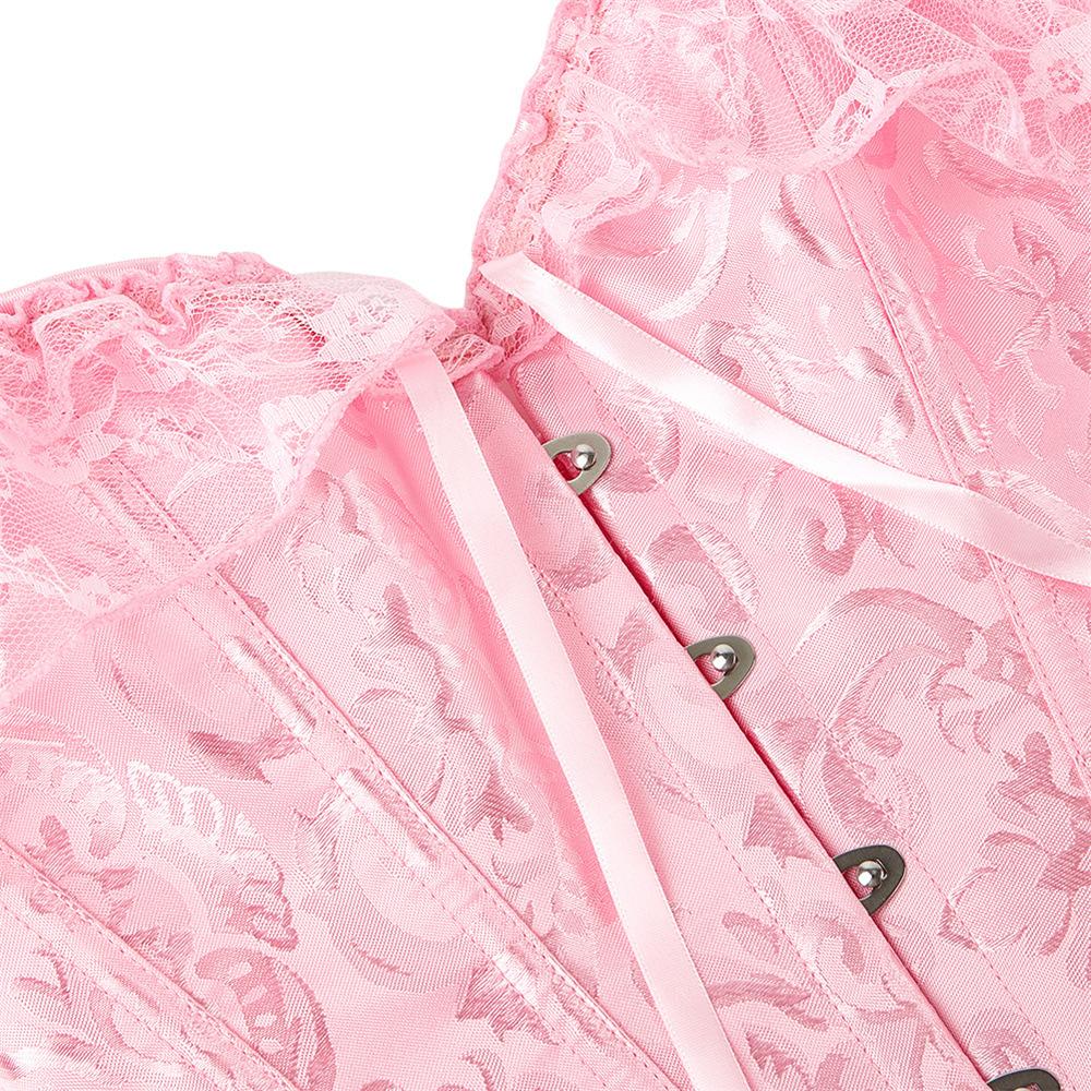 El corsé para mujer presenta mangas cortas con cordones, corsé fuera del hombro, espalda ajustable con cordones y panel de modestia ancho para expandir el corsé y proteger la piel de la espalda. Este corsé con cordones es una buena opción para moldear la figura.
