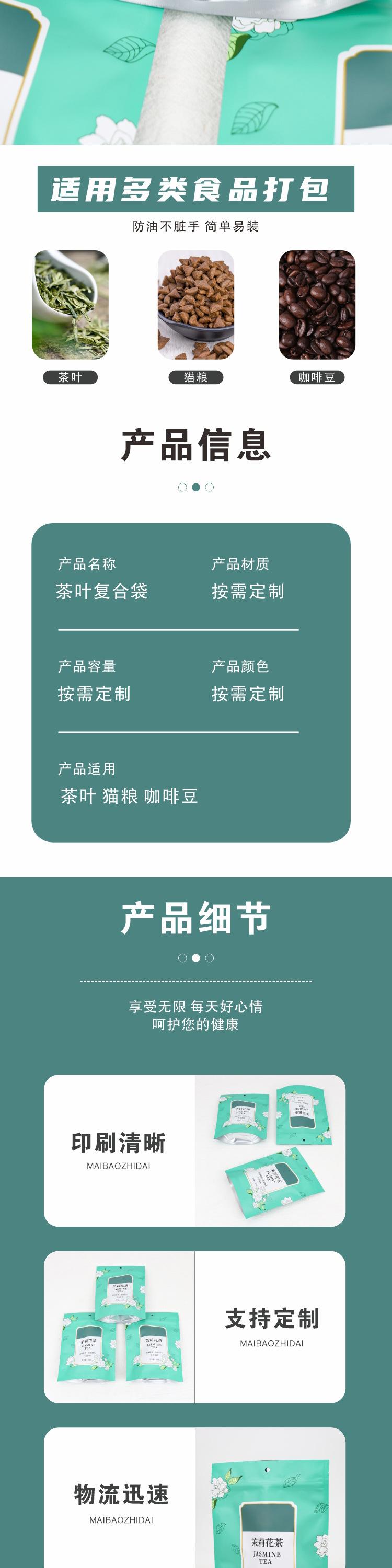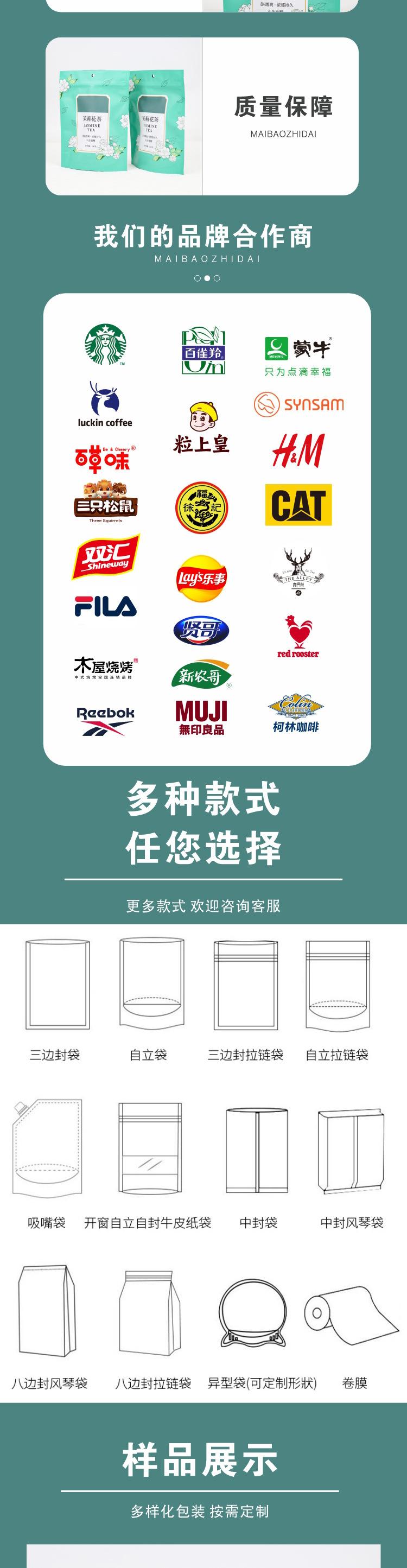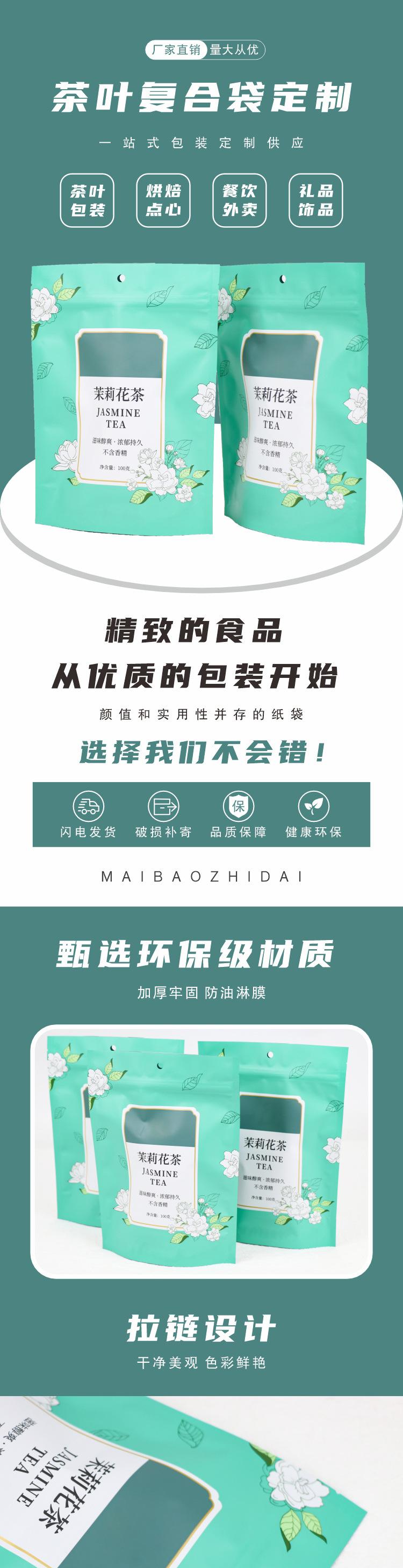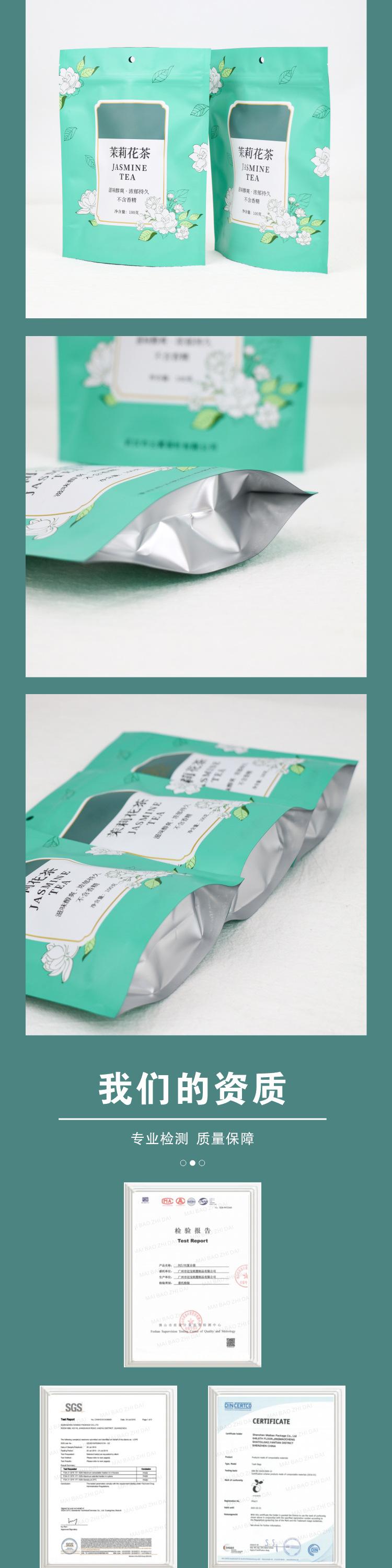 Bolsa de Té Sellado por Ocho Lados Personalizada, Bolsa de Papel Kraft Compuesto de Lámina de Aluminio, Bolsa de Embalaje de Plástico a Prueba de Humedad para Té de Jazmín Té Blanco