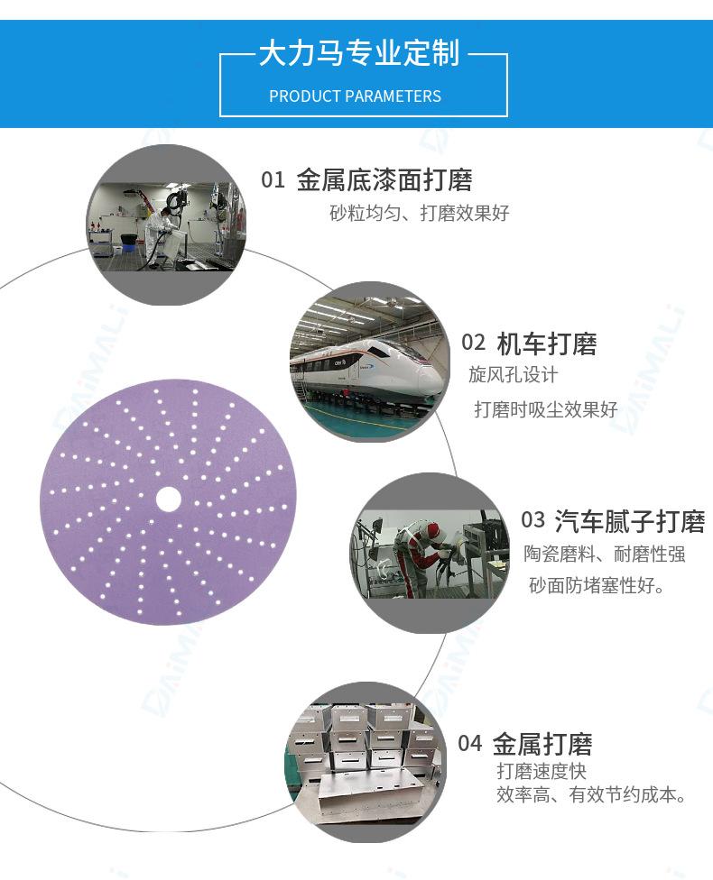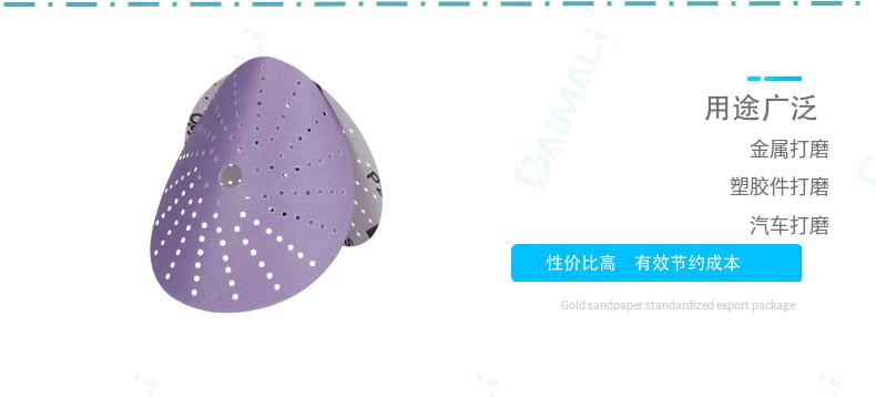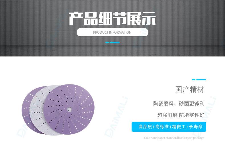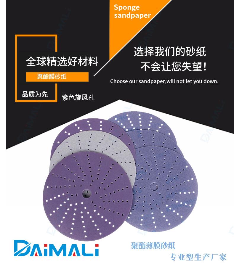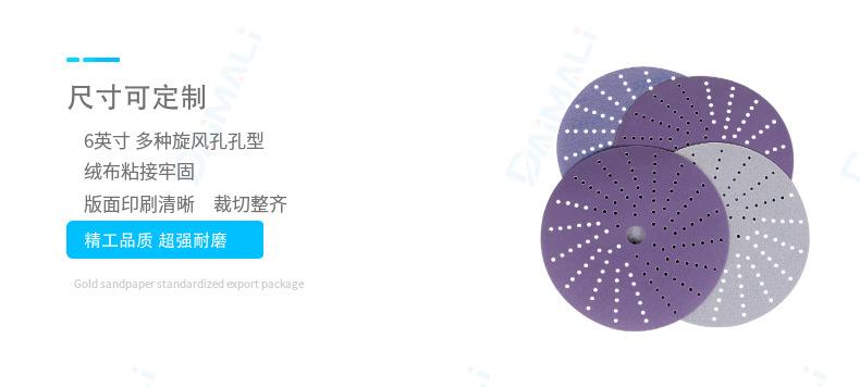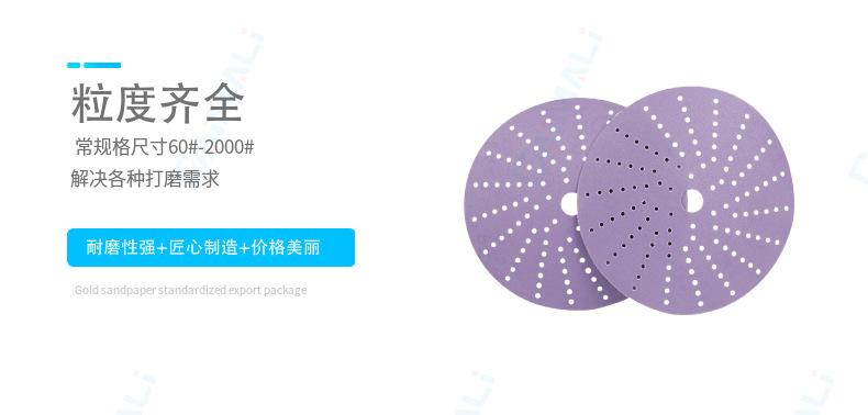 Papel de lija abrasivo cerámico flocado con orificio ciclónico morado de 6 pulgadas y 150 mm. Exportación transfronteriza. Papel de lija redondo poroso.