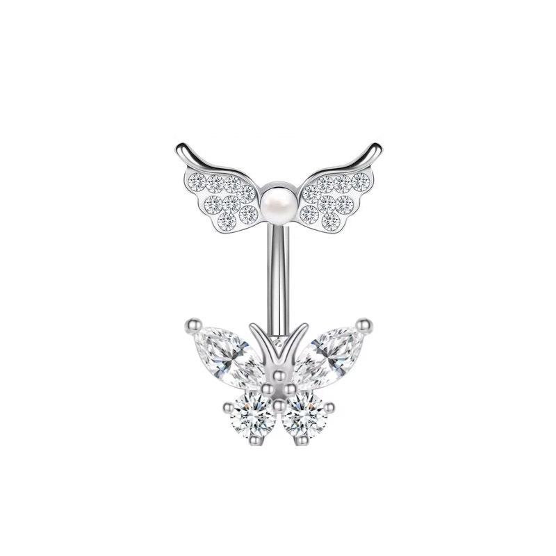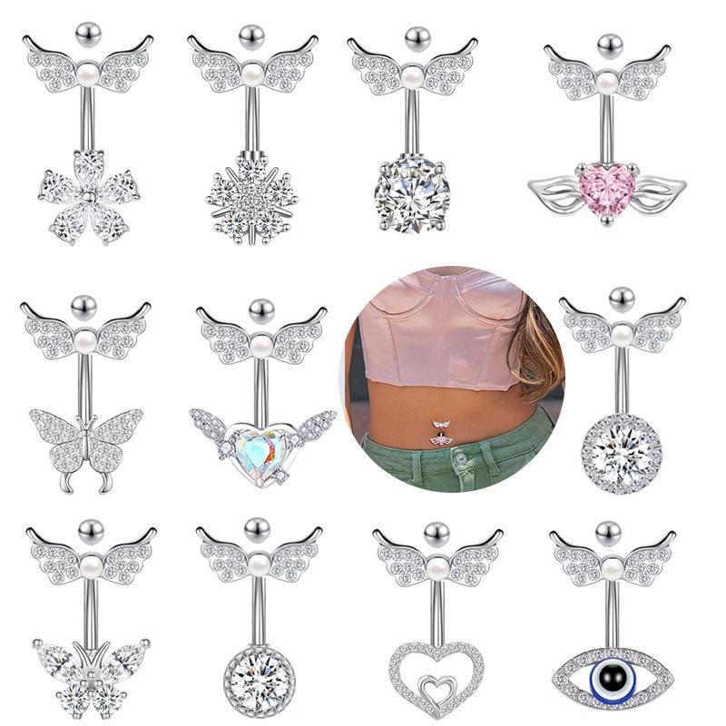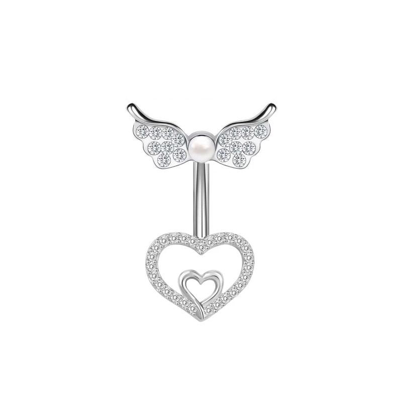 Anillo de ombligo de amor Europa y Estados Unidos transfronterizo de acero inoxidable para mujer, clavo perforado para el ombligo, alas sexys, hebilla para el ombligo