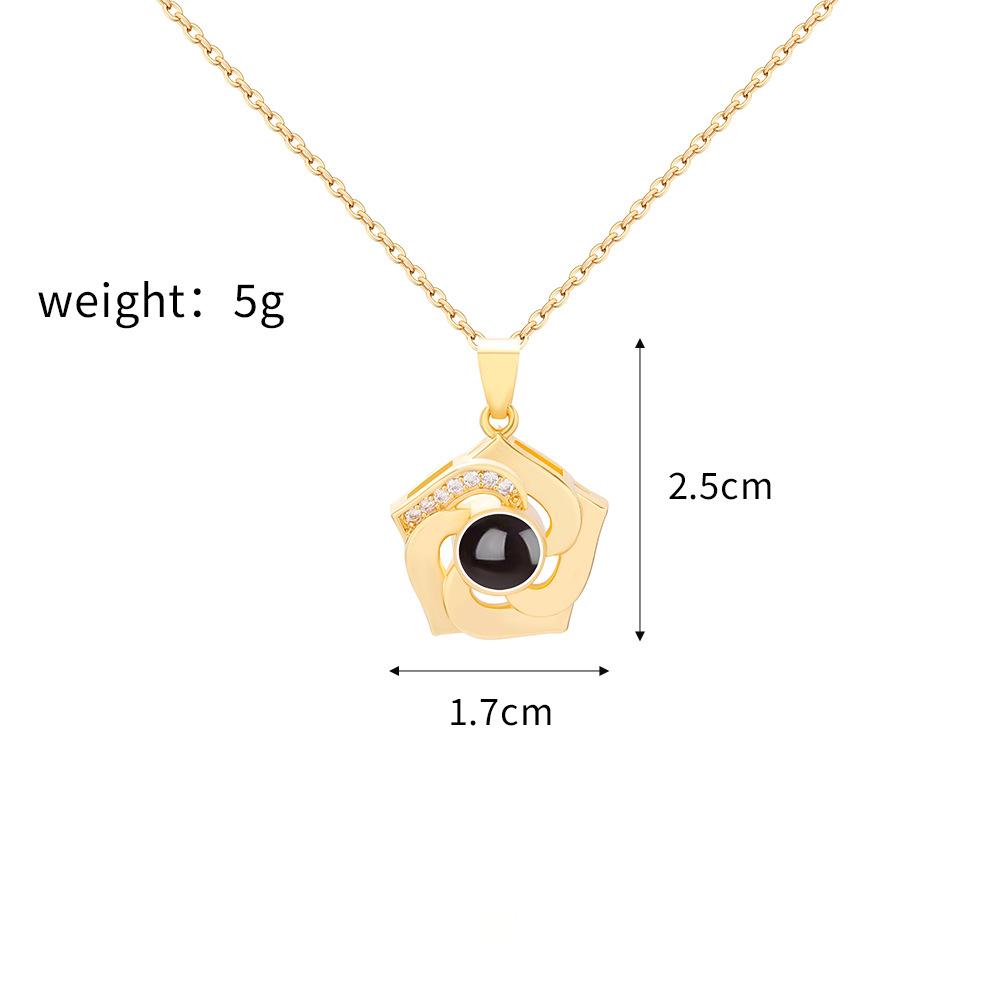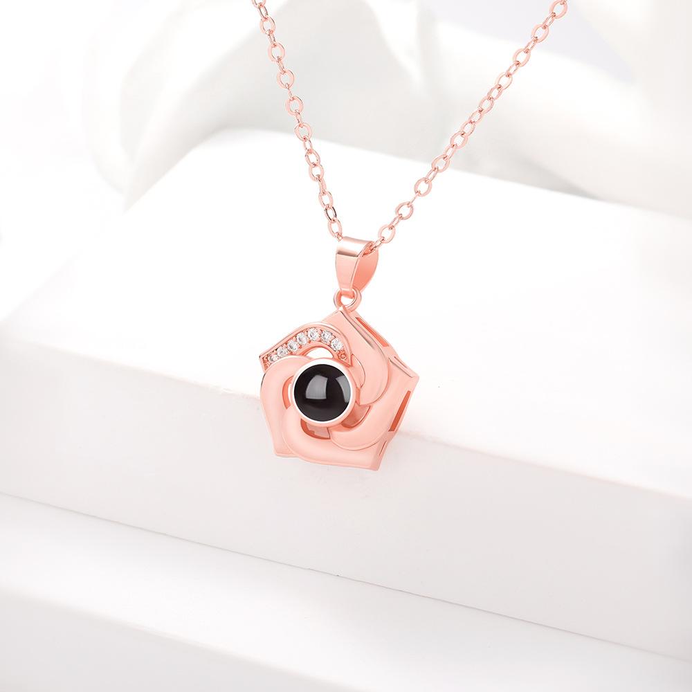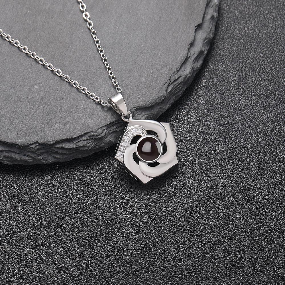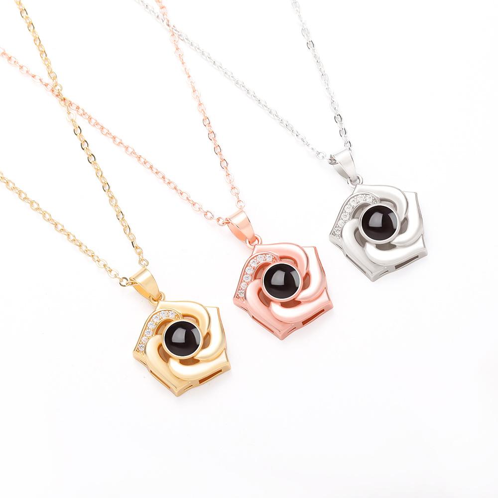 Nuevos productos transfronterizos europeos y americanos, 100 idiomas, collar de proyección "Te amo", cadena de clavícula con flores giratorias, colgante, fábrica al por mayor