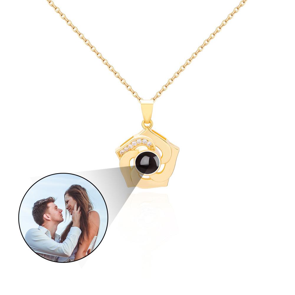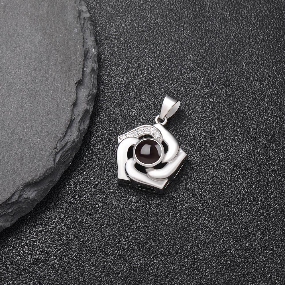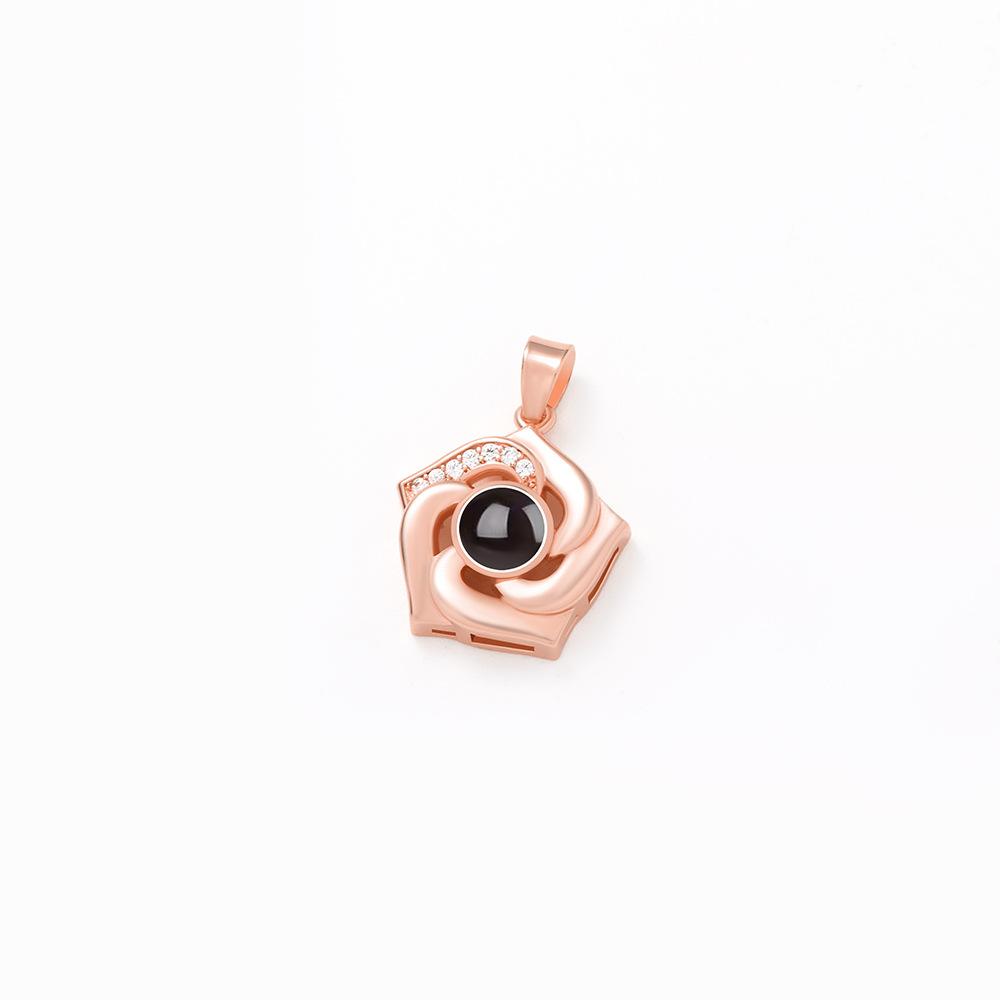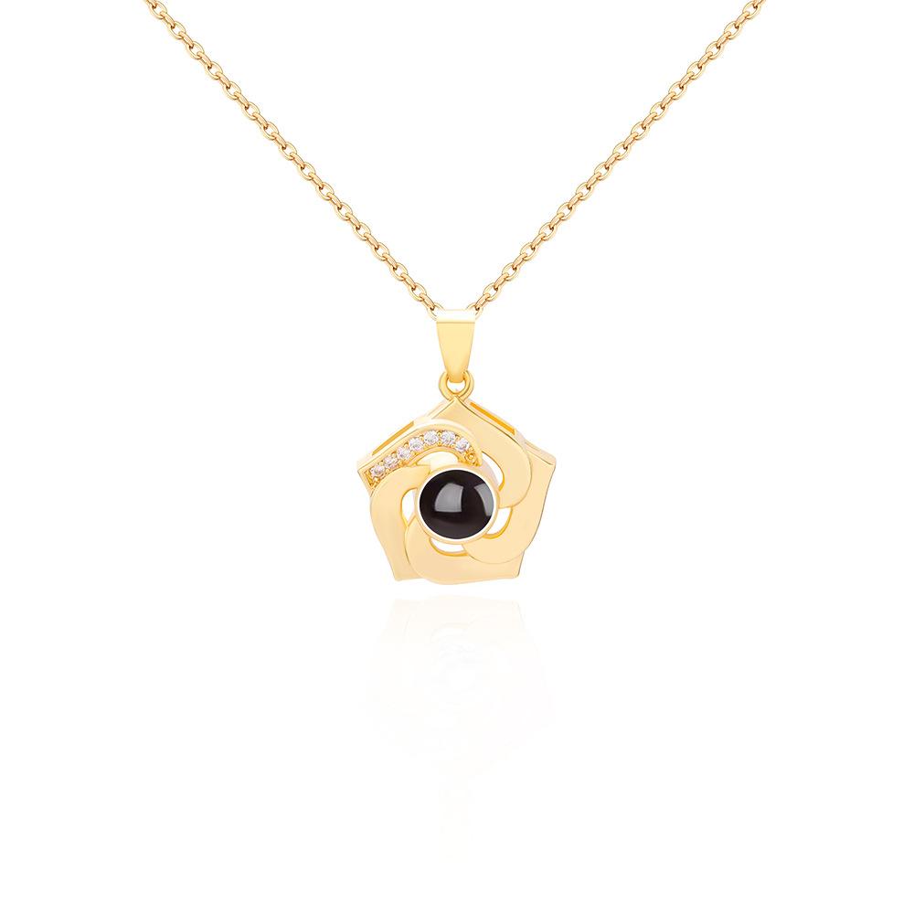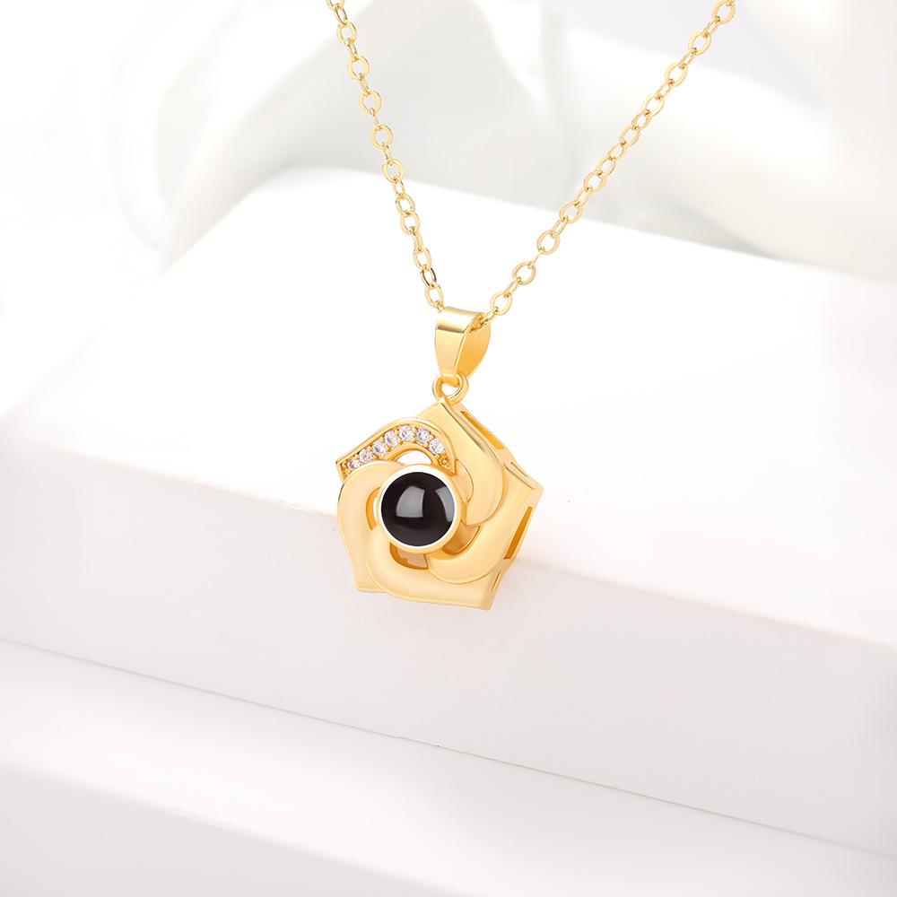 Nuevos productos transfronterizos europeos y americanos, 100 idiomas, collar de proyección "Te amo", cadena de clavícula con flores giratorias, colgante, fábrica al por mayor