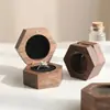 Caja para Anillo Material de Madera Forro de Franela Propuesta Caja para Pareja Caja de Regalo Ventana Hexagonal Joyería Caja de Seis Lados
