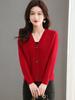 Cárdigan de punto con cuello en V para mujer, primavera y otoño 2024, nuevo estilo, cintura alta, falda a juego, suéter fino con giro exterior
