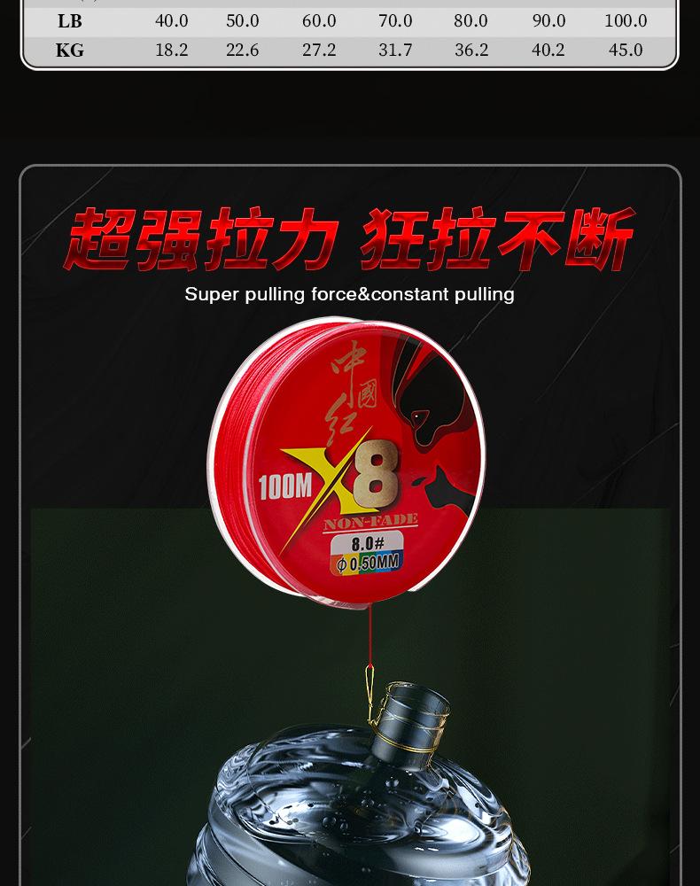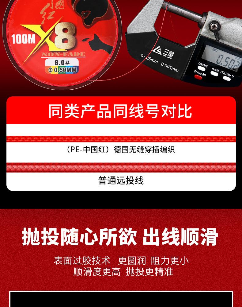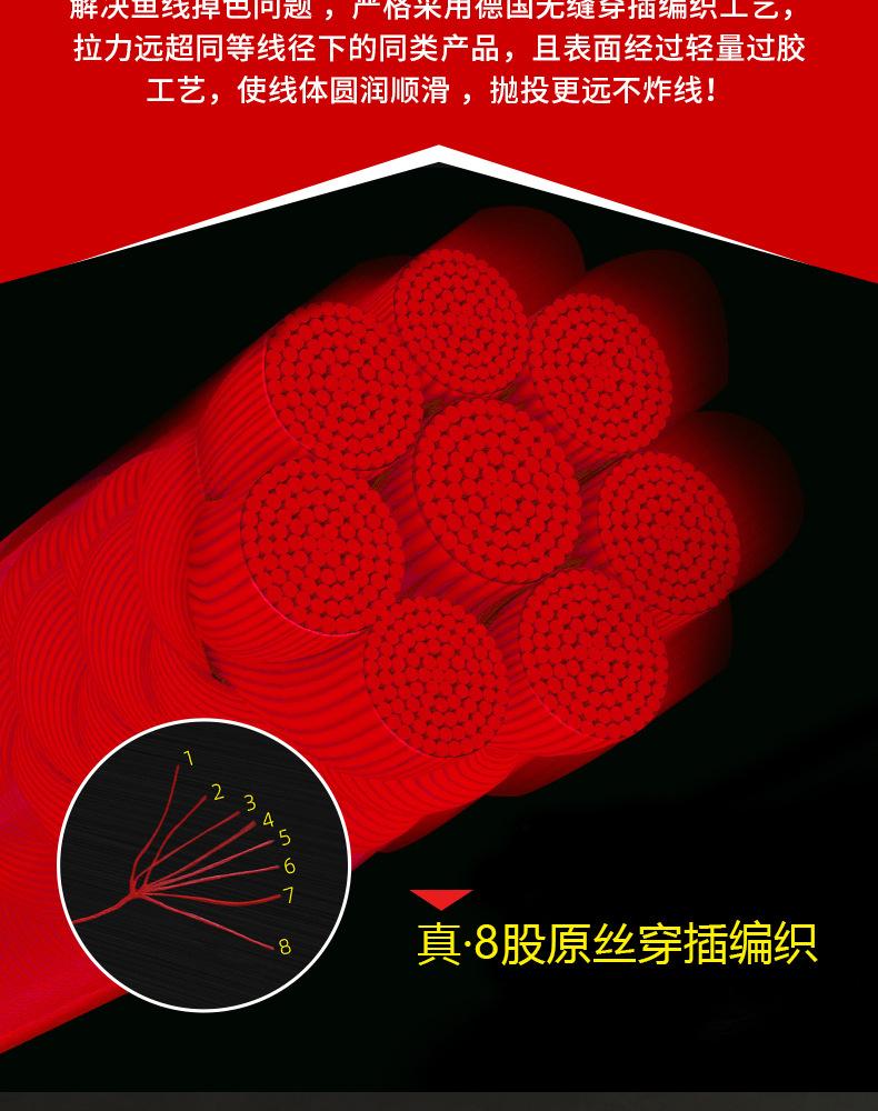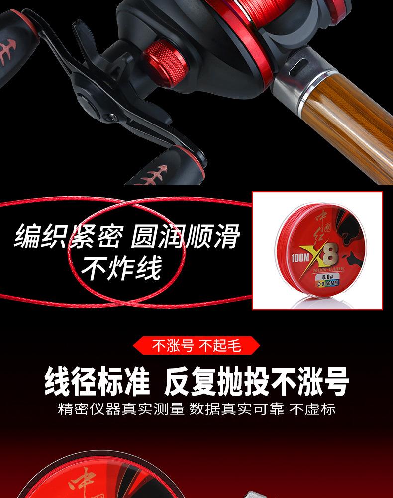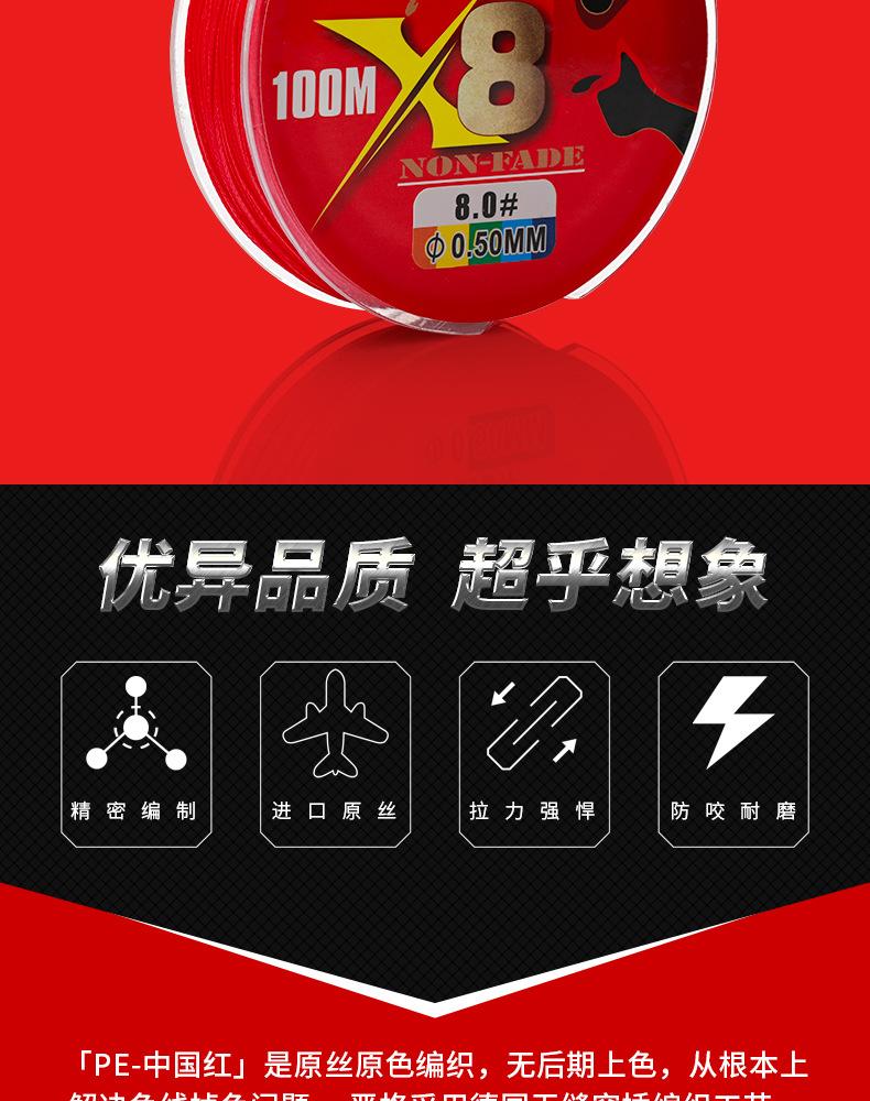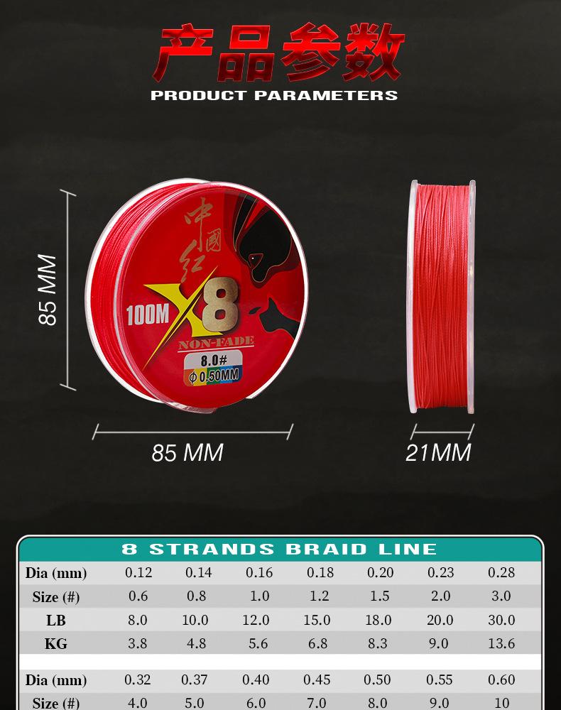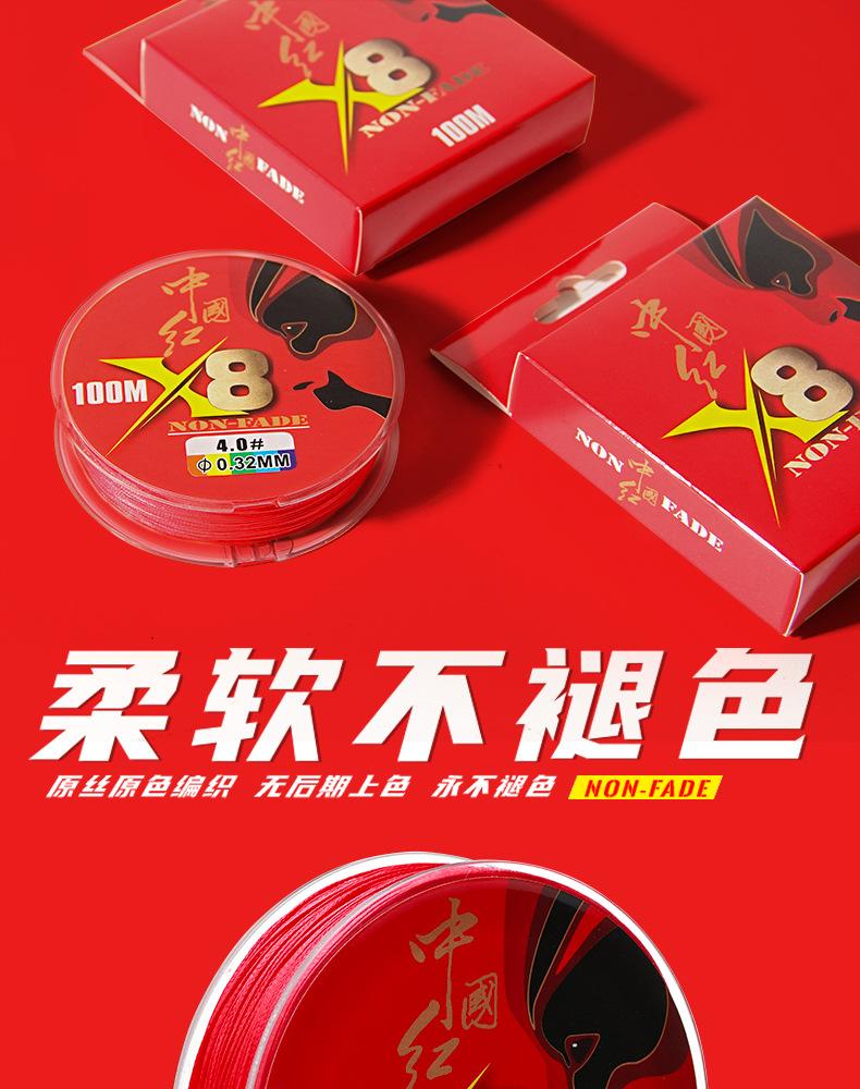 Línea de pesca roja de China que no se desvanece, línea de pesca trenzada de PE de 8 a 100 metros, línea de pesca resistente para caballos, pesca transfronteriza en el mar asiático
