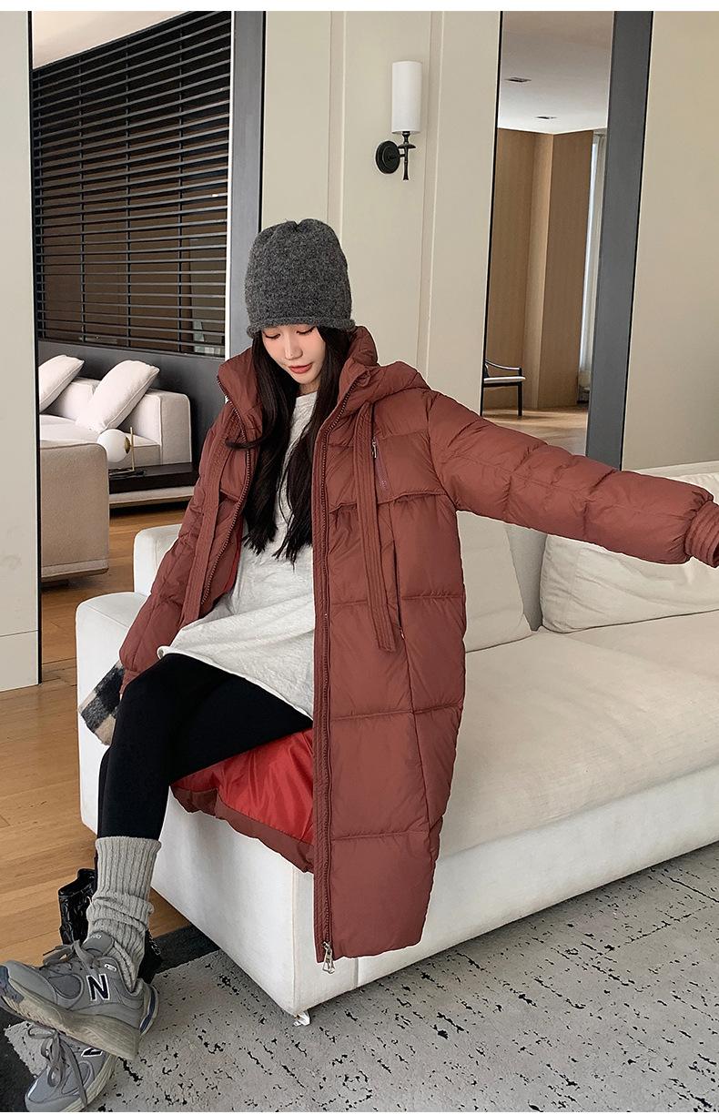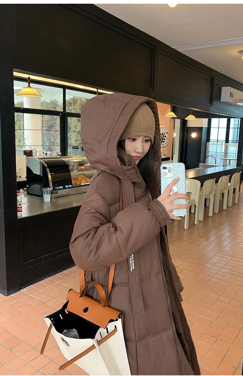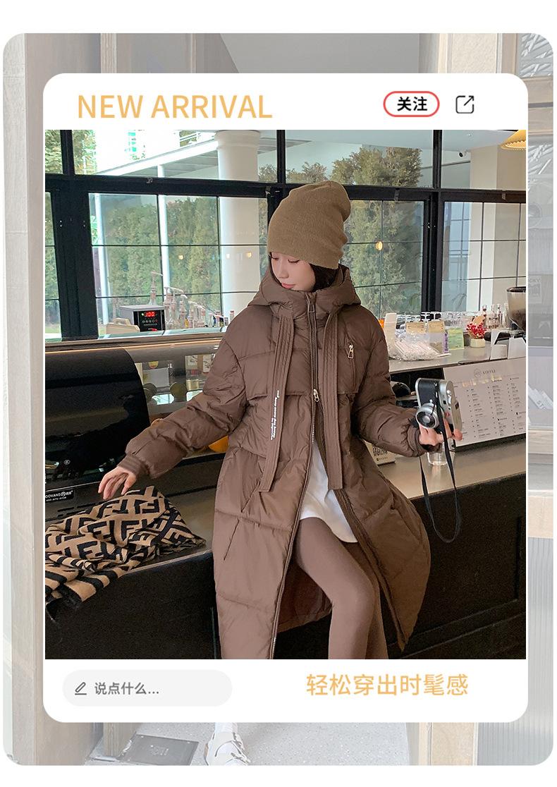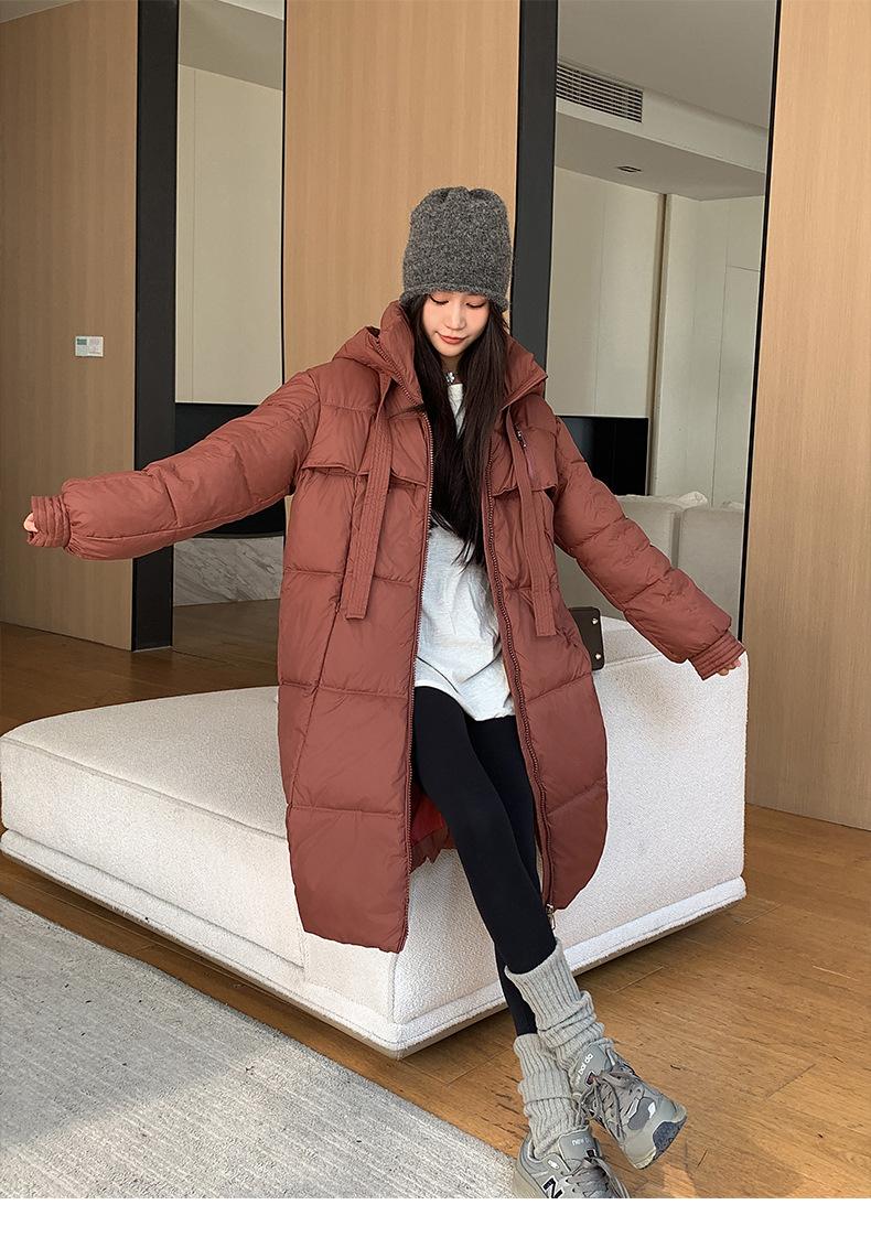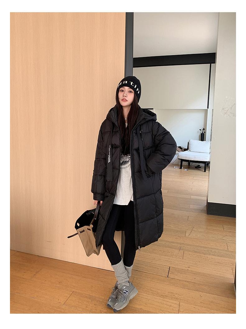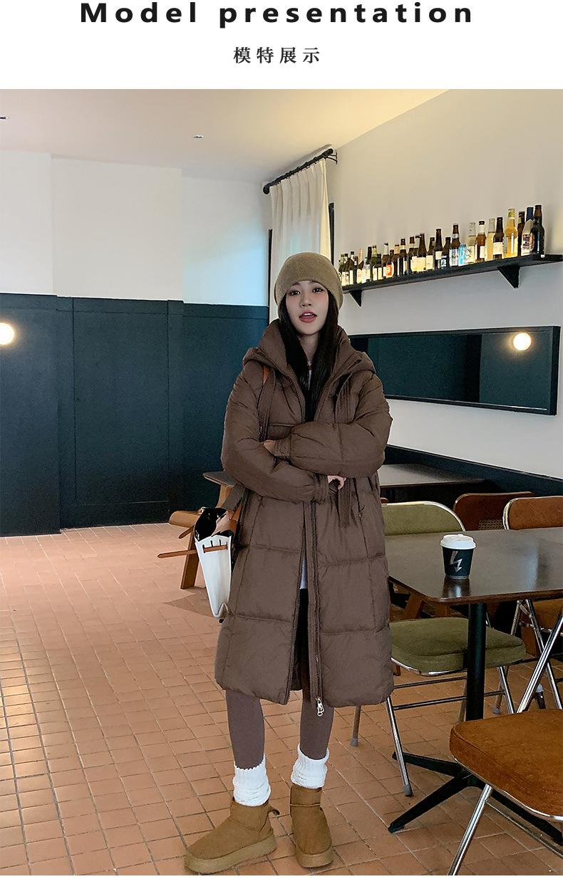 Chaqueta acolchada de algodón para mujer, larga, invierno 2024, nueva chaqueta acolchada de algodón gruesa y suelta con borde cruzado, abrigo cálido con capucha para mujer