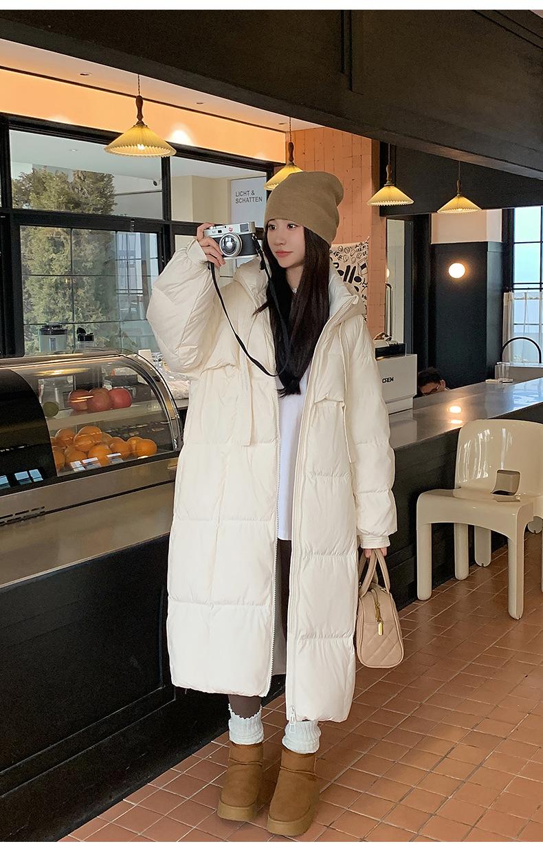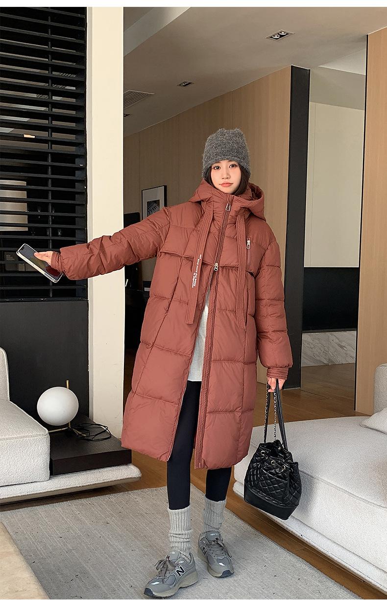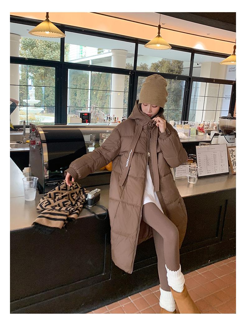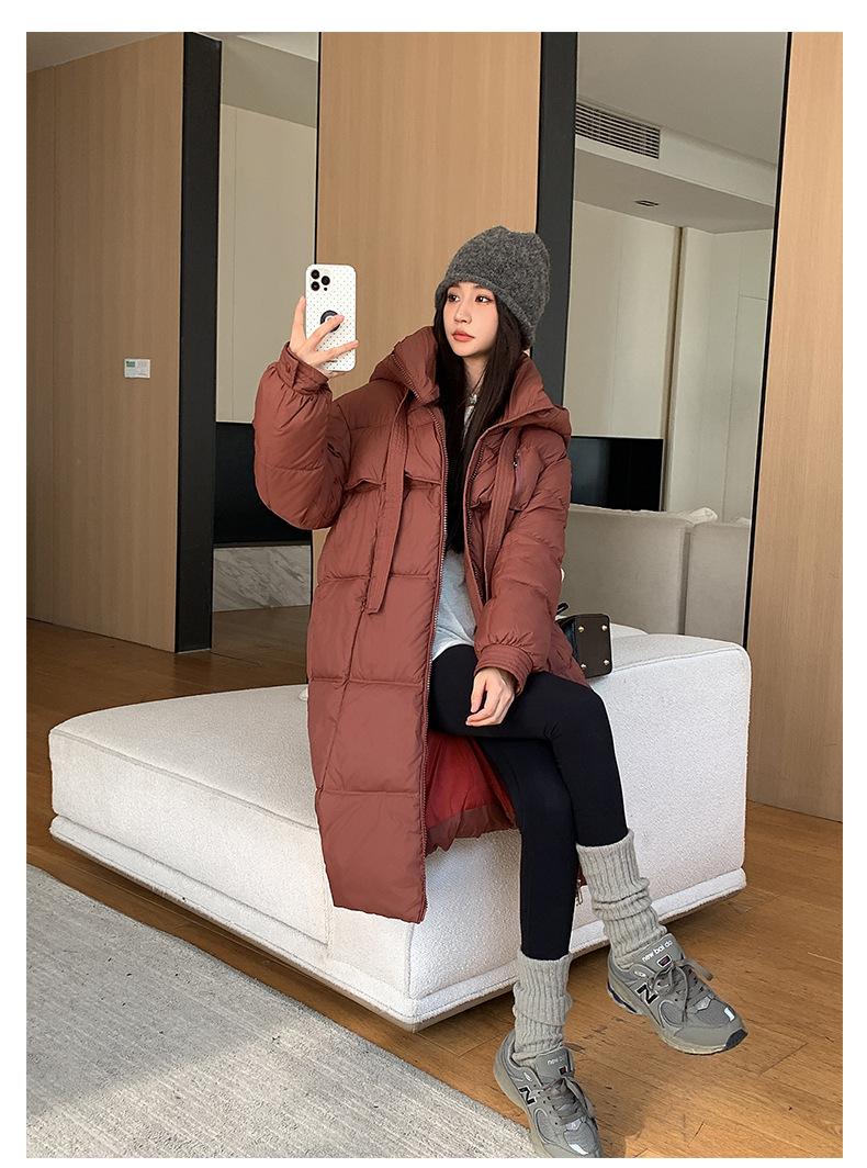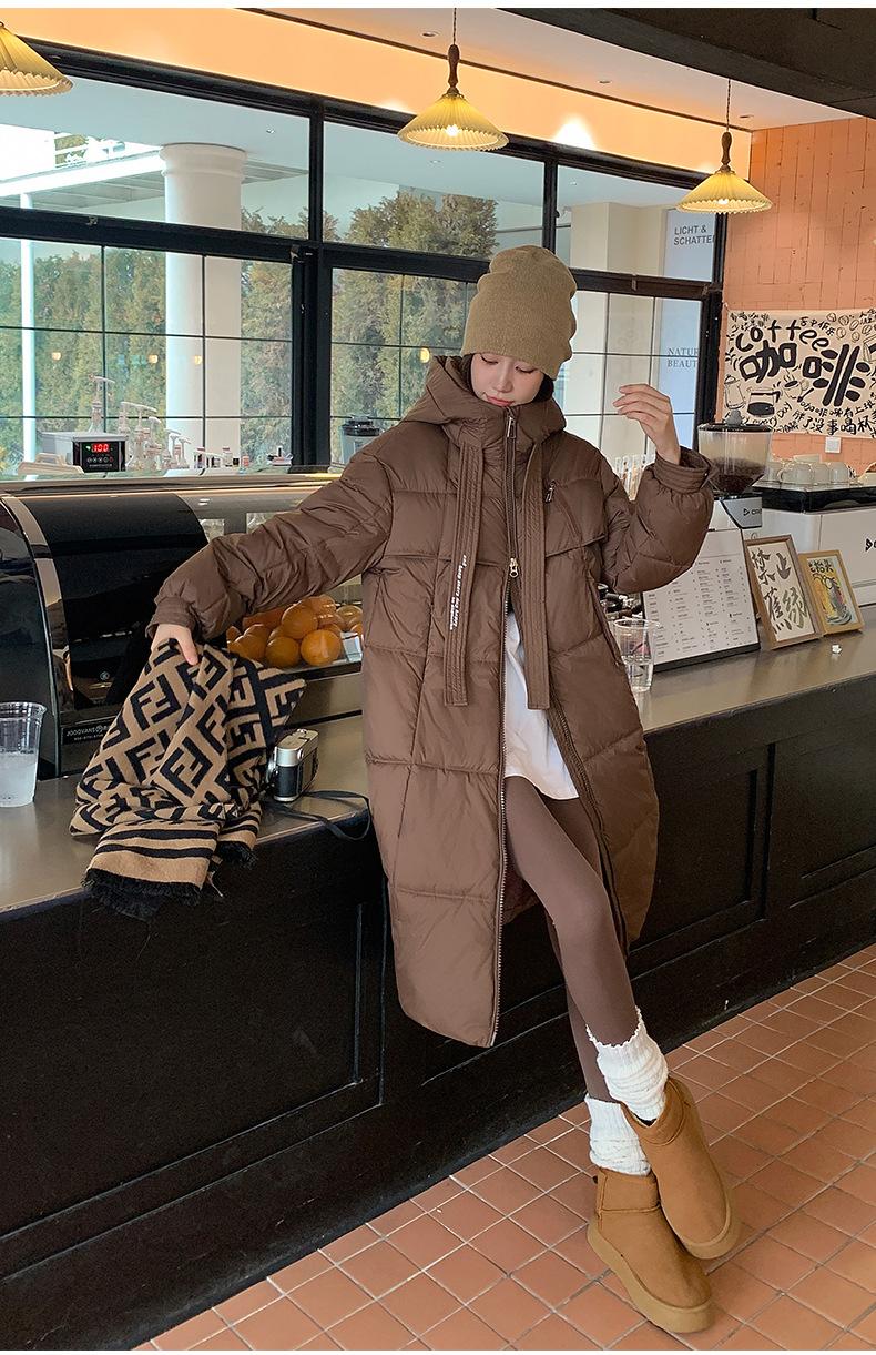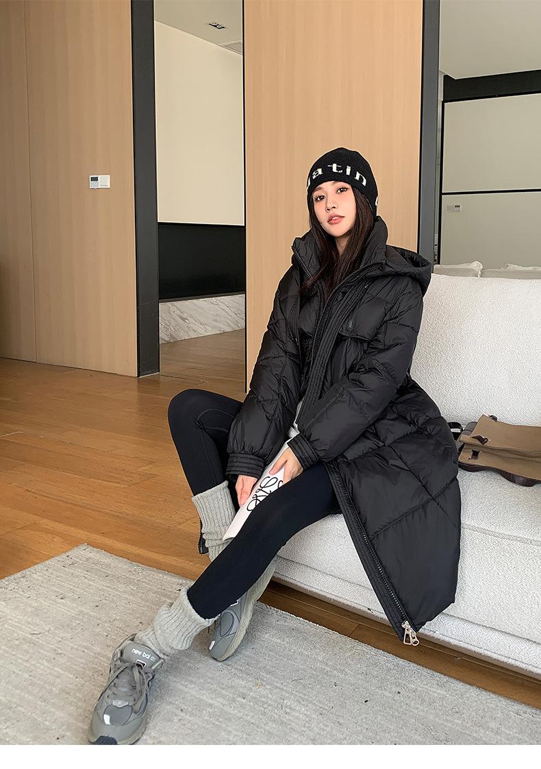 Chaqueta acolchada de algodón para mujer, larga, invierno 2024, nueva chaqueta acolchada de algodón gruesa y suelta con borde cruzado, abrigo cálido con capucha para mujer