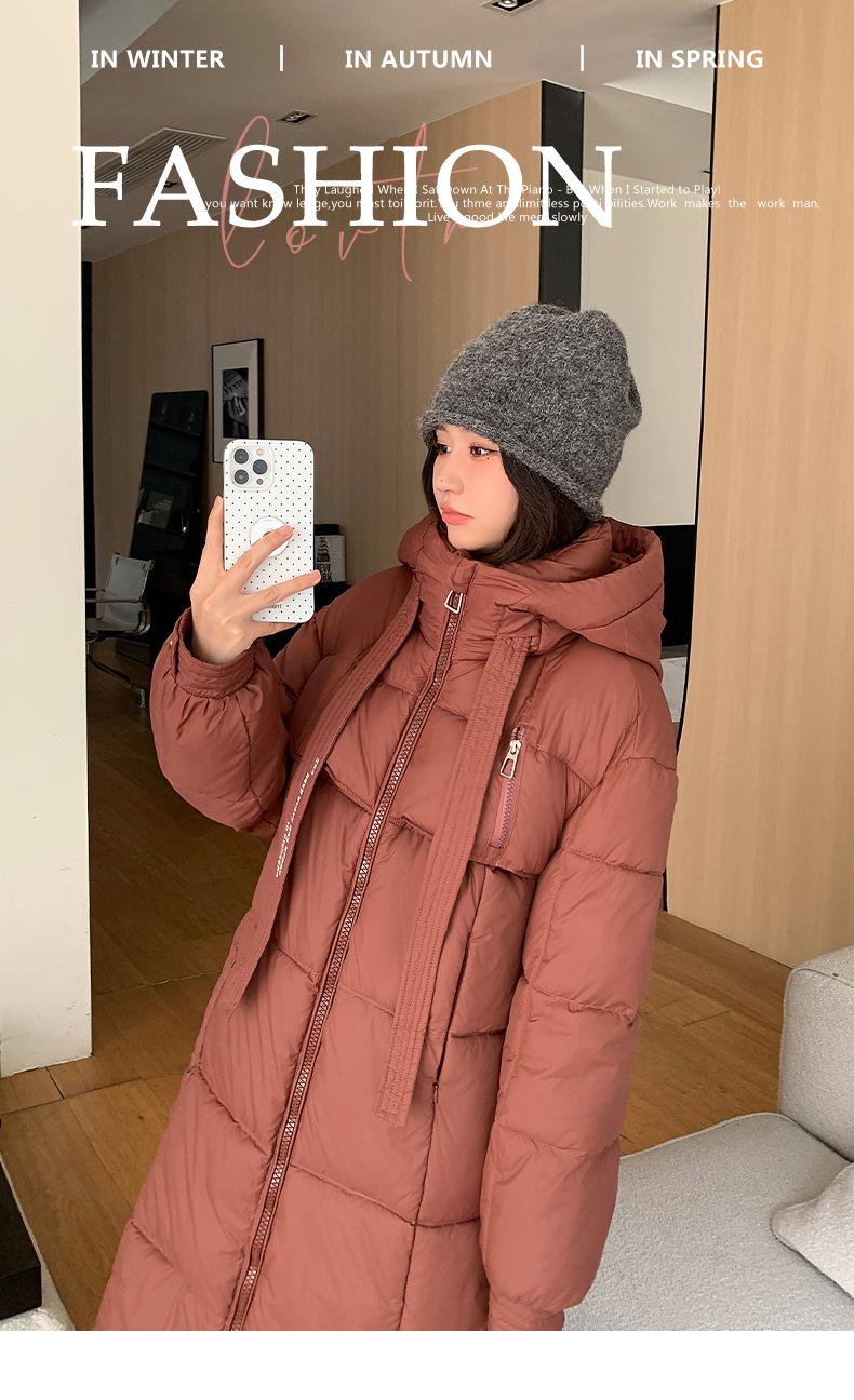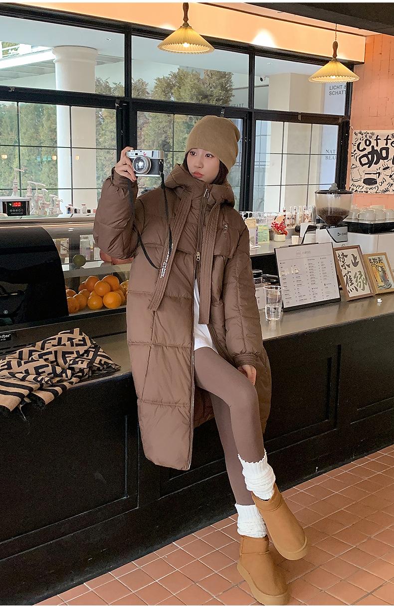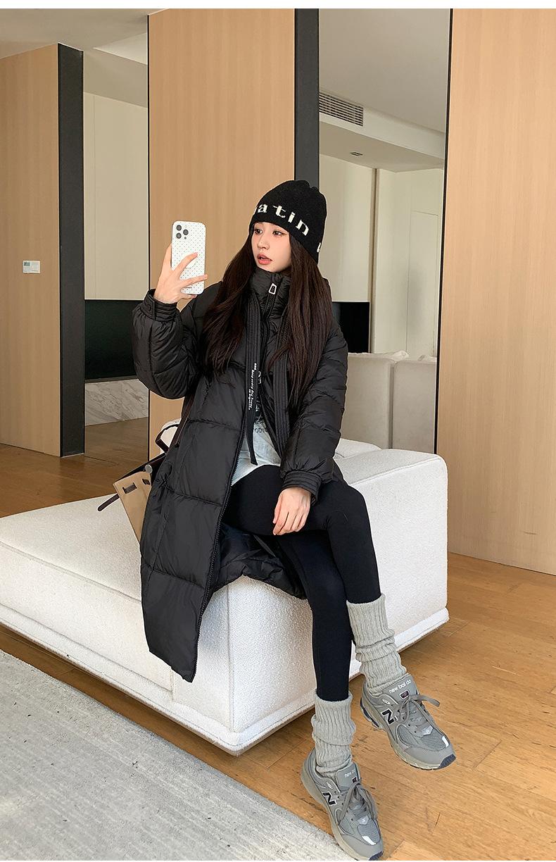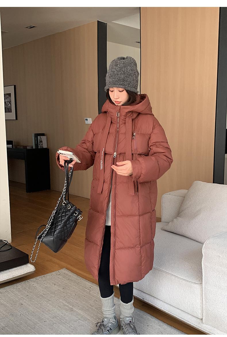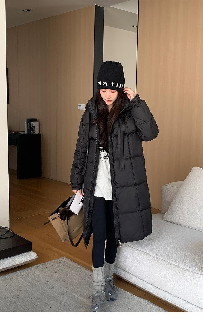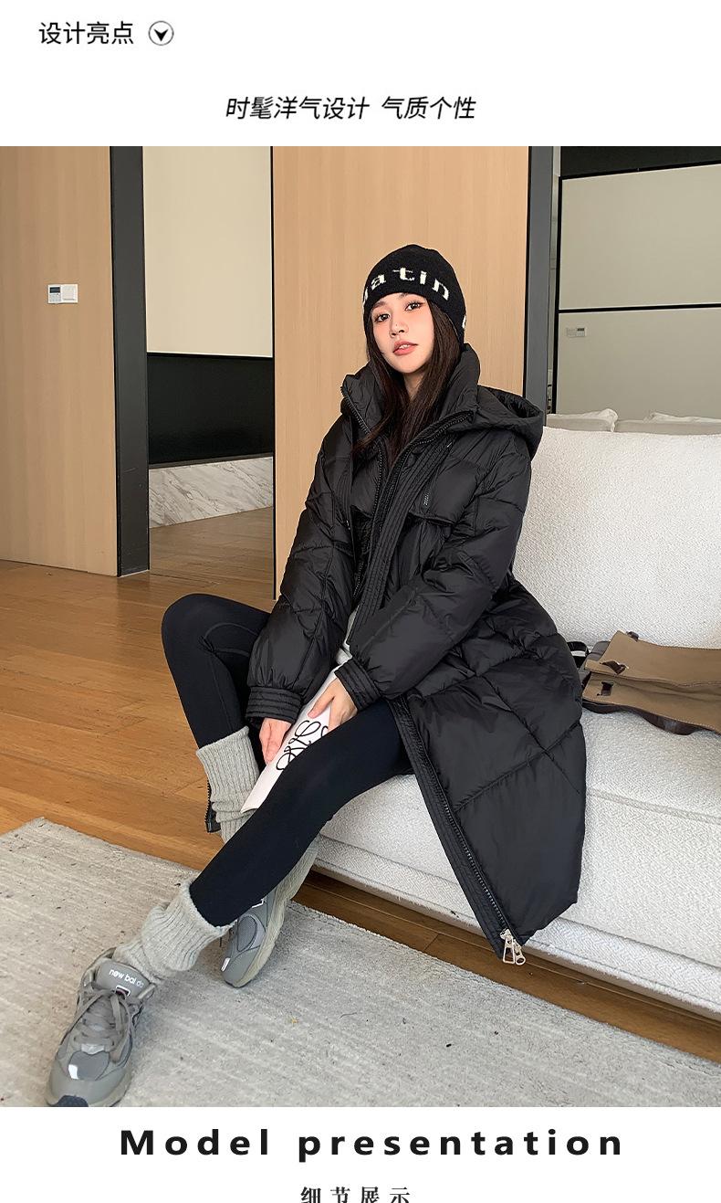 Chaqueta acolchada de algodón para mujer, larga, invierno 2024, nueva chaqueta acolchada de algodón gruesa y suelta con borde cruzado, abrigo cálido con capucha para mujer