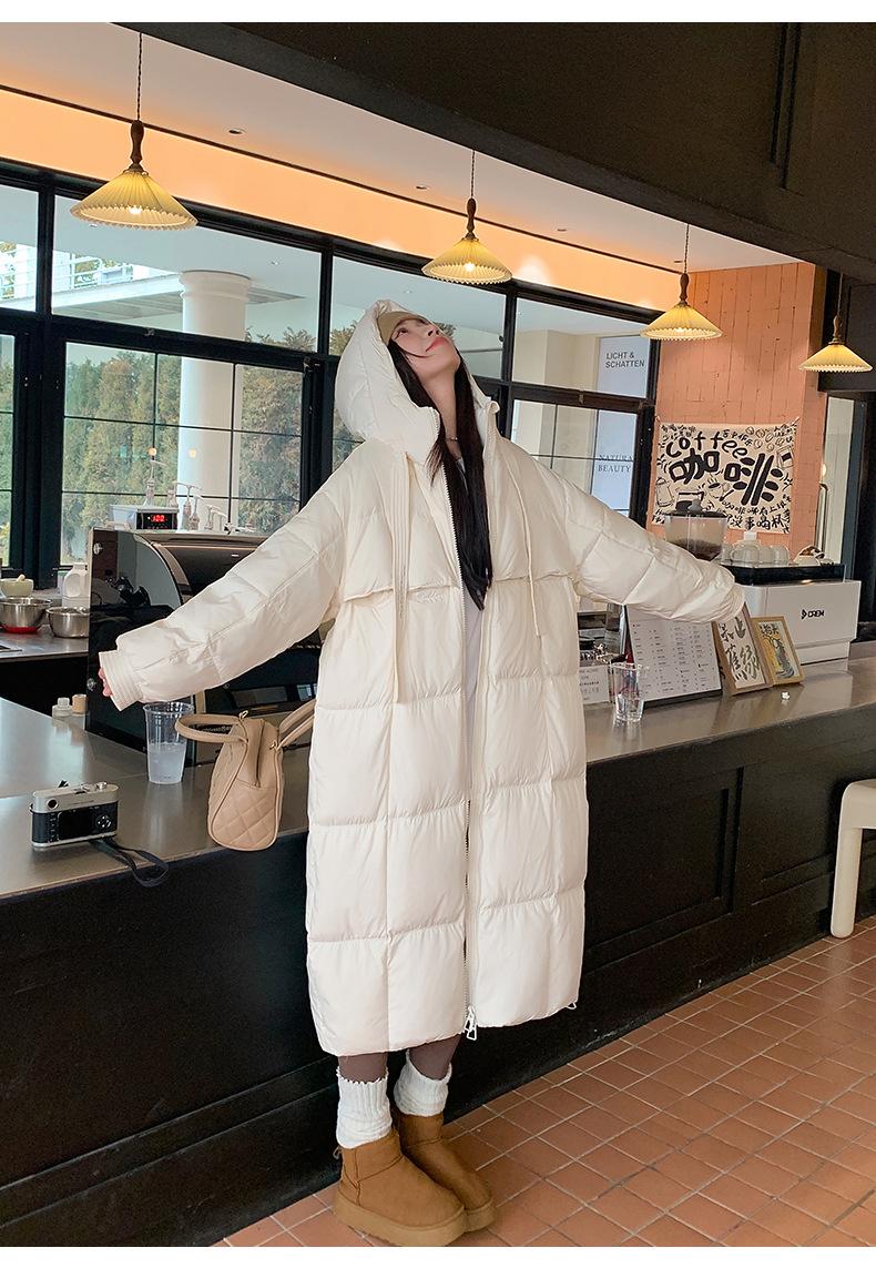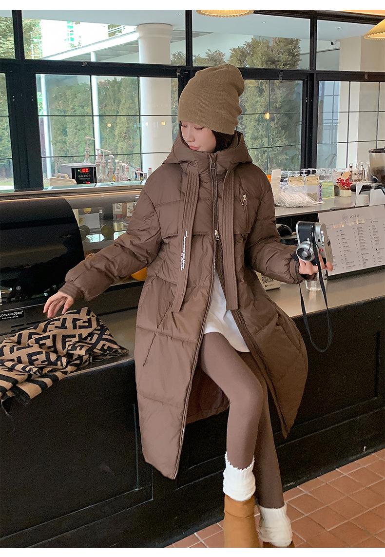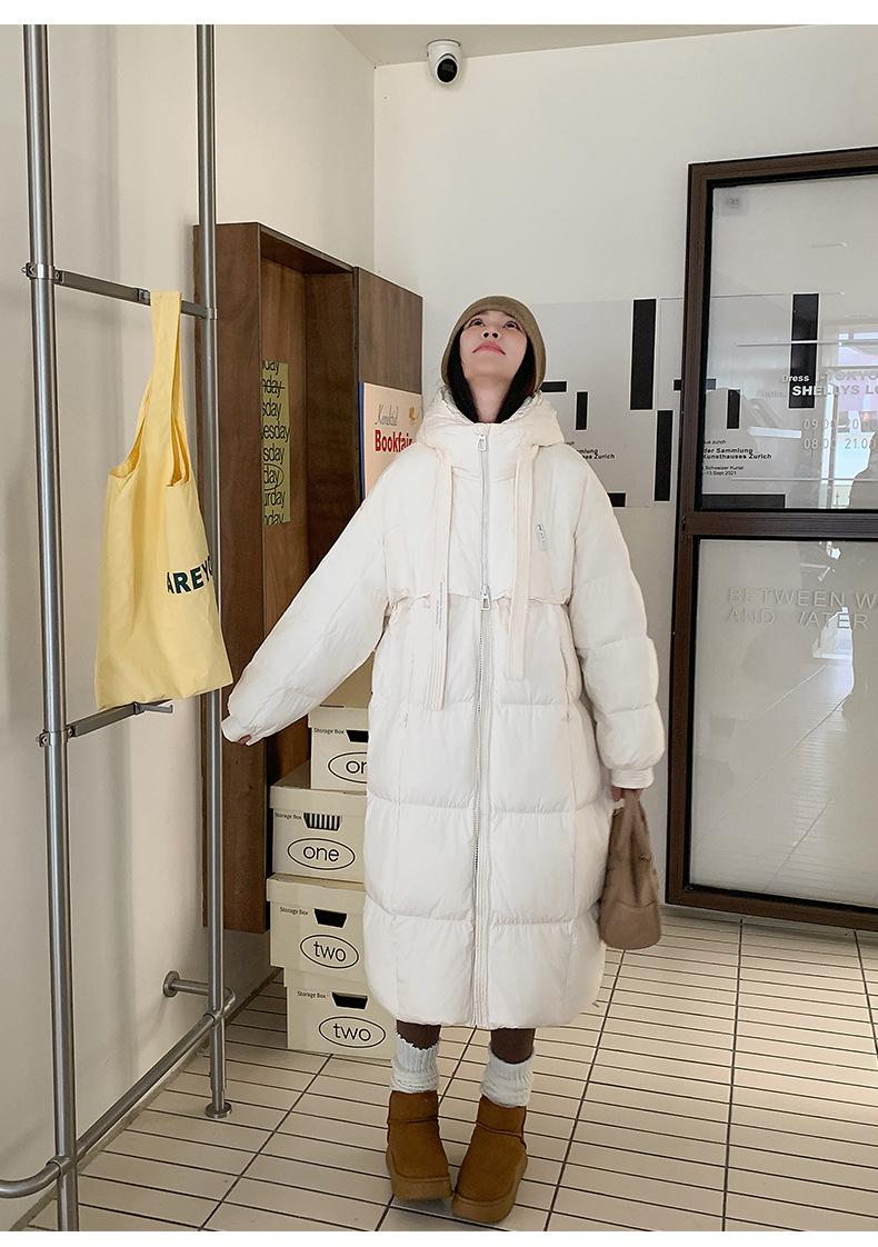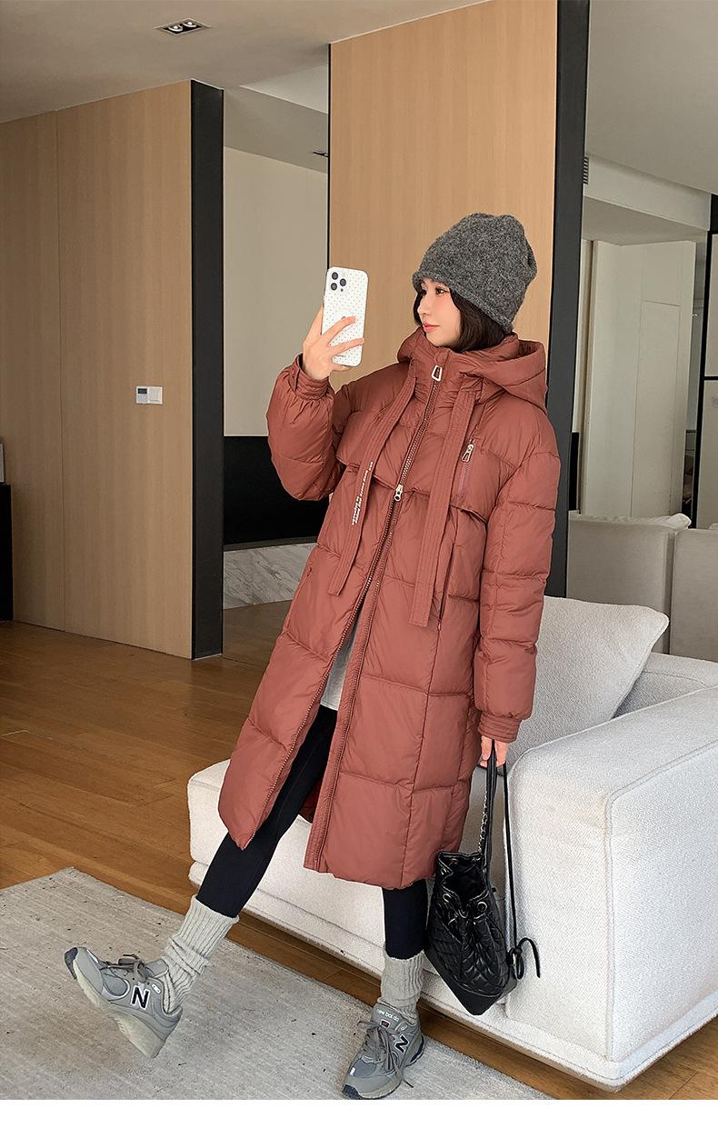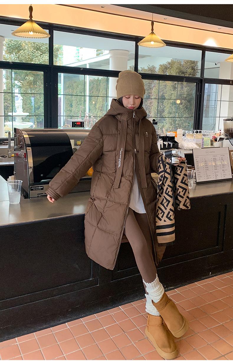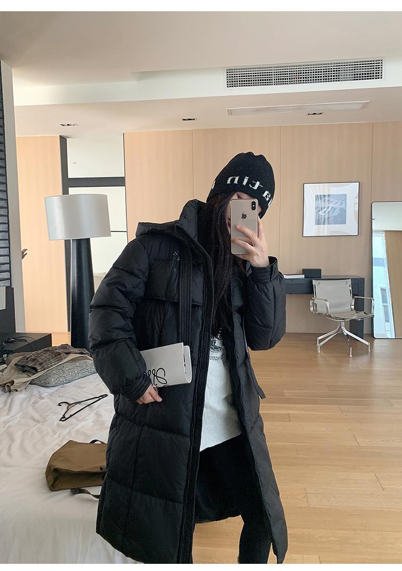 Chaqueta acolchada de algodón para mujer, larga, invierno 2024, nueva chaqueta acolchada de algodón gruesa y suelta con borde cruzado, abrigo cálido con capucha para mujer
