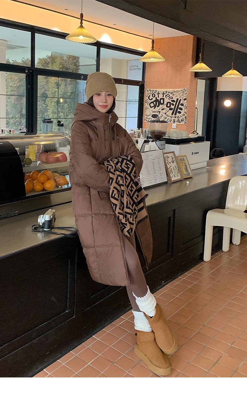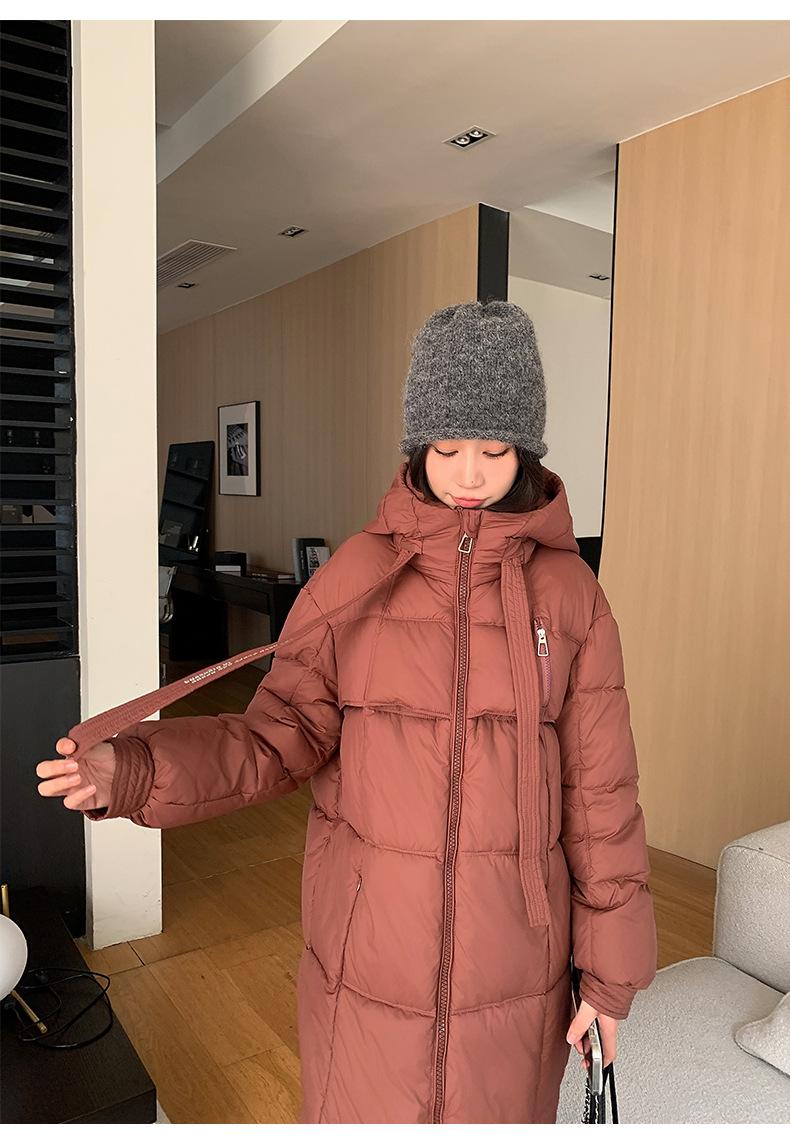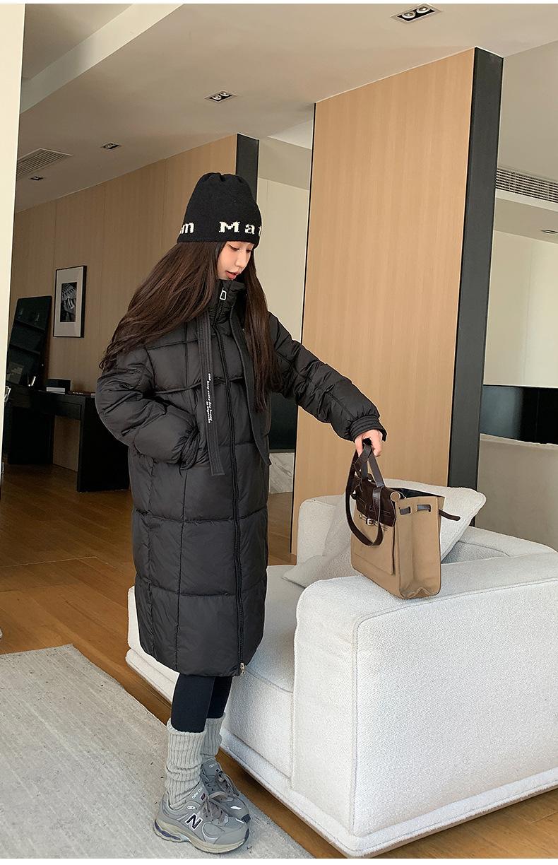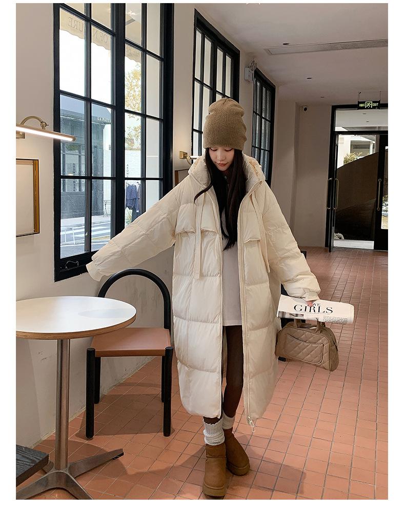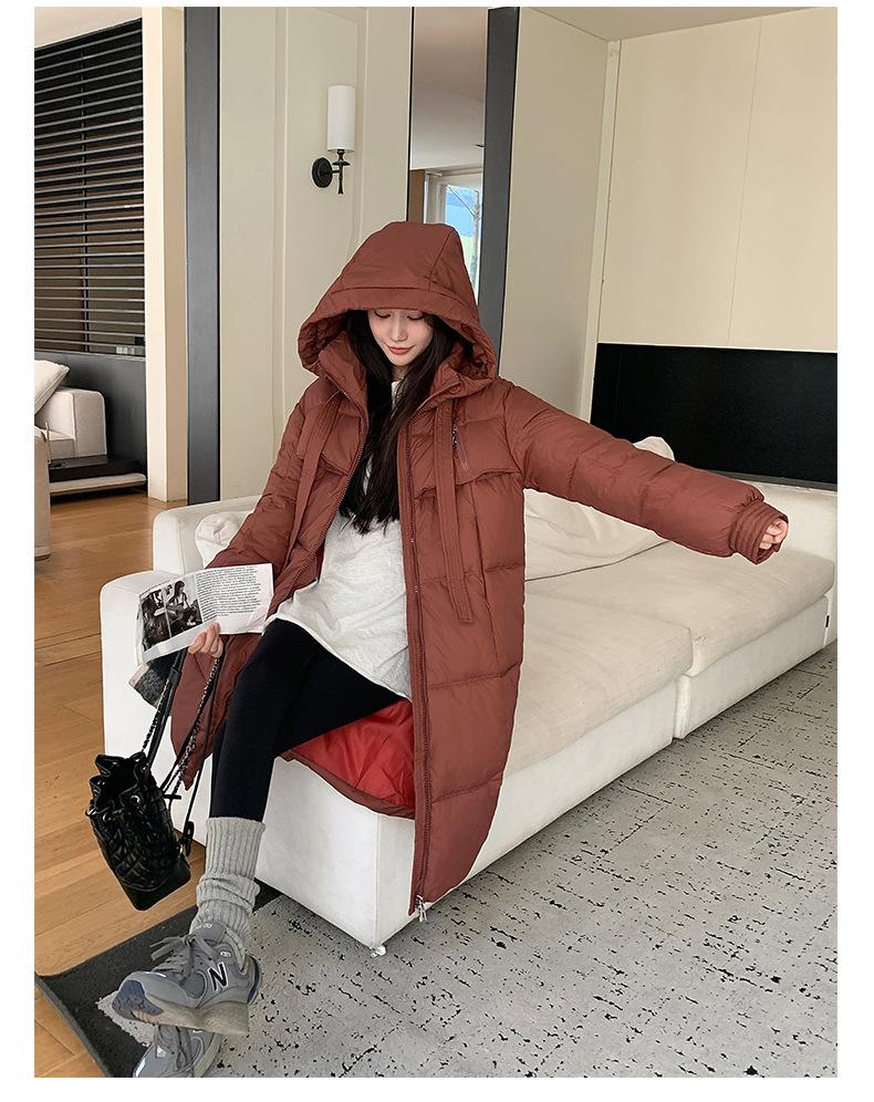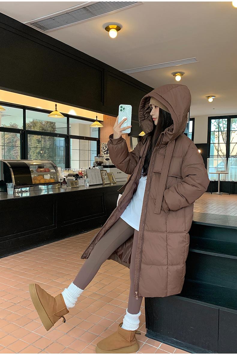 Chaqueta acolchada de algodón para mujer, larga, invierno 2024, nueva chaqueta acolchada de algodón gruesa y suelta con borde cruzado, abrigo cálido con capucha para mujer