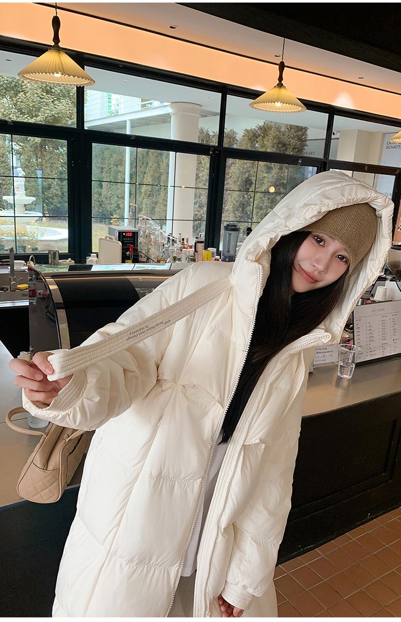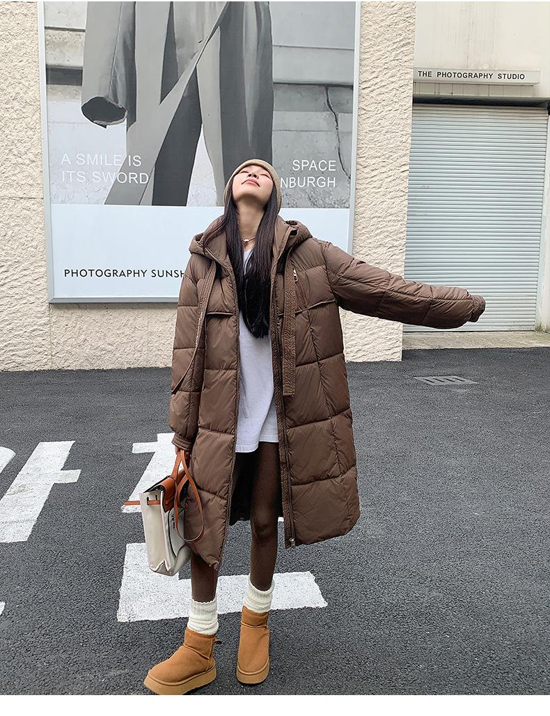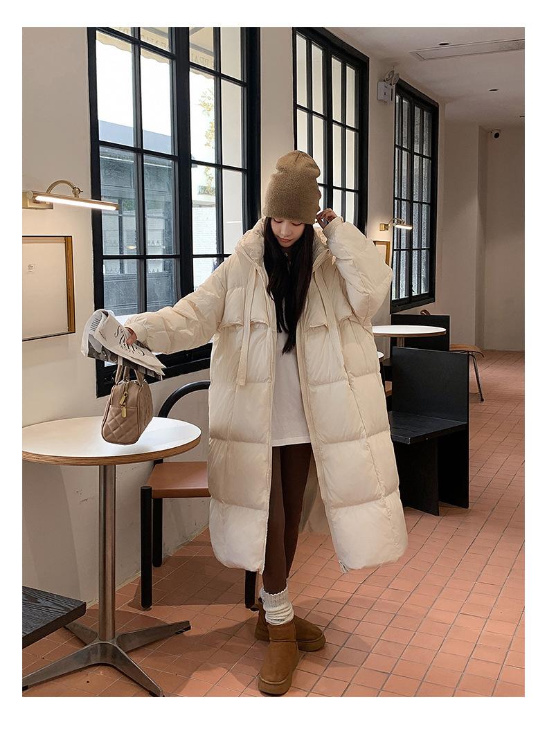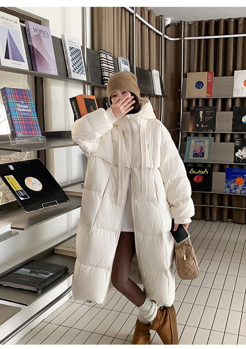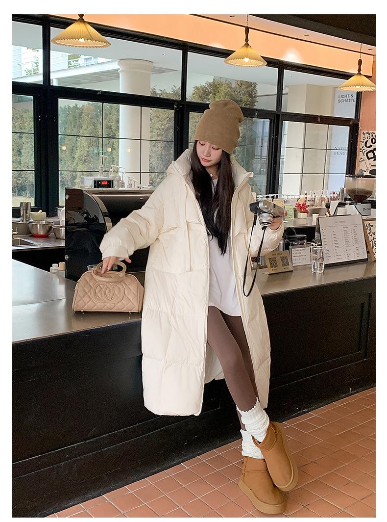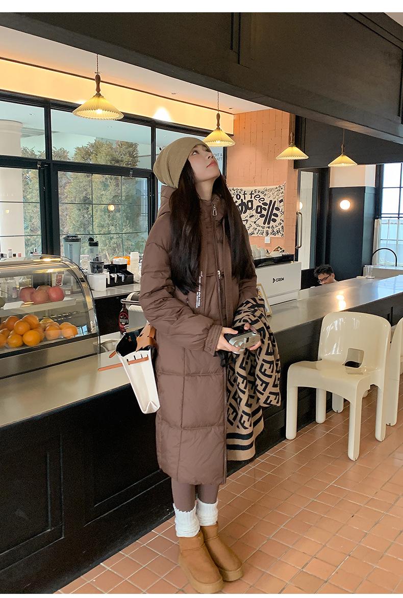 Chaqueta acolchada de algodón para mujer, larga, invierno 2024, nueva chaqueta acolchada de algodón gruesa y suelta con borde cruzado, abrigo cálido con capucha para mujer