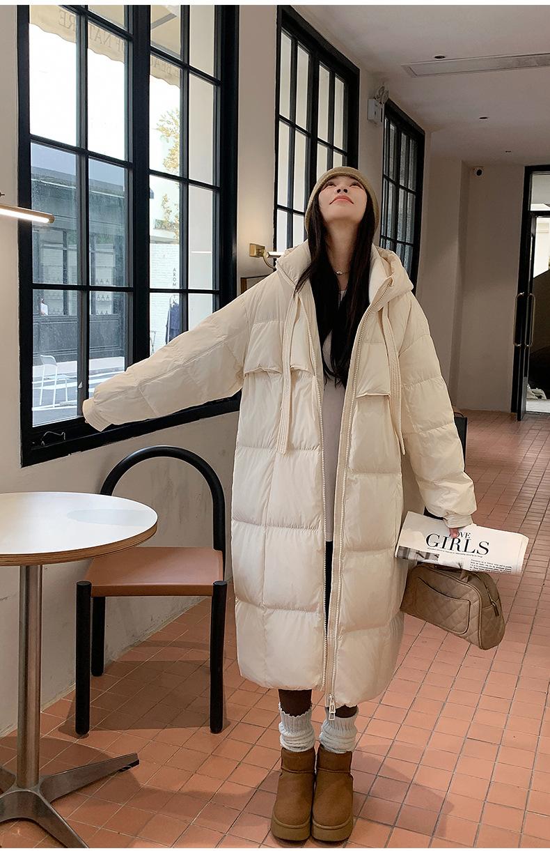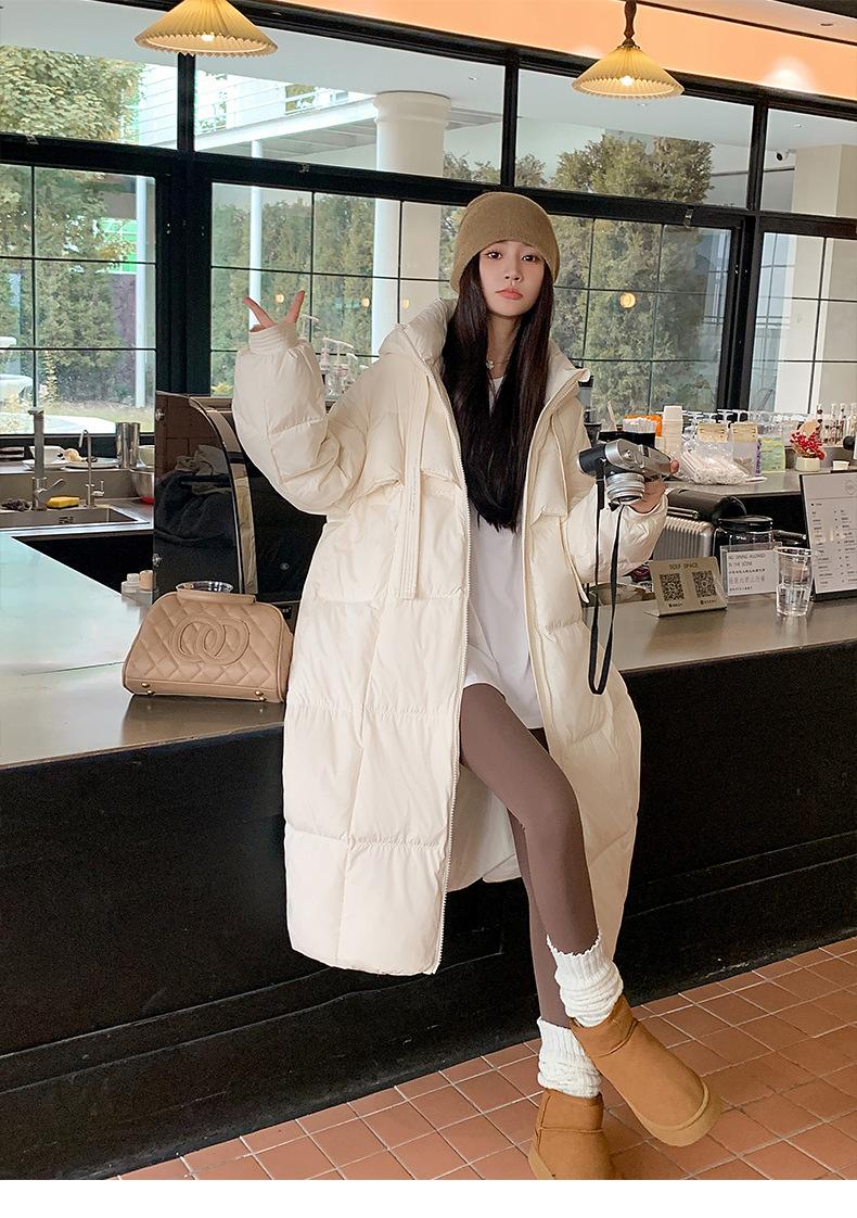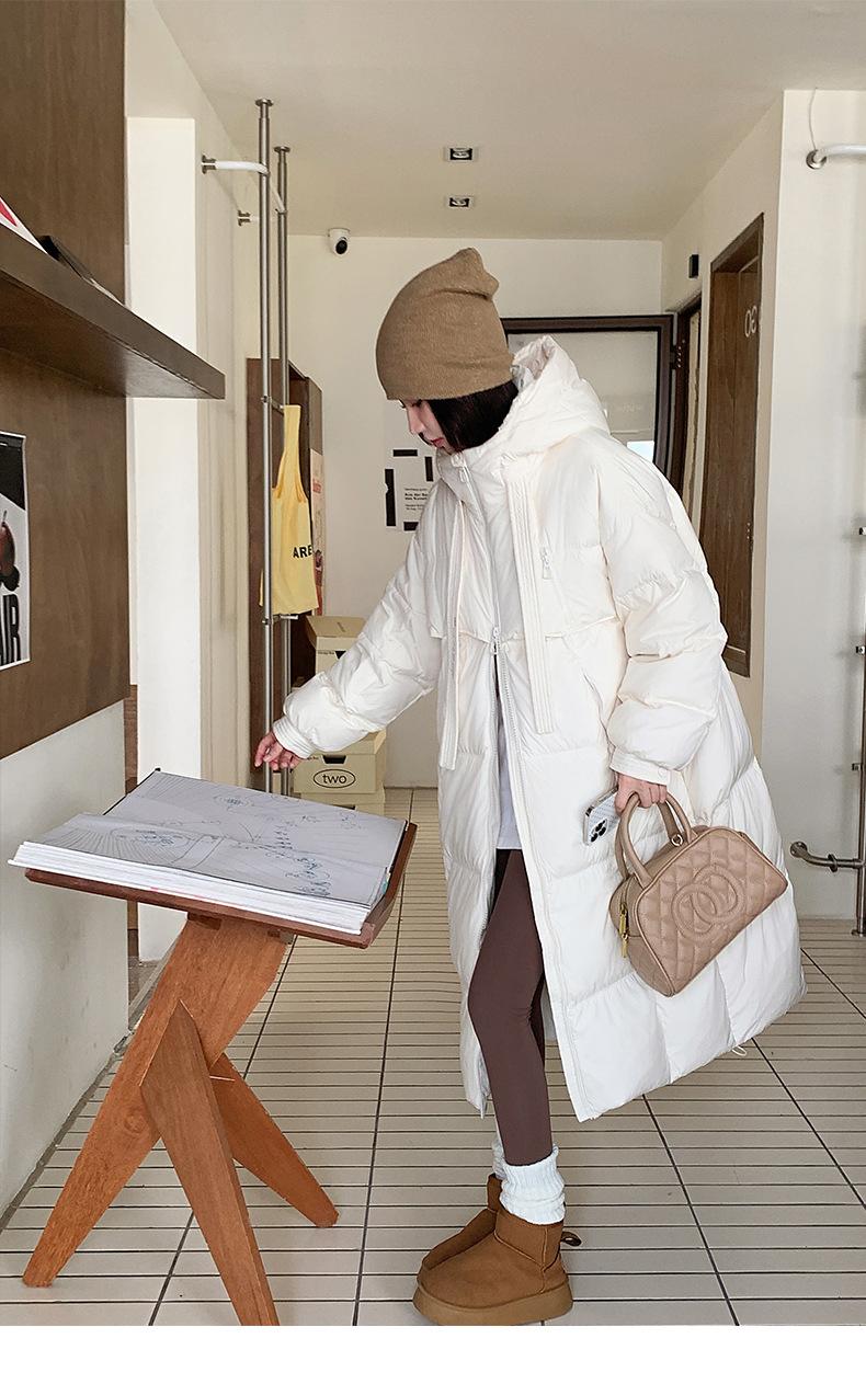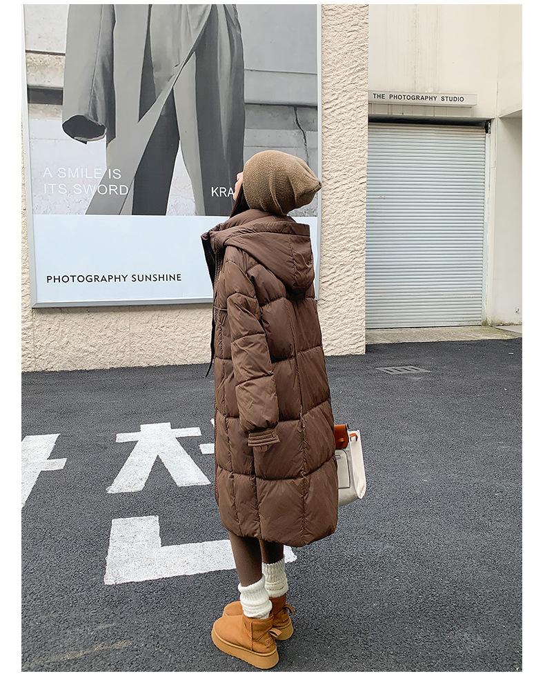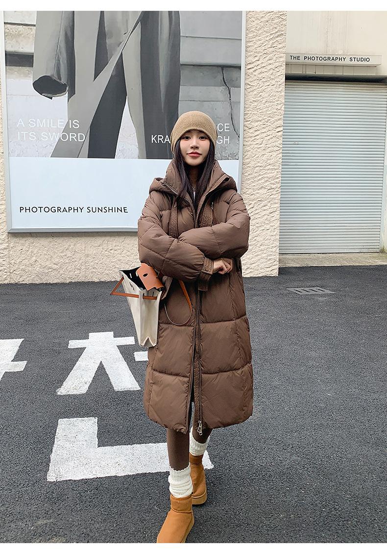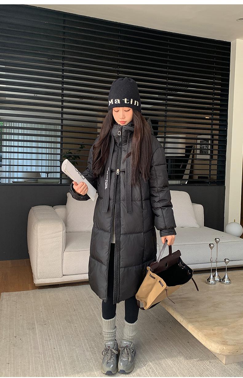 Chaqueta acolchada de algodón para mujer, larga, invierno 2024, nueva chaqueta acolchada de algodón gruesa y suelta con borde cruzado, abrigo cálido con capucha para mujer