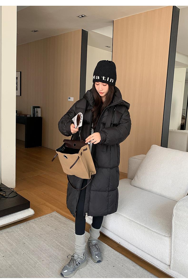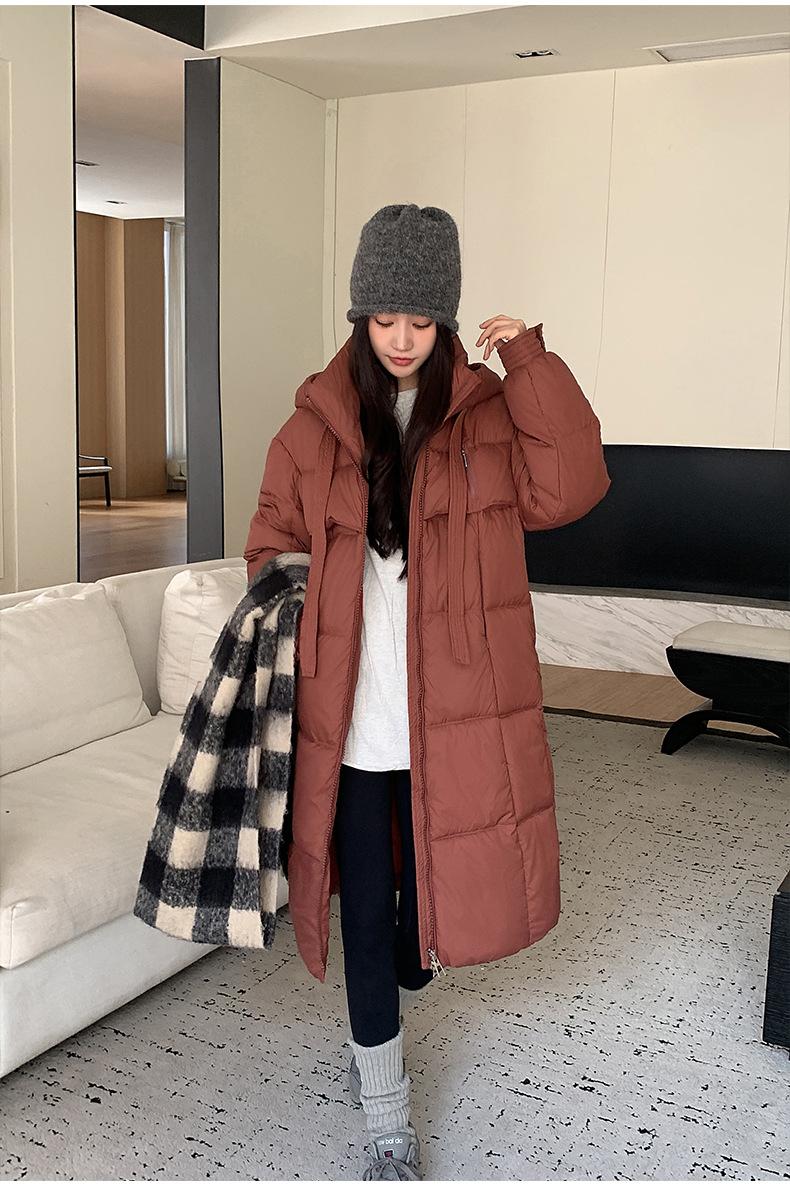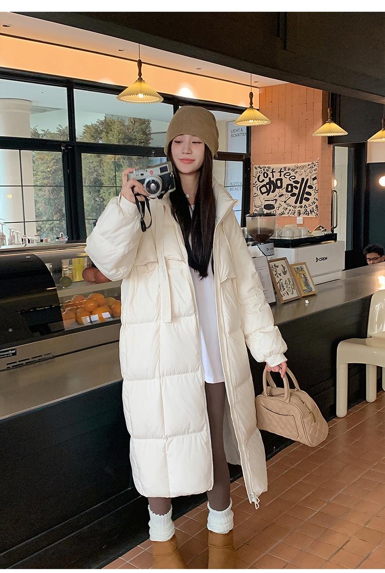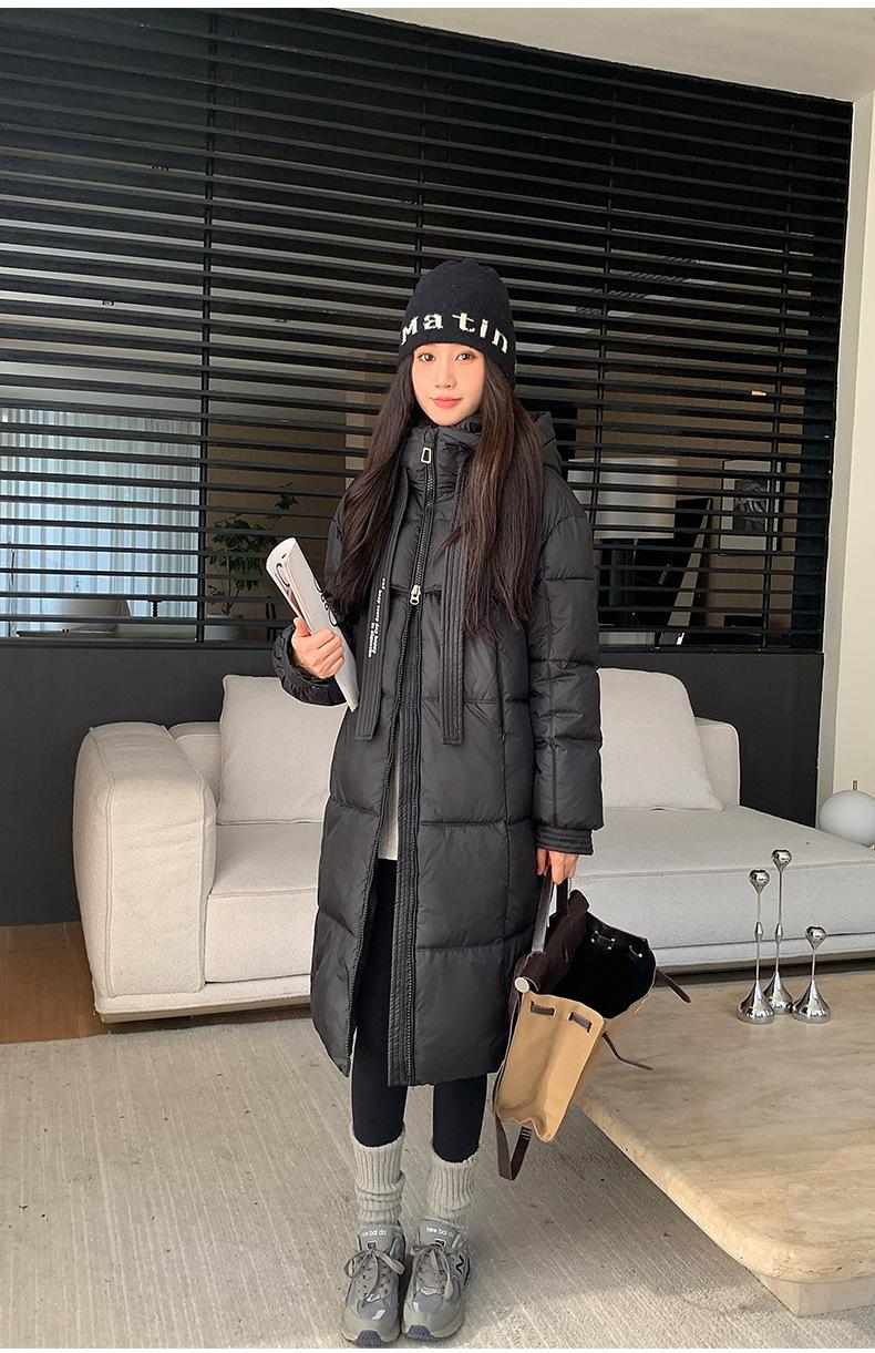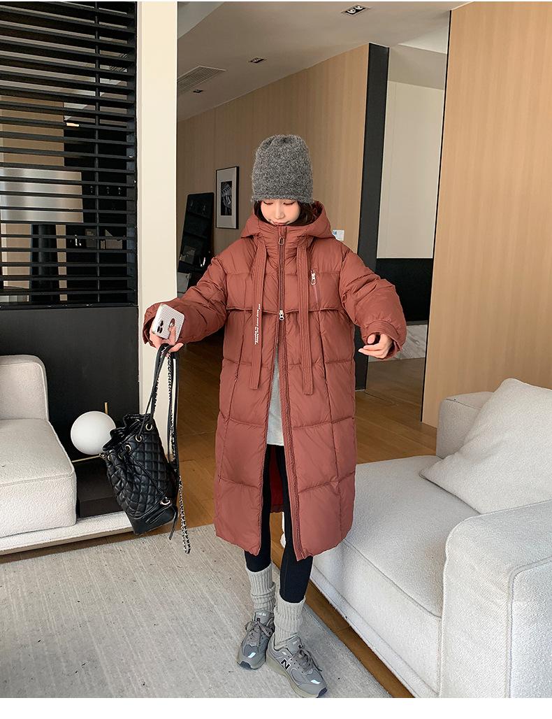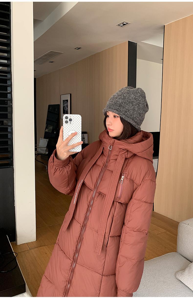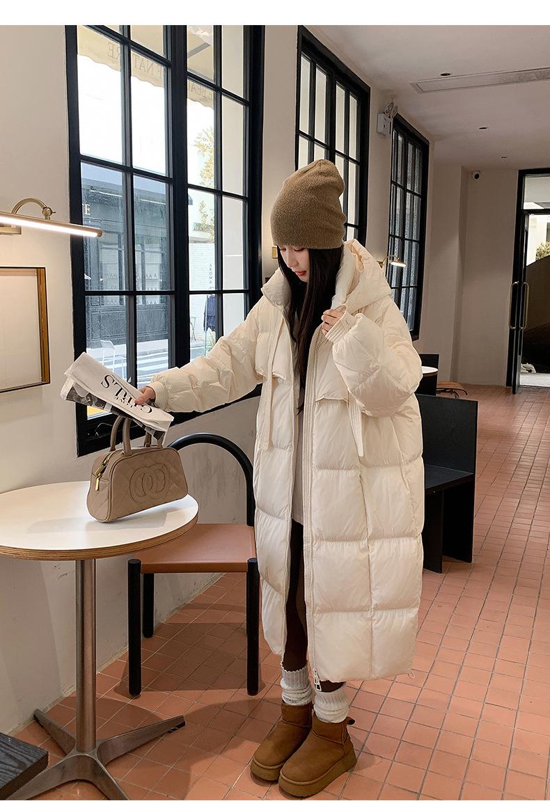 Chaqueta acolchada de algodón para mujer, larga, invierno 2024, nueva chaqueta acolchada de algodón gruesa y suelta con borde cruzado, abrigo cálido con capucha para mujer