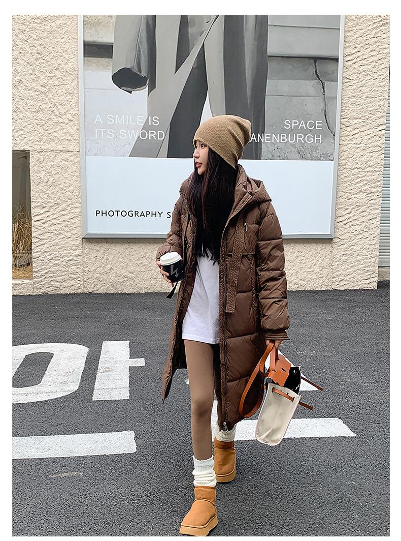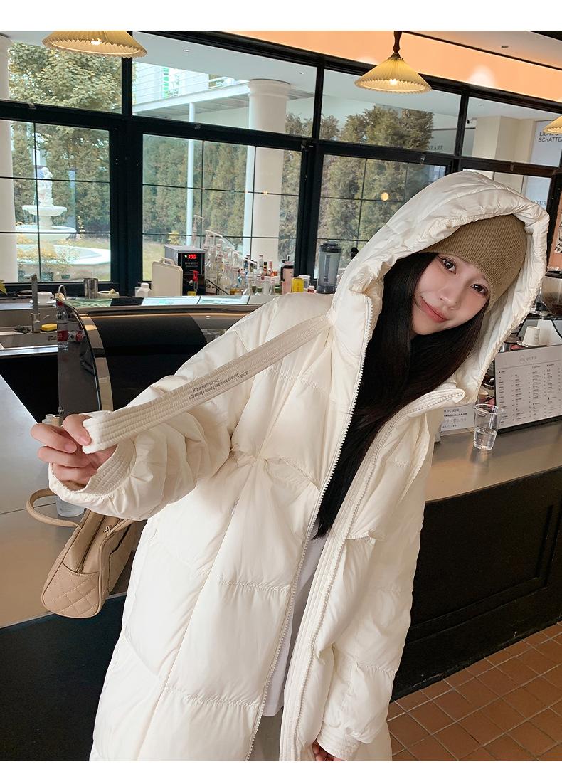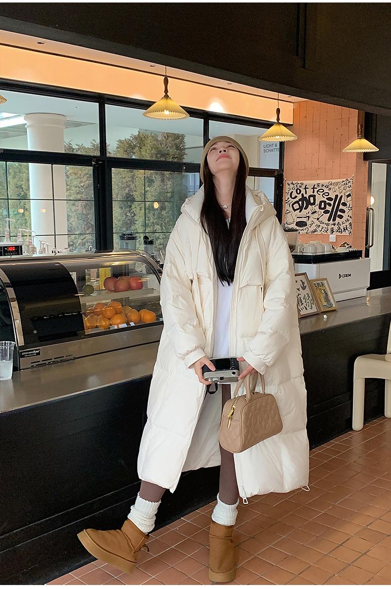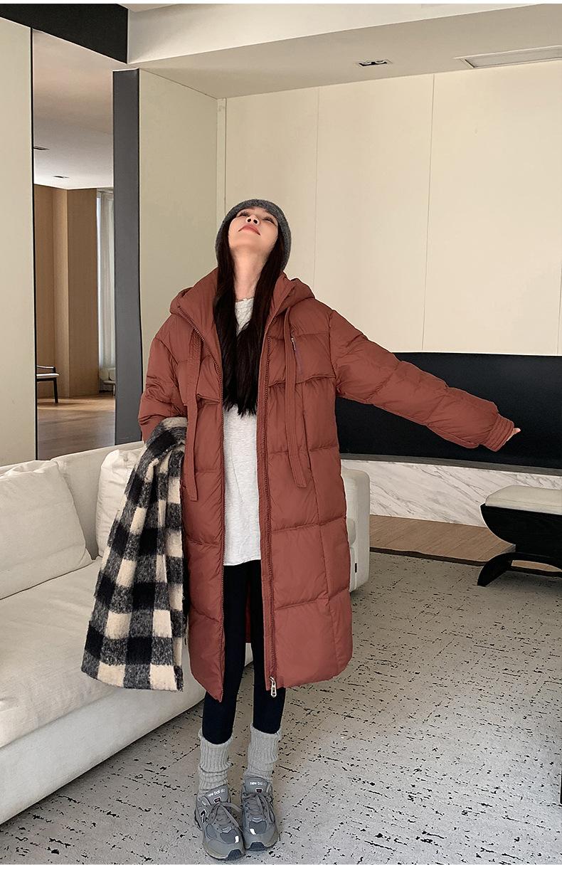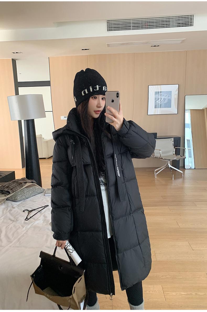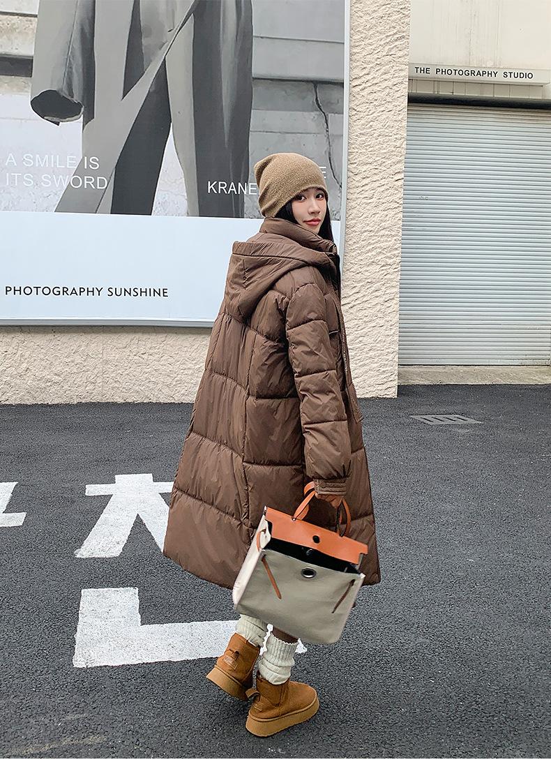 Chaqueta acolchada de algodón para mujer, larga, invierno 2024, nueva chaqueta acolchada de algodón gruesa y suelta con borde cruzado, abrigo cálido con capucha para mujer