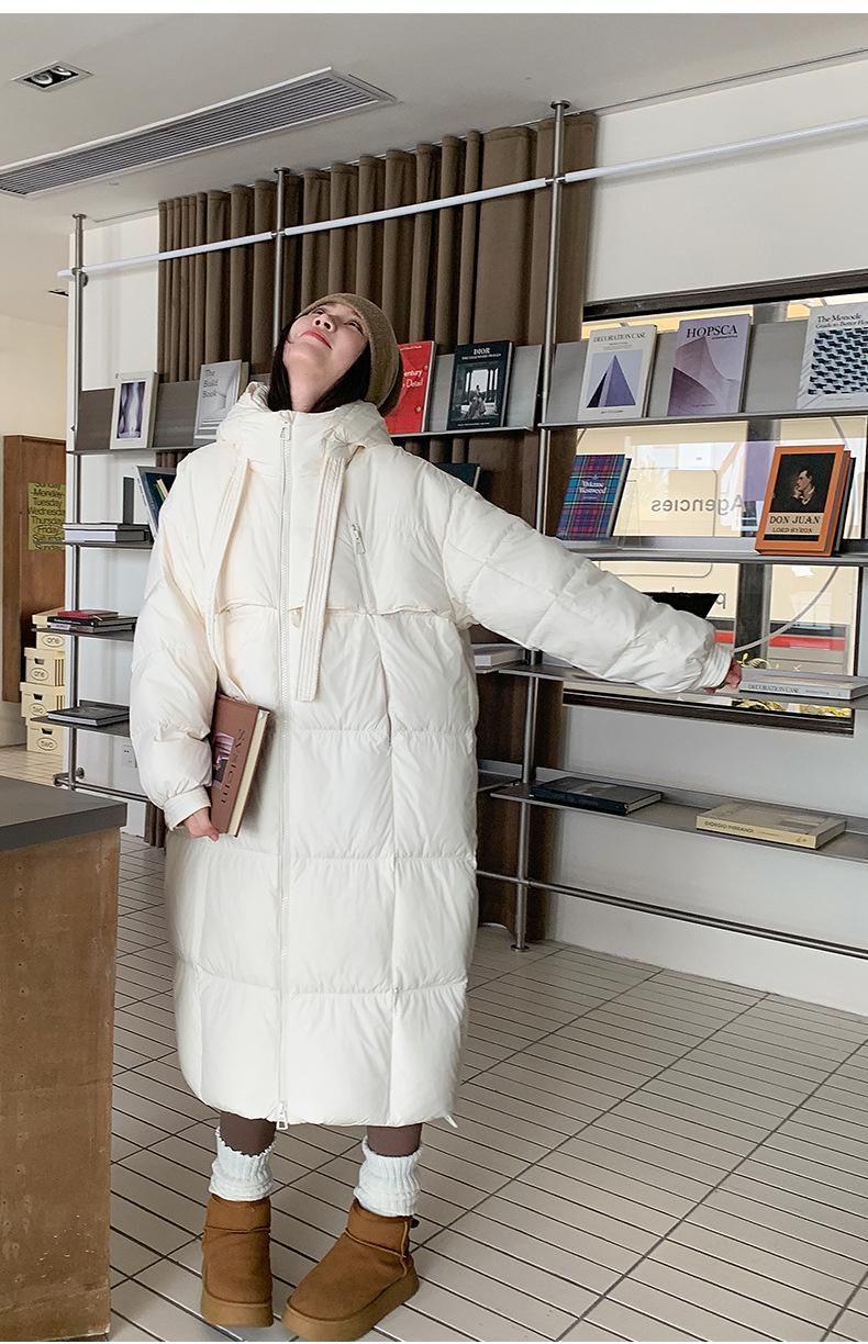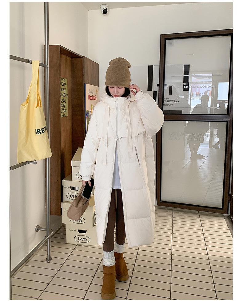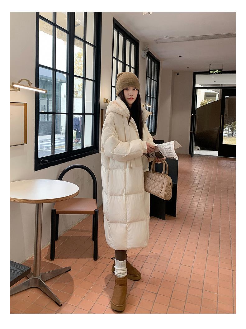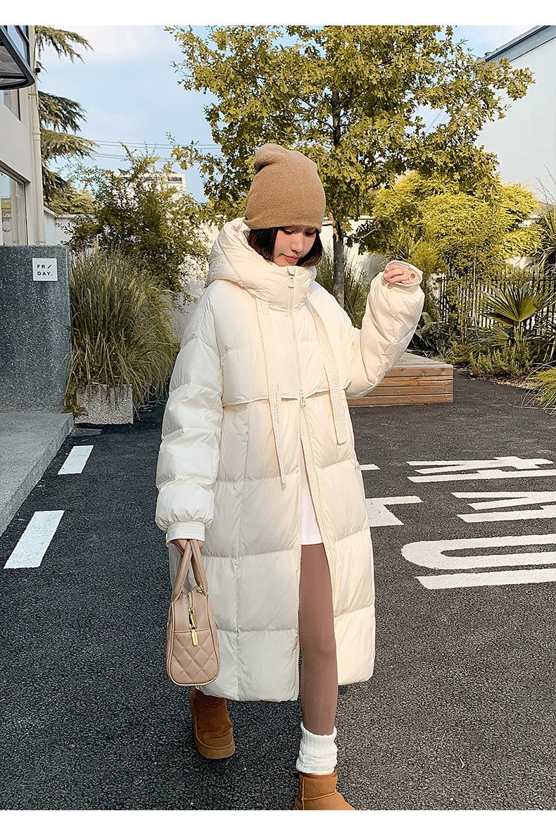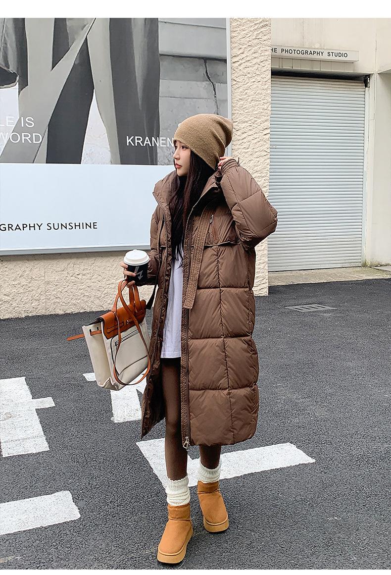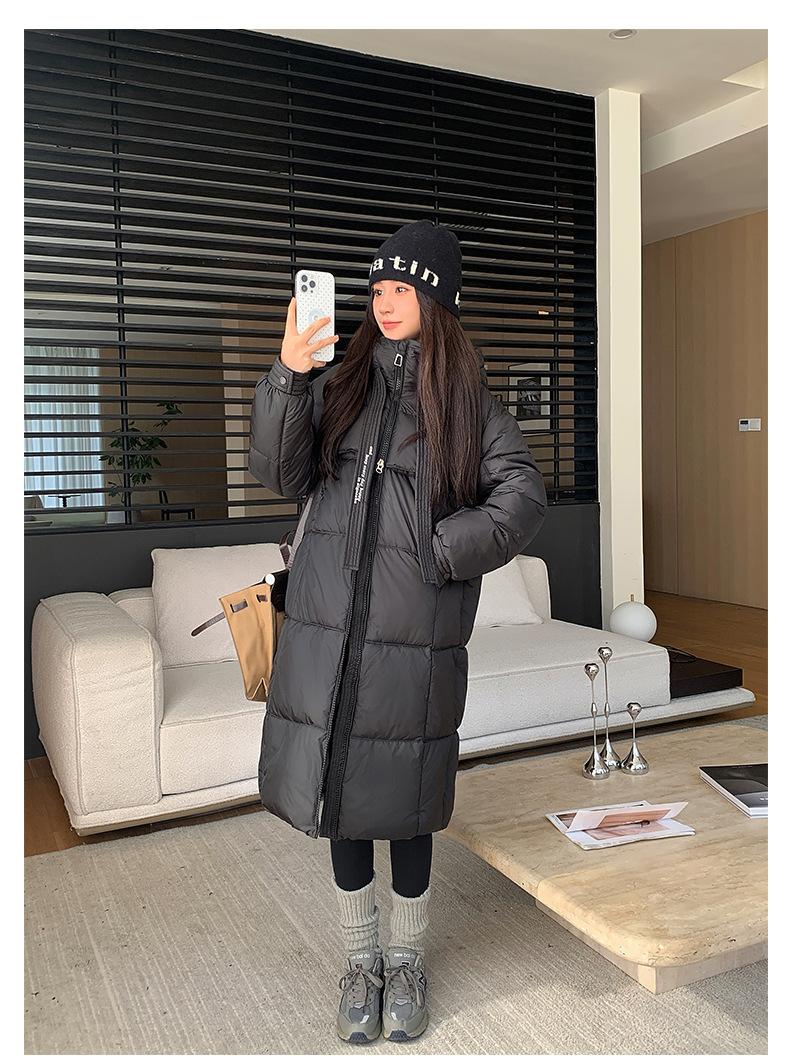 Chaqueta acolchada de algodón para mujer, larga, invierno 2024, nueva chaqueta acolchada de algodón gruesa y suelta con borde cruzado, abrigo cálido con capucha para mujer