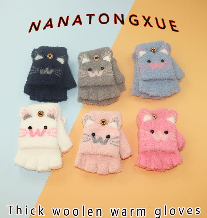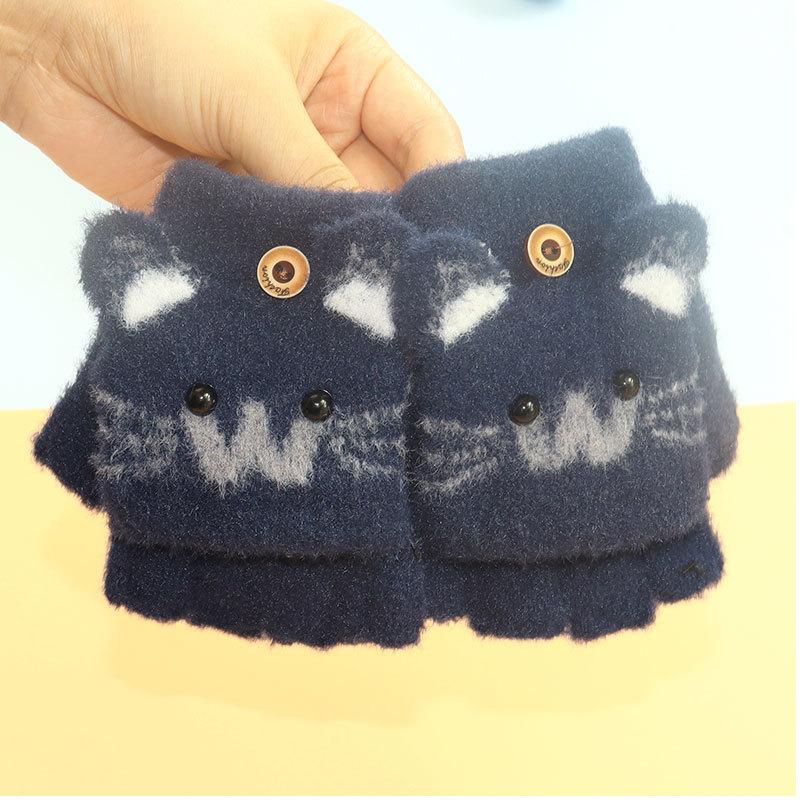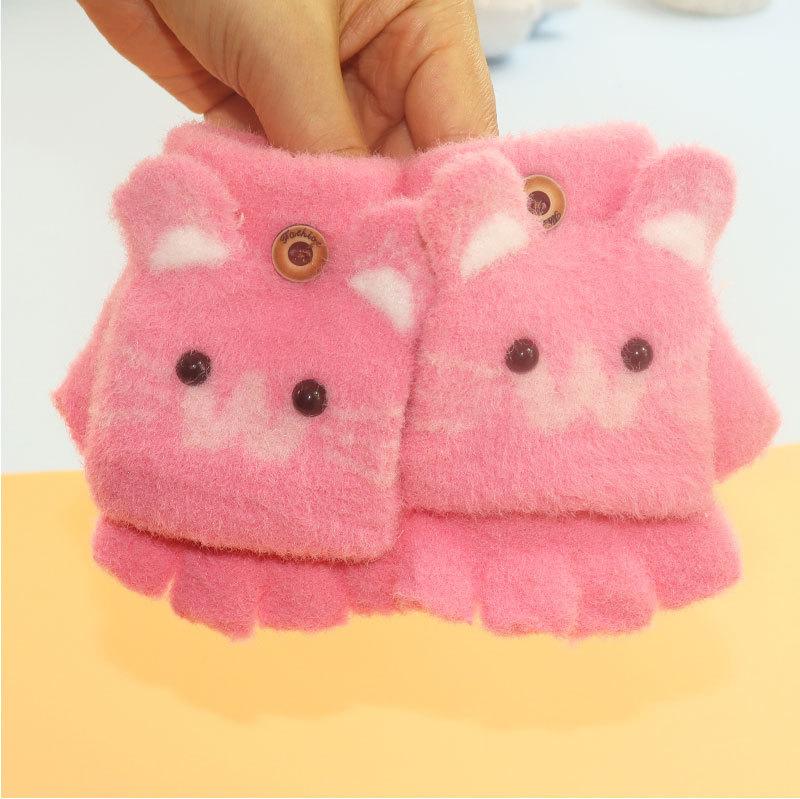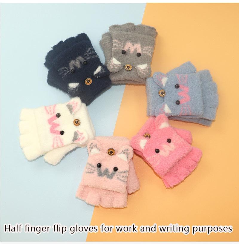 Guantes Infantiles de Medio Dedo con Solapa Invierno Gruesos para Niños Estudiantes de Primaria Escritura a Prueba de Frío Cinco Dedos Niños Medianos y Grandes y Niñas Cálidos