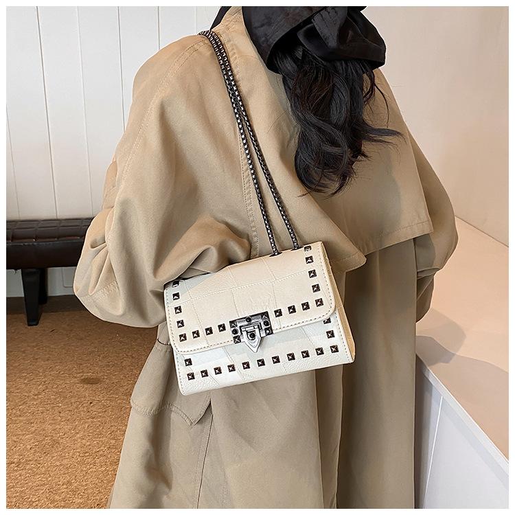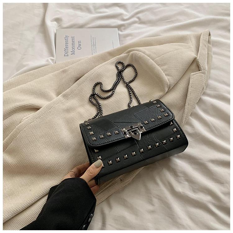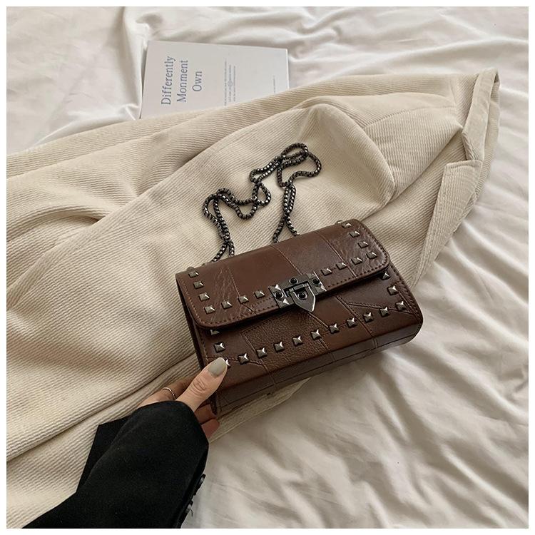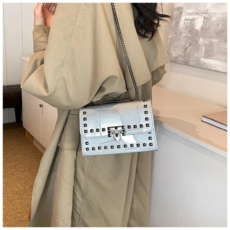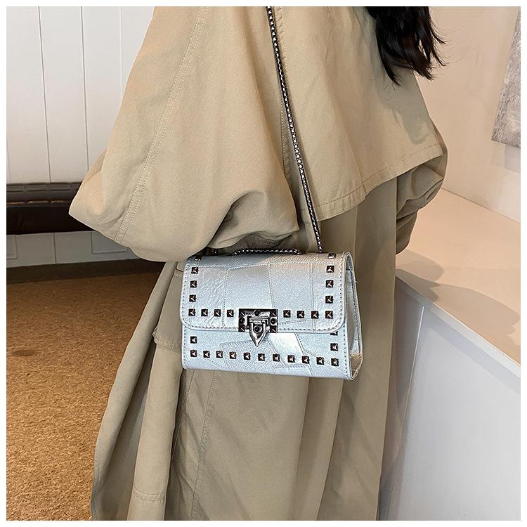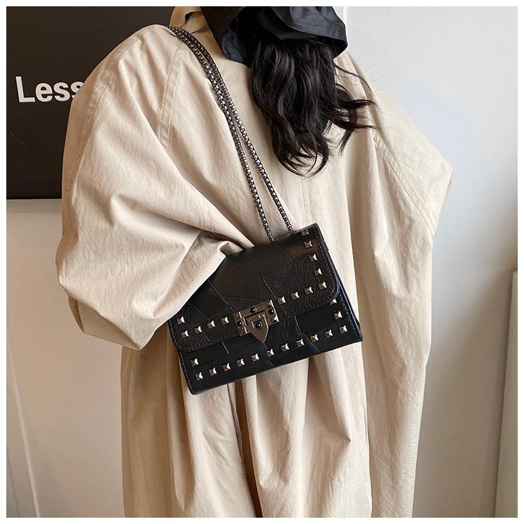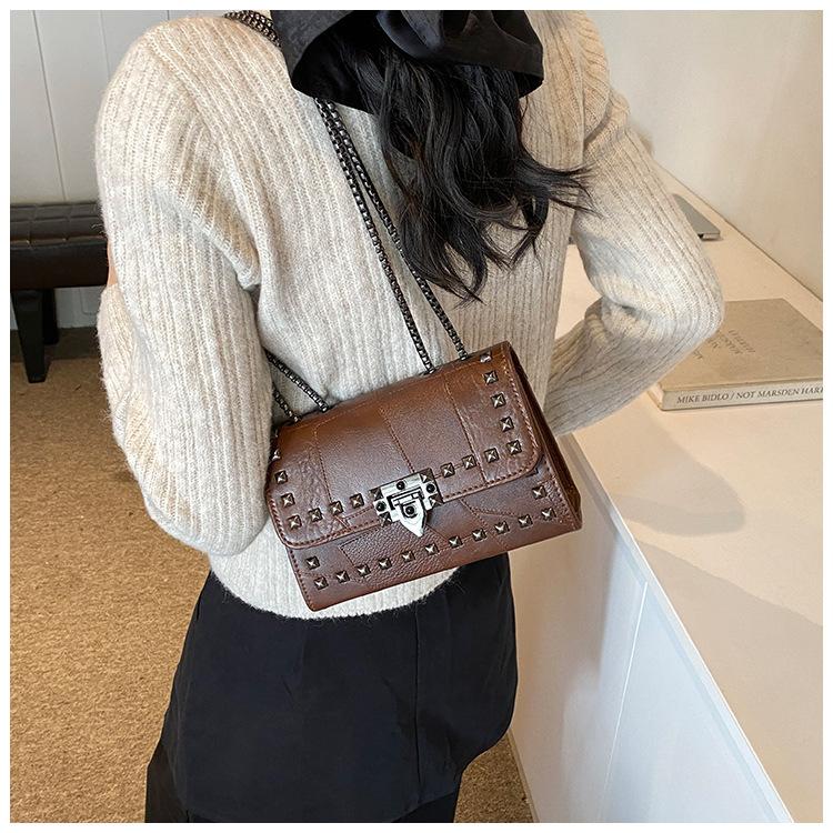 Bolso de mujer transfronterizo de gran capacidad, estilo retro, con remaches, cuadrado pequeño, bandolera informal de hombro, 2024