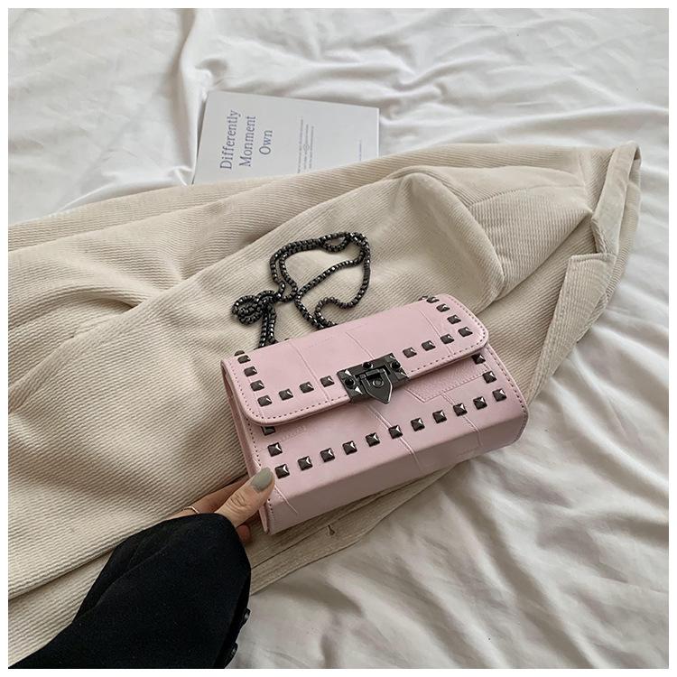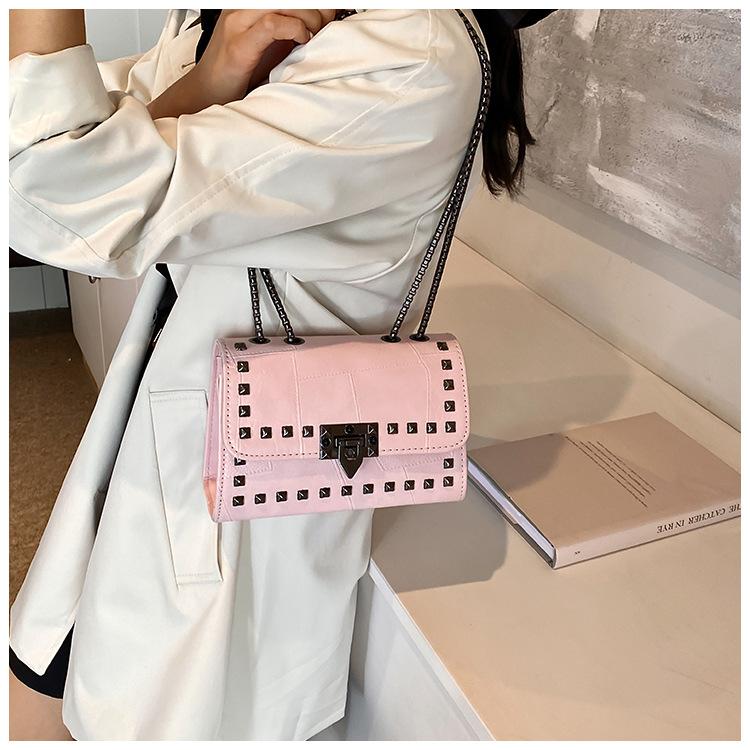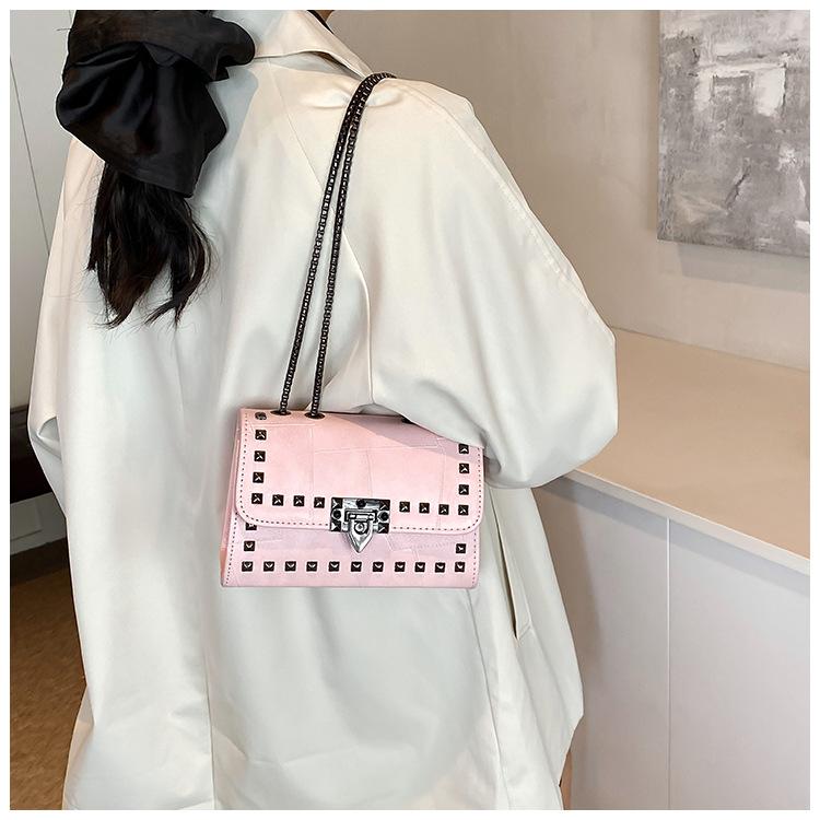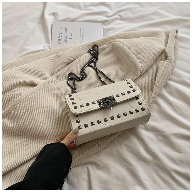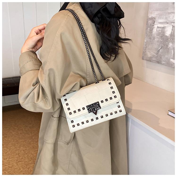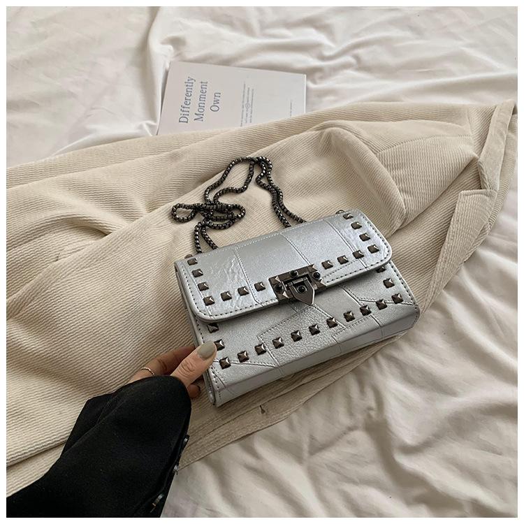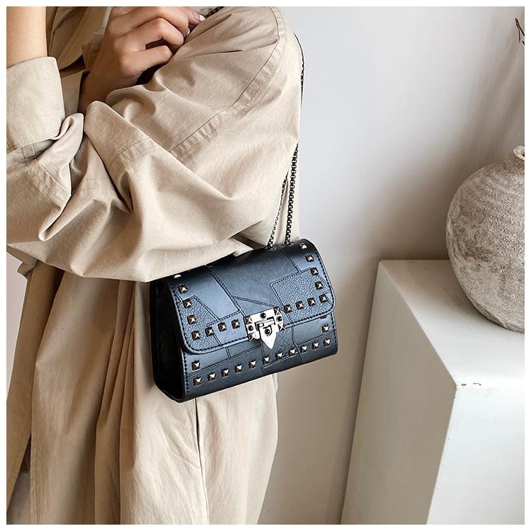Bolso de mujer transfronterizo de gran capacidad, estilo retro, con remaches, cuadrado pequeño, bandolera informal de hombro, 2024