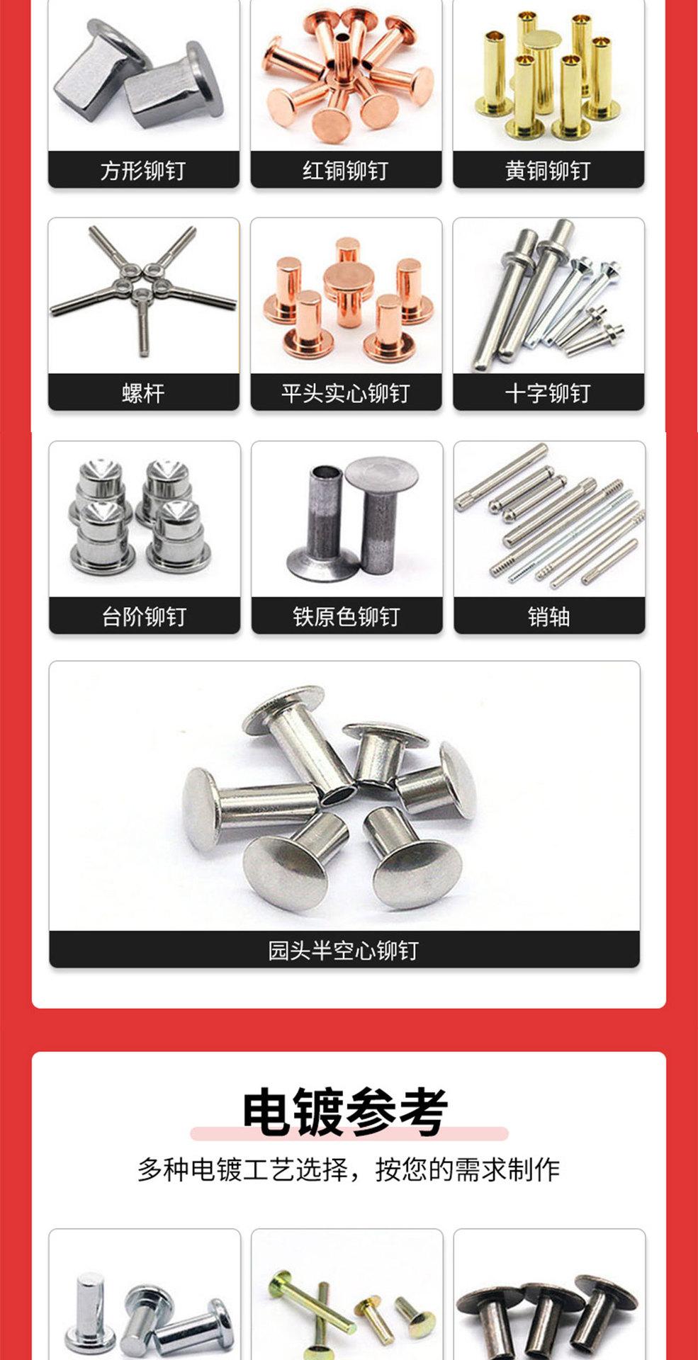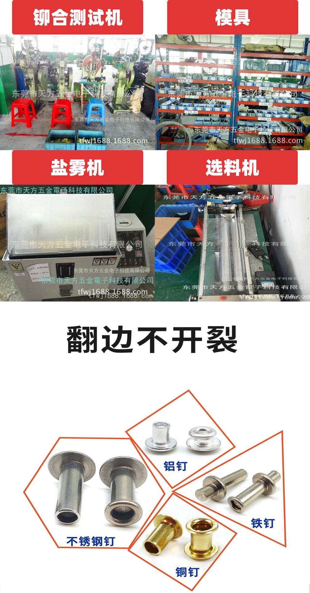 Remaches Semihuecos de Acero Inoxidable 304 Color Natural No Estándar Cabeza Plana Embutido en Frío Remaches Huecos Remaches con Brida Sujetadores