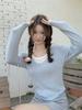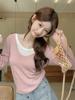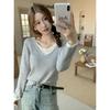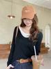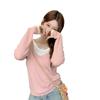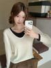 Compra Americano 2025 Otoño e Invierno Estilo Coreano Cuello en V Contrastante Falso Dos Piezas Versátil 6 Lana Tejido Manga Larga Camiseta Base Top al por mayor en Joom.pro