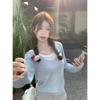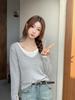 Americano 2025 Otoño e Invierno Estilo Coreano Cuello en V Contrastante Falso Dos Piezas Versátil 6 Lana Tejido Manga Larga Camiseta Base Top